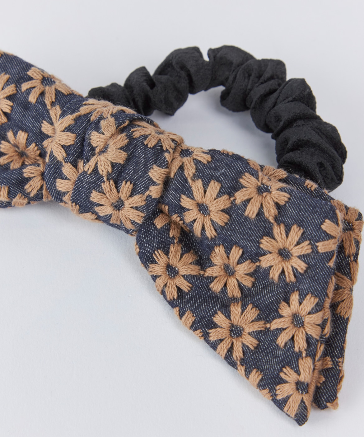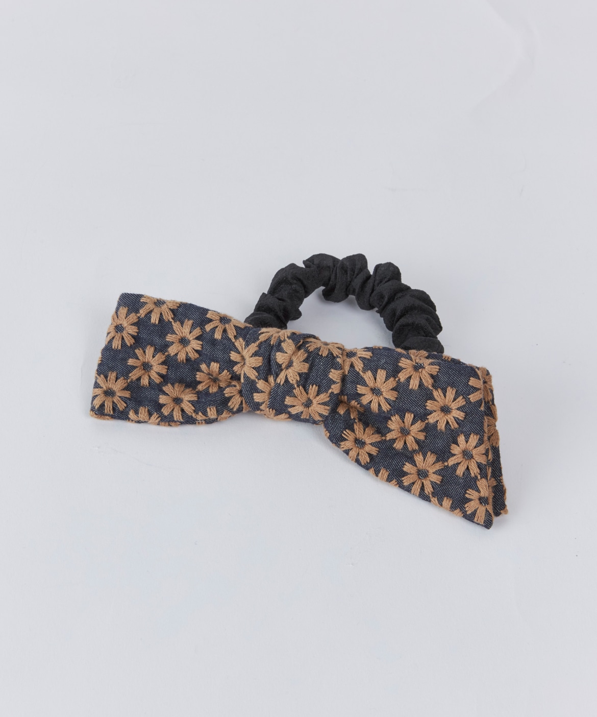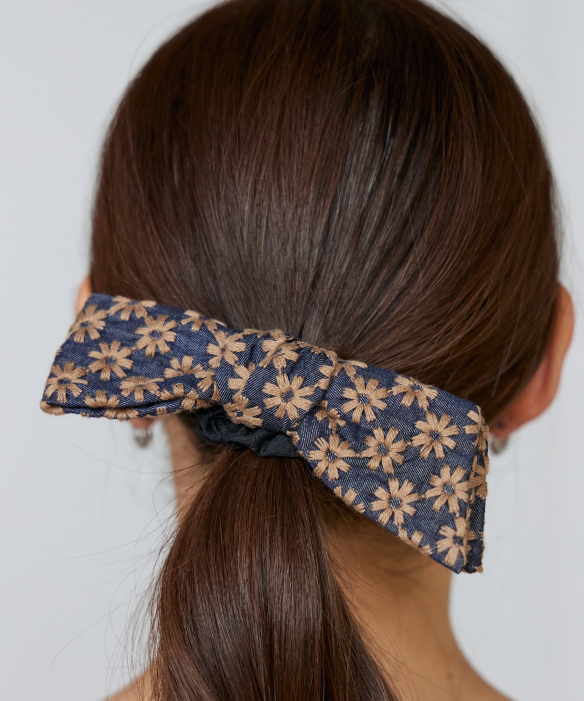 《M Maglie le cassetto》フラワー刺繍デニムリボンシュシュ