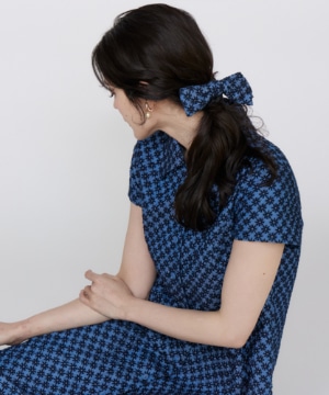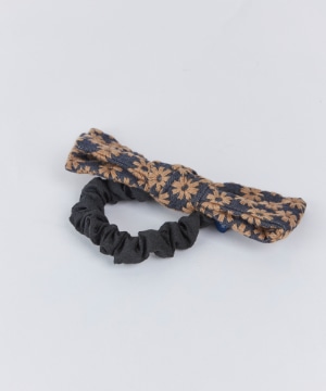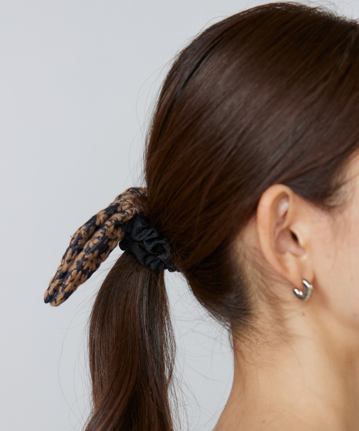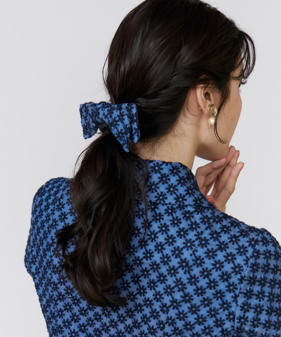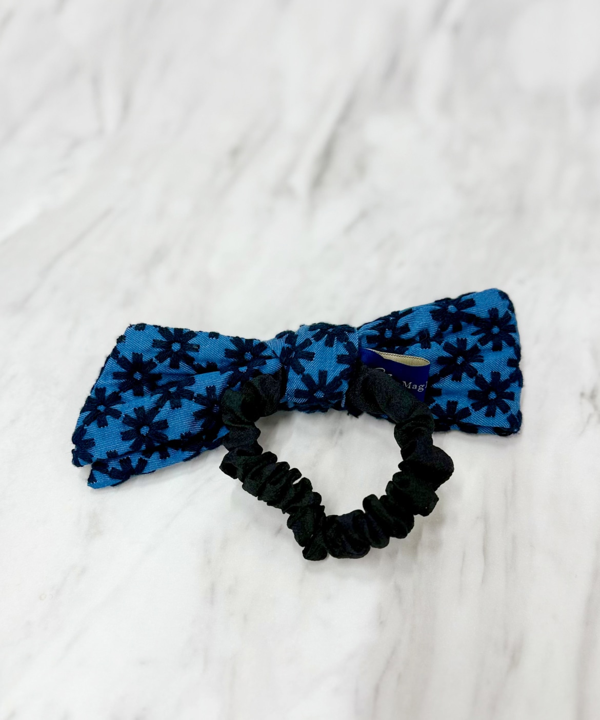 《M Maglie le cassetto》フラワー刺繍デニムリボンシュシュ