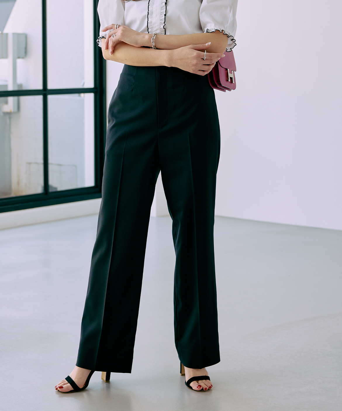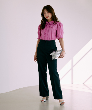 《M Maglie le cassetto×冨張愛》フラワーレース美シルエットストレートパンツ
