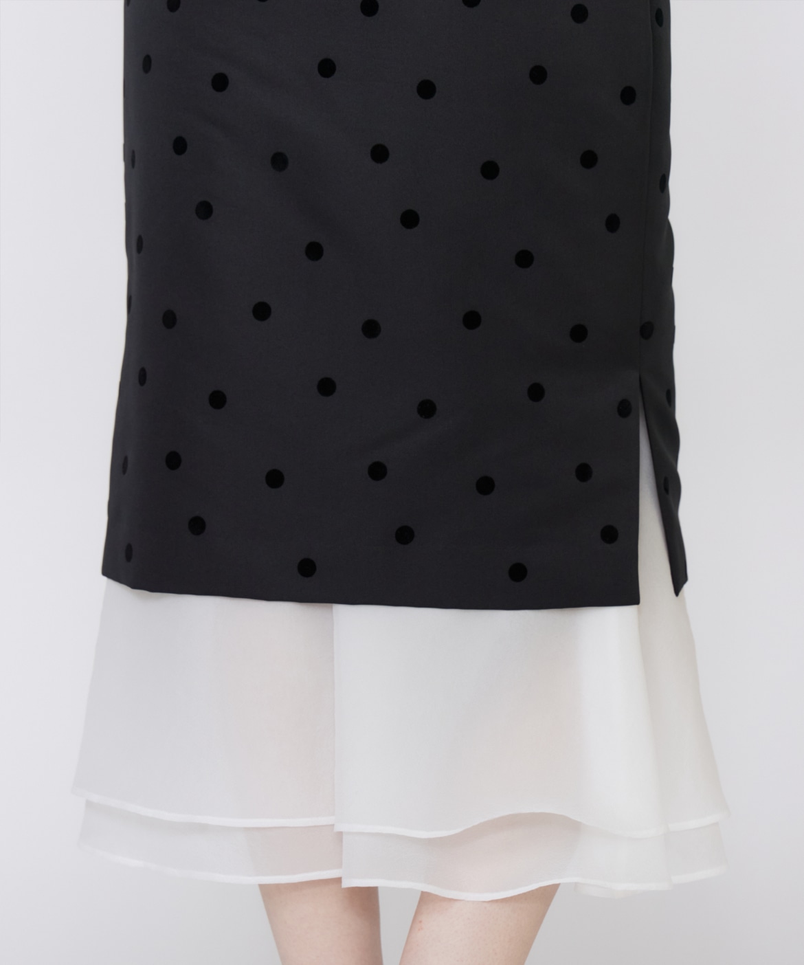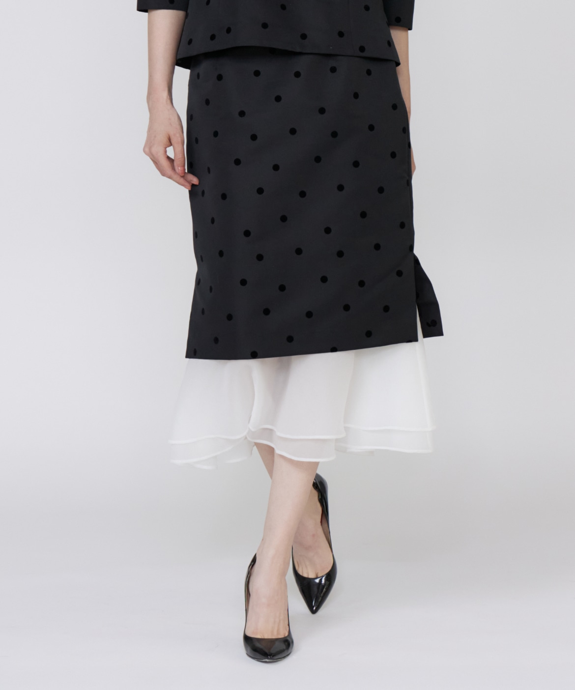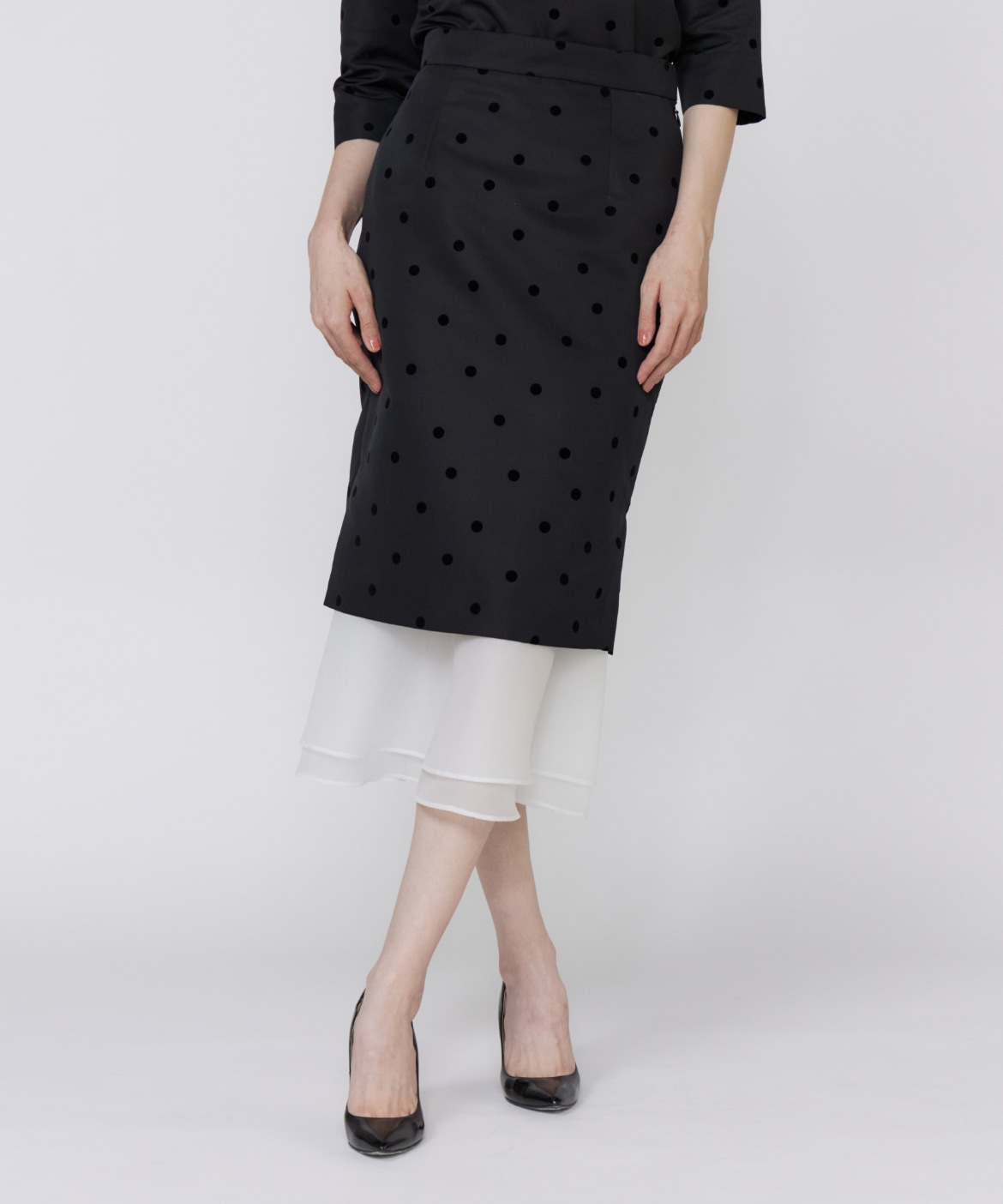 《M Maglie le cassetto》ドットフロッキーシアーヘムマーメイドスカート