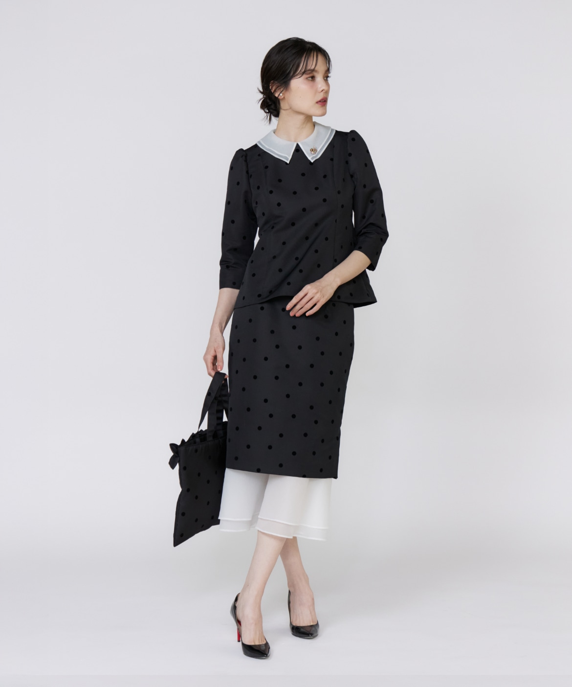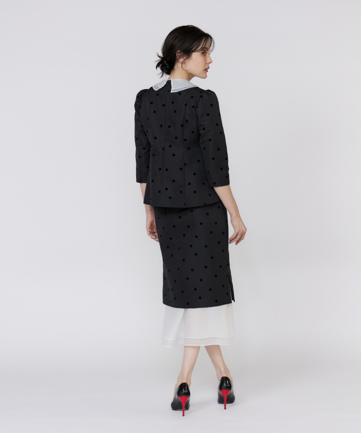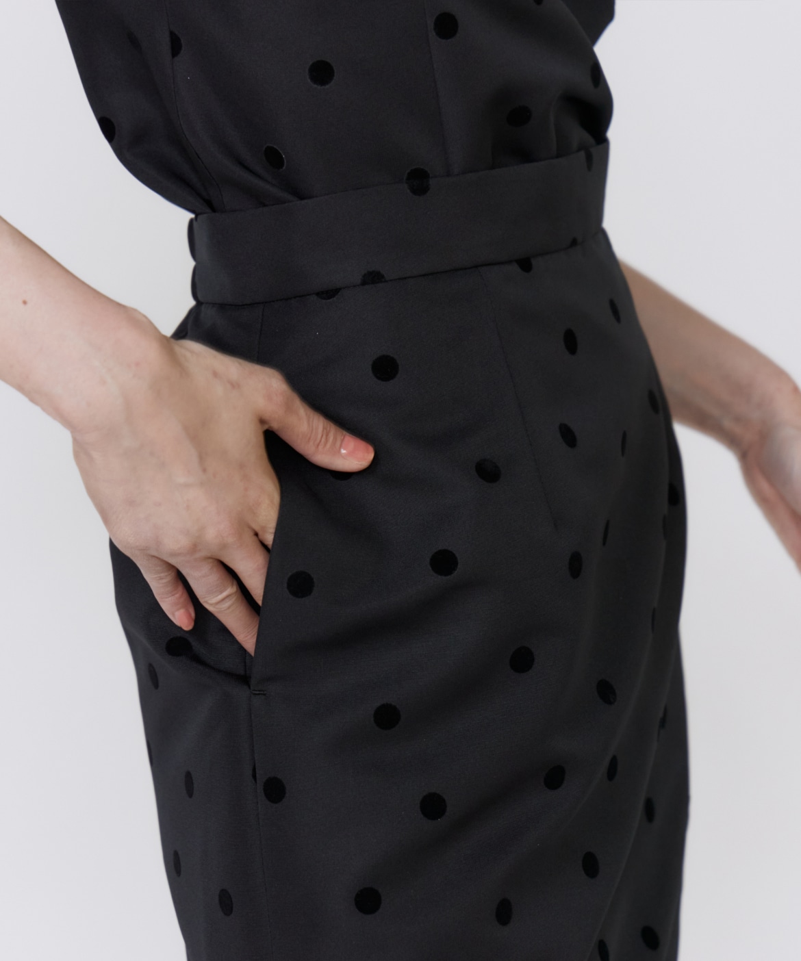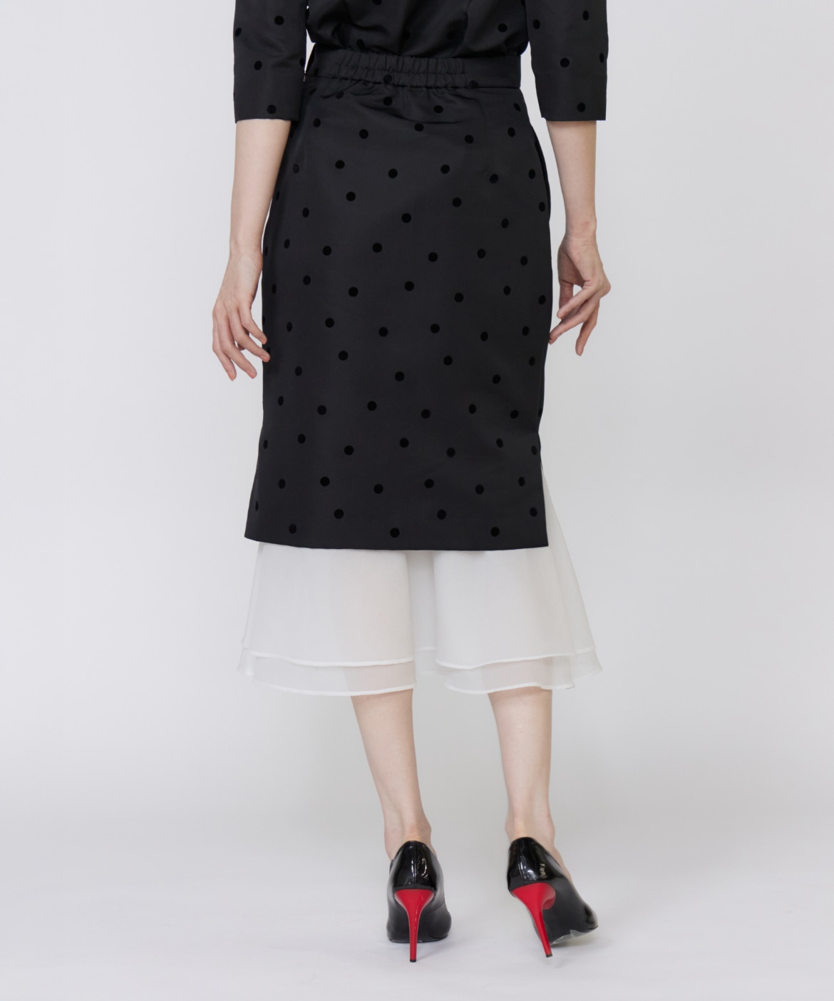《M Maglie le cassetto》ドットフロッキーシアーヘムマーメイドスカート