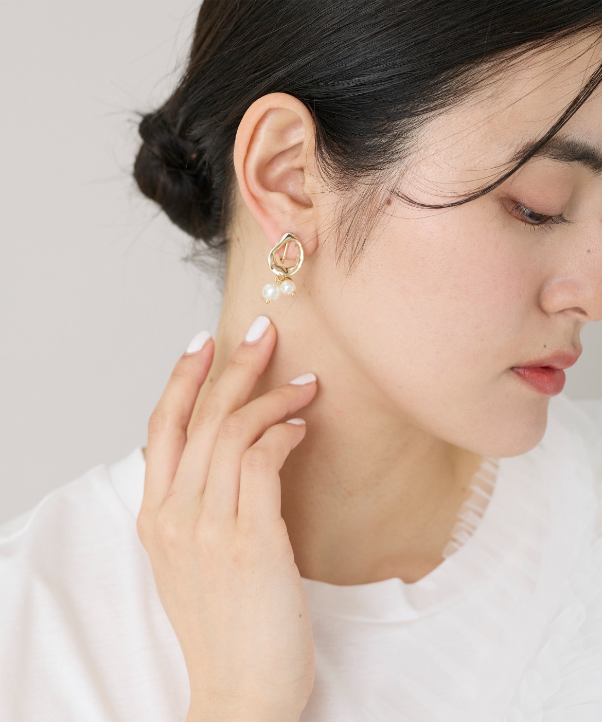 柔らかな曲線を描くゴールドモチーフにマルチパールを施した品格のあるイヤリング。デイリー遣いは、もちろん特別な日にも華やぎをプラスします。