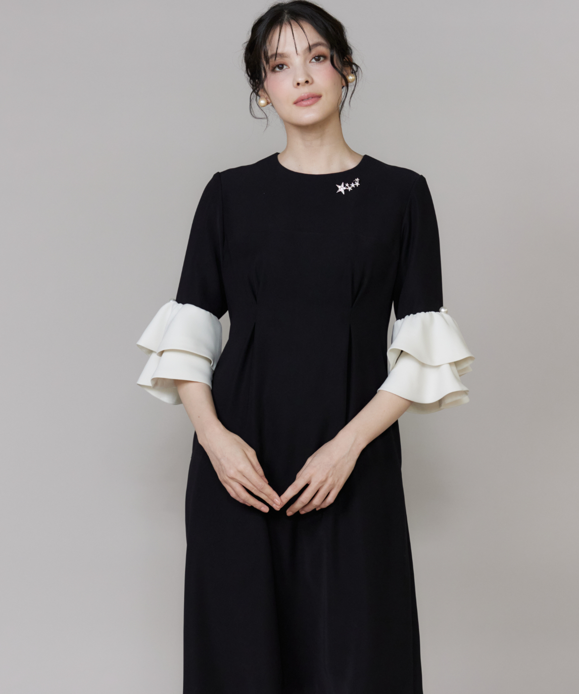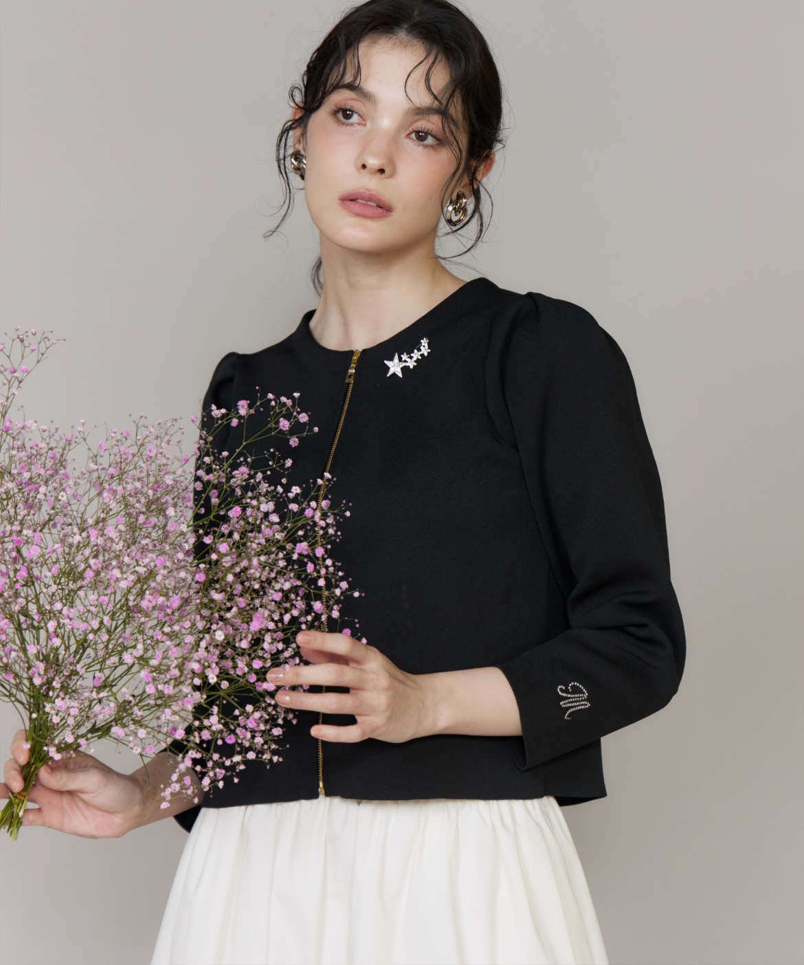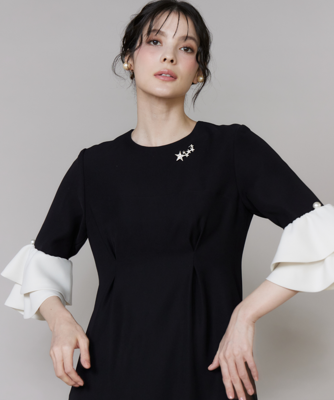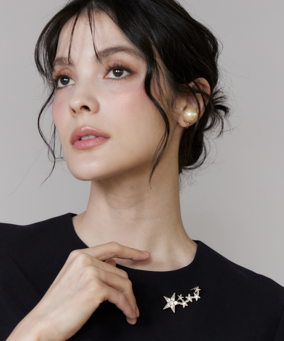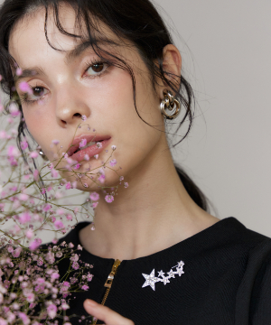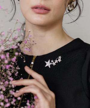 華やかな輝きを放つスターモチーフのブローチ。大小異なる星を連ねたデザインが胸元にリズムを生み、コーディネートのアクセントに。繊細なストーン使いで上品なきらめきを演出し、シンプルなトップスやワンピースに添えるだけで一気に華やかな印象に仕上がります。オケージョンからデイリーまで幅広く活躍するアイテムです。