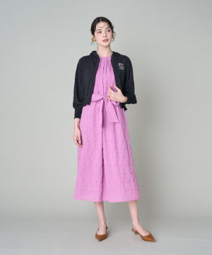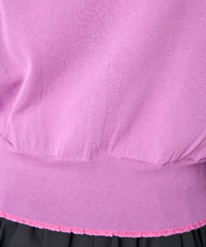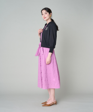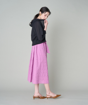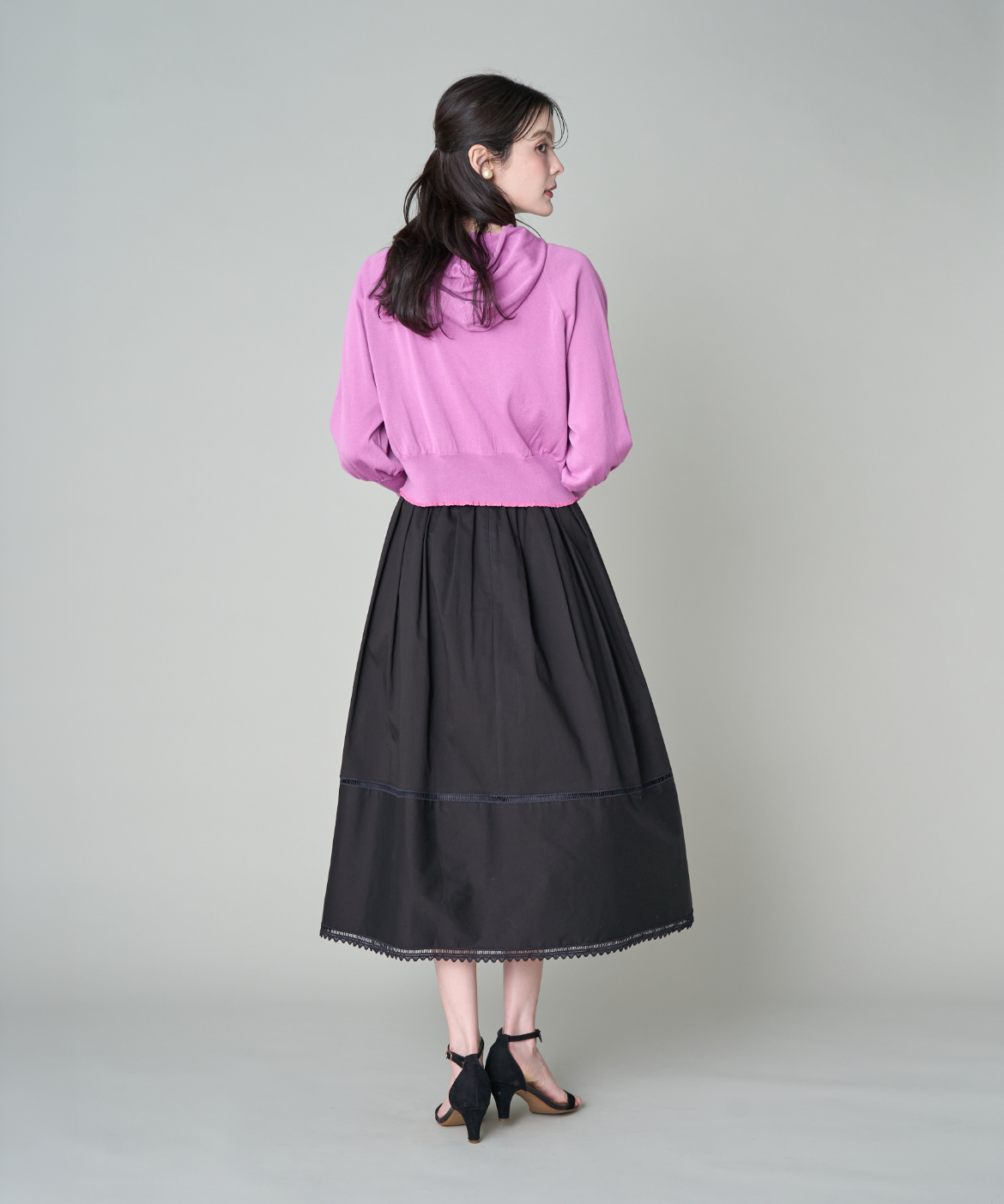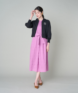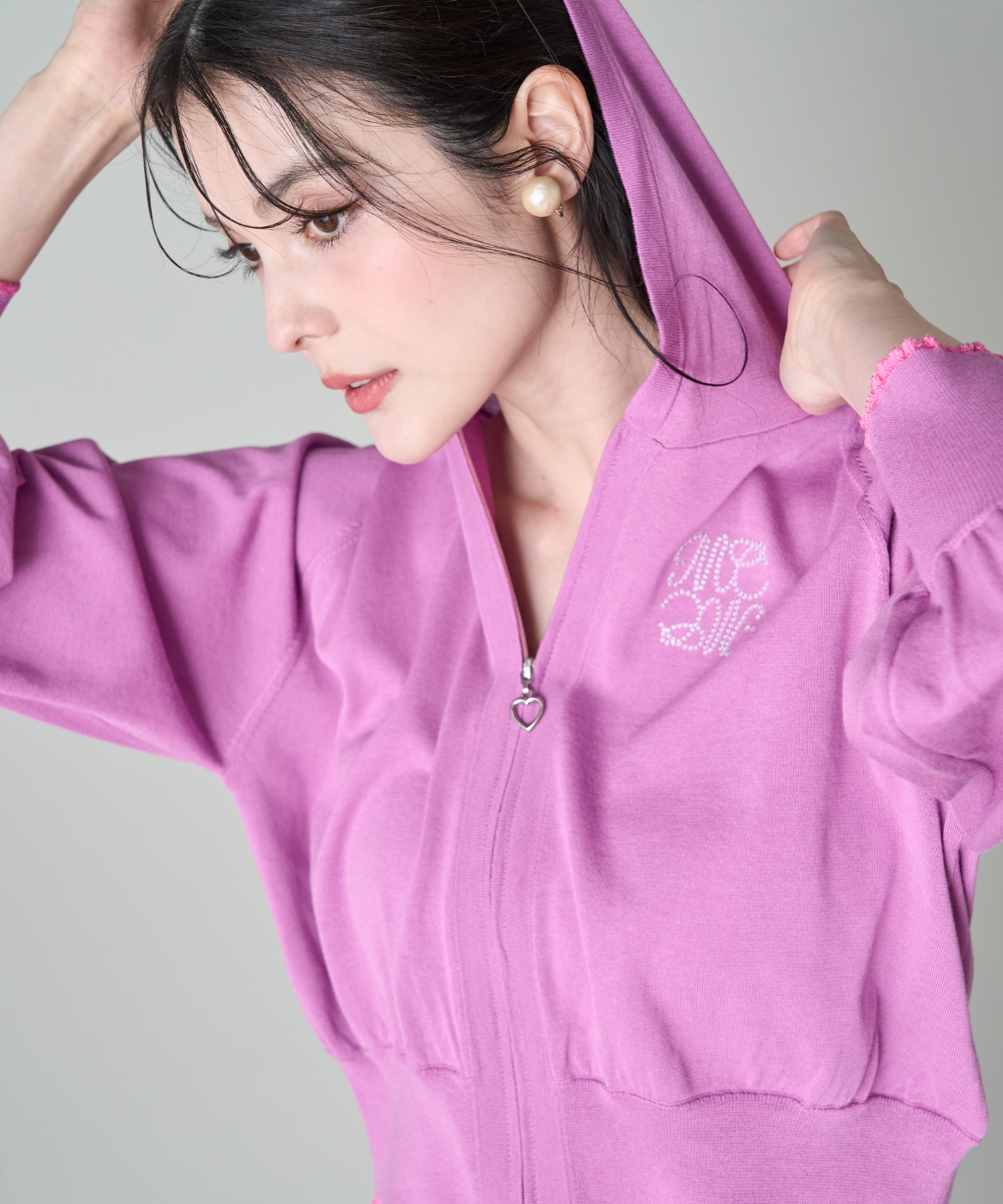 シャリ感のある素材で仕立てた、暑い季節に活躍するニットパーカー。ワンピースやスカートにバランスよく羽織れるコンパクトなサイズ感と短めの着丈が、Maglieらしい上品な印象を演出します。ふんわりとした袖のボリュームと、リブ端にあしらった華奢なフリルがさりげない華やかさをプラス。胸元のMaglieロゴもアクセントになっています。軽くてかさばらず持ち運びしやすく、冷房対策や季節の変わり目にも重宝する一枚です。