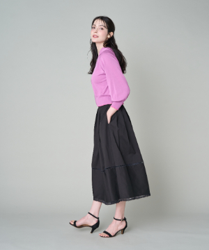 繊細な透け感と微光沢のある素材です。さらりとした肌触りで着心地がよく通気性、吸湿性にも優れています。ナチュラルな光沢がきれいめでもマッチする素材感です。