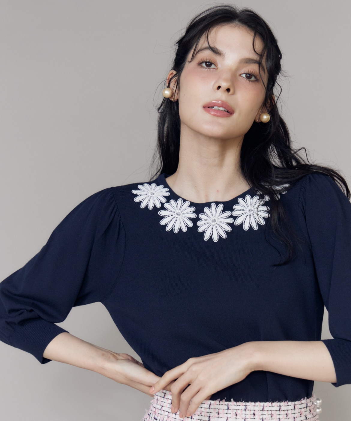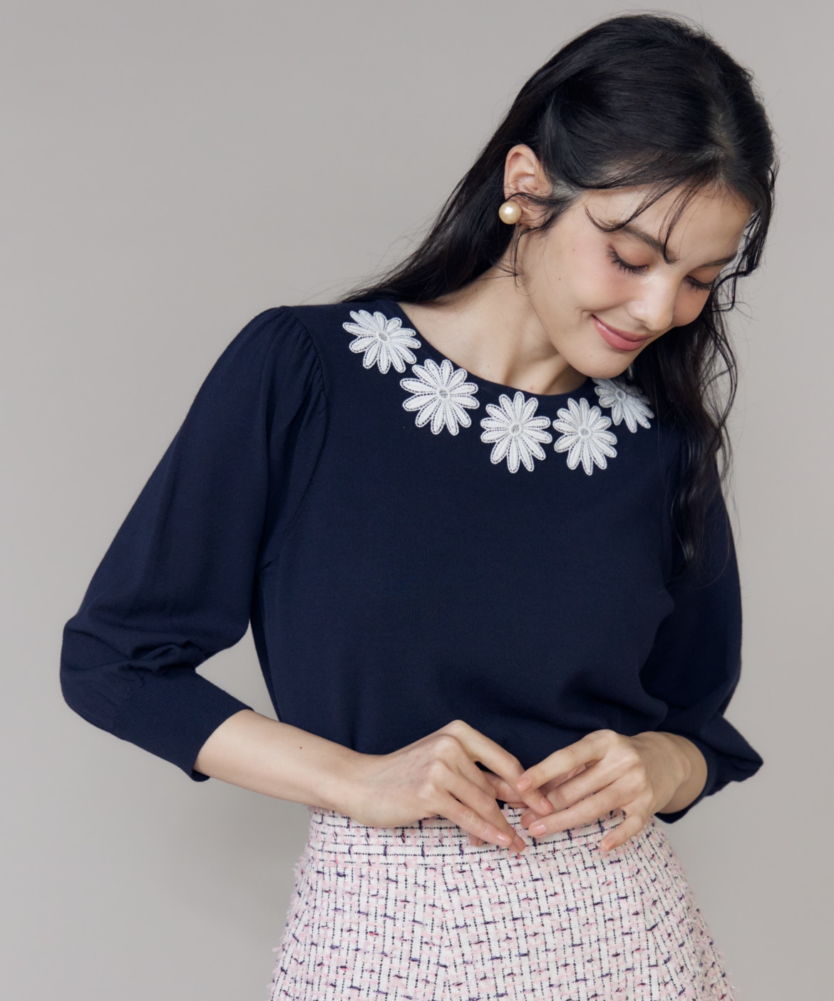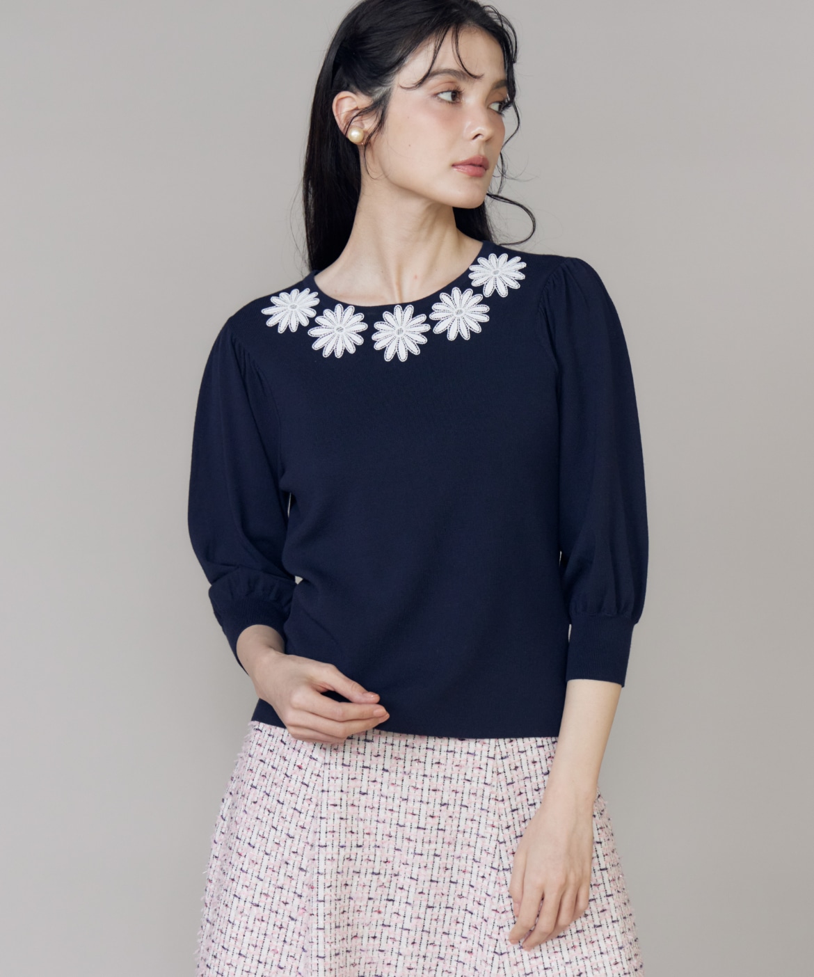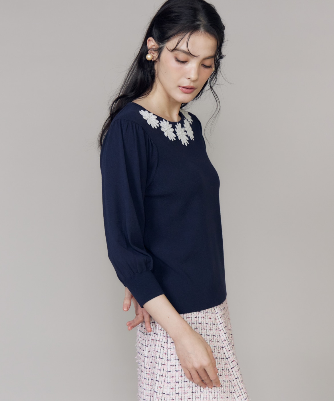 モチーフレースニットプルオーバー