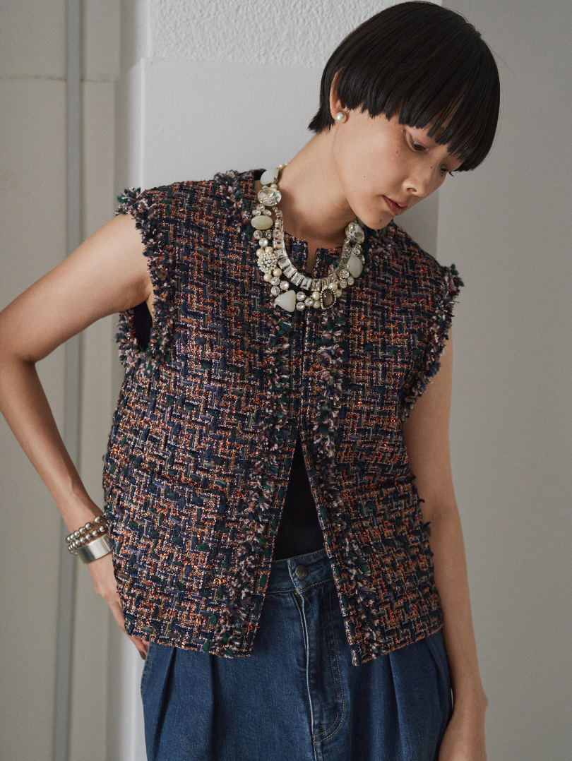 新たな配色で表現されたツイードの編地やチェック柄、オリジナルプリントーー