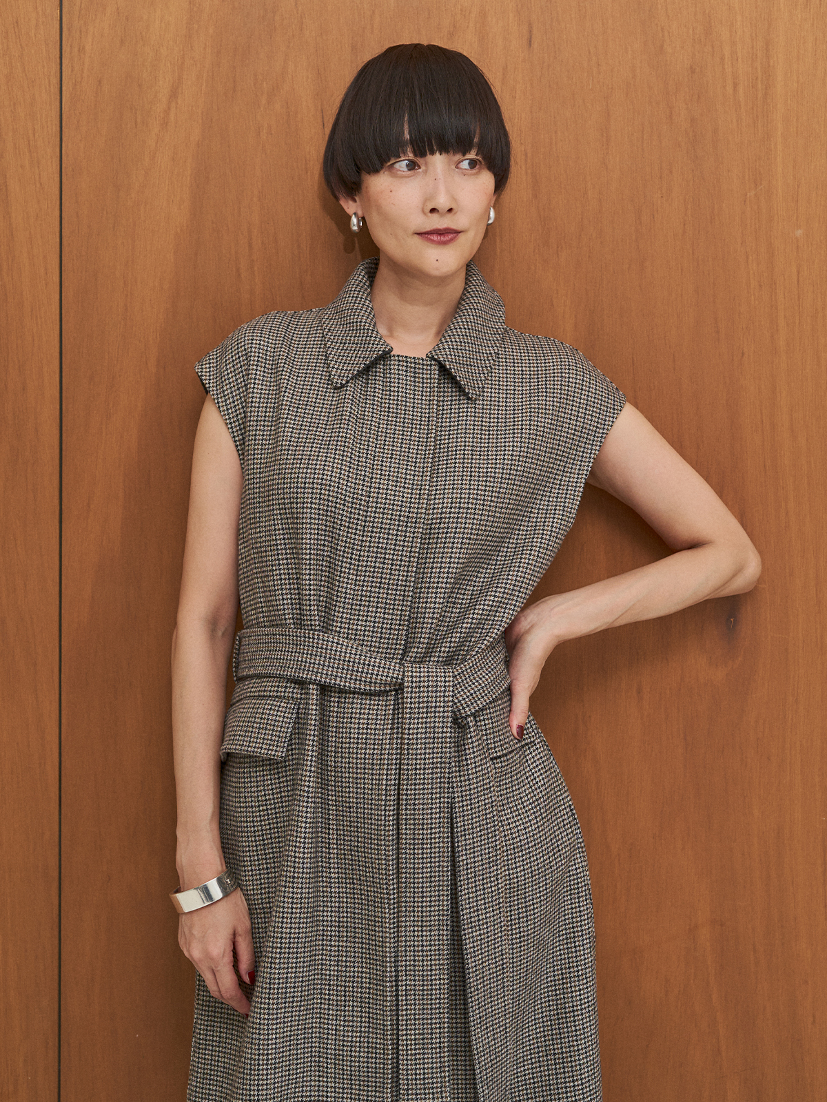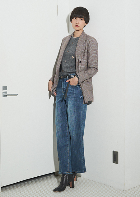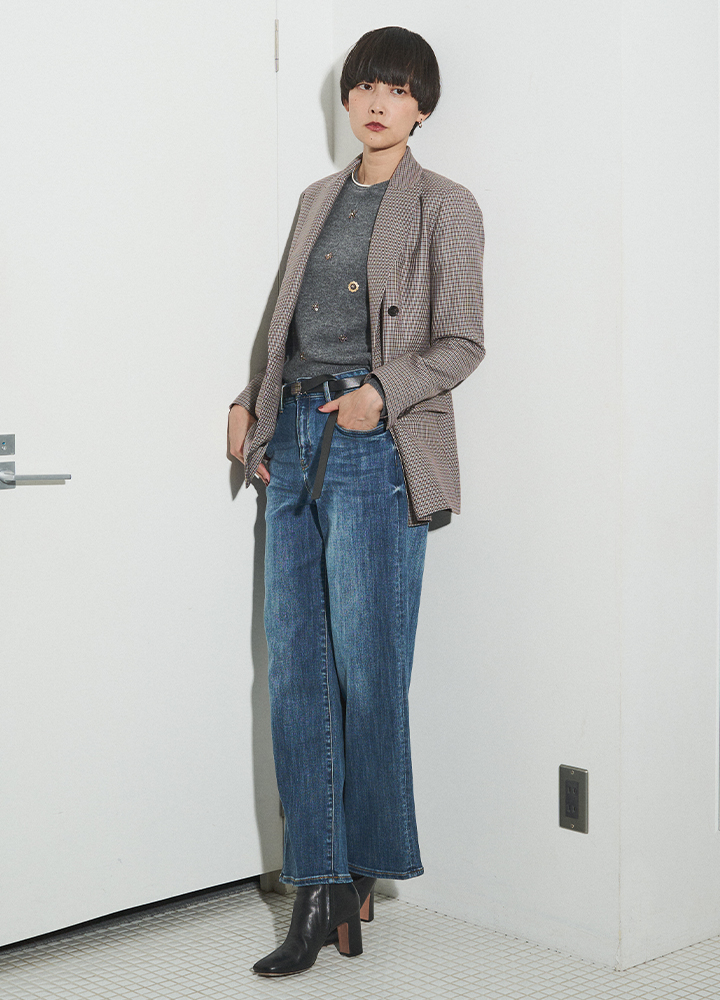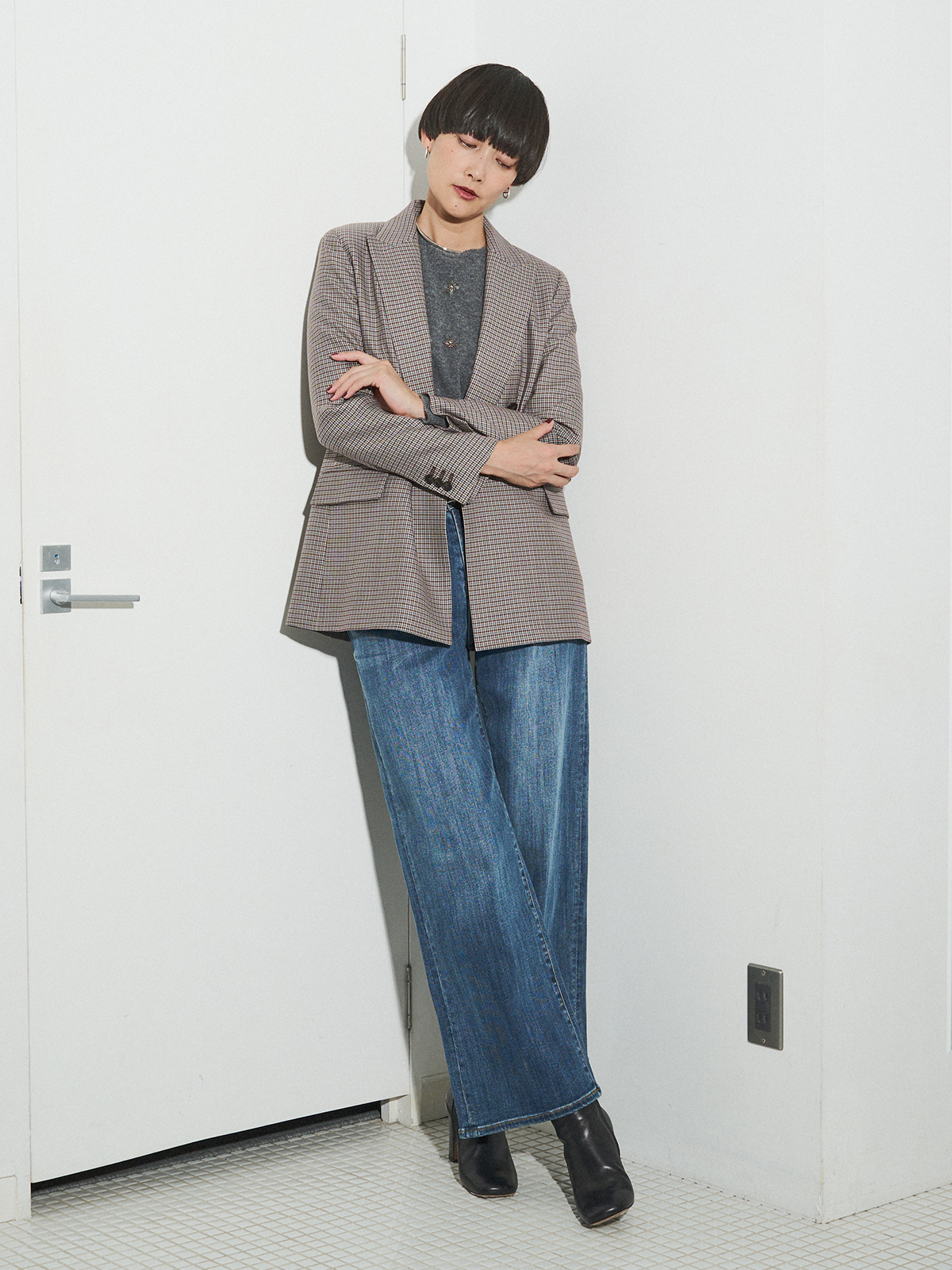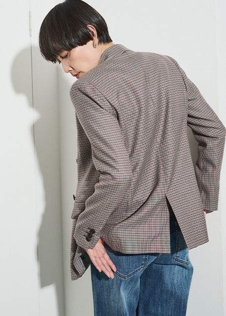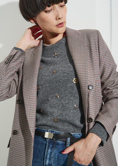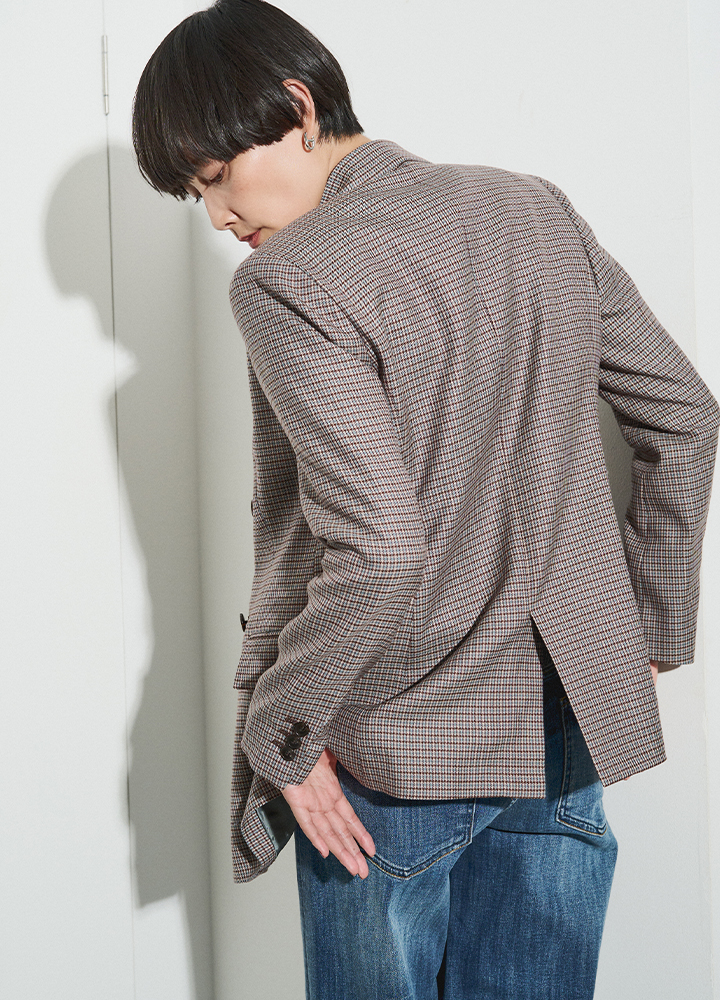 今年らしいブルー×ブラウンの千鳥チェックで今年顔にブラッシュアップ