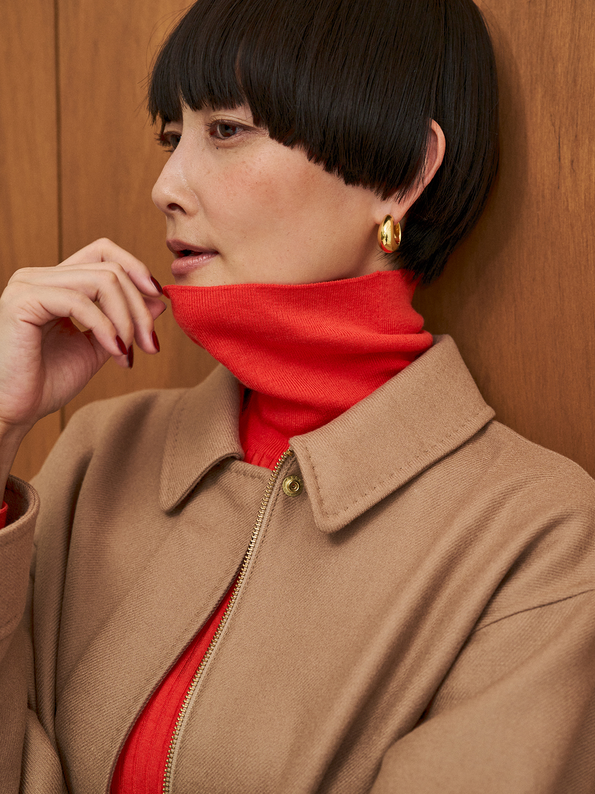 背筋の伸びるキャメル×トマトレッドのラグジュアリーカラーの組み合わせ