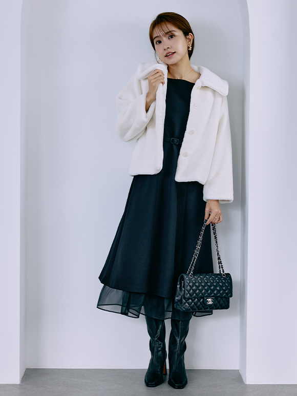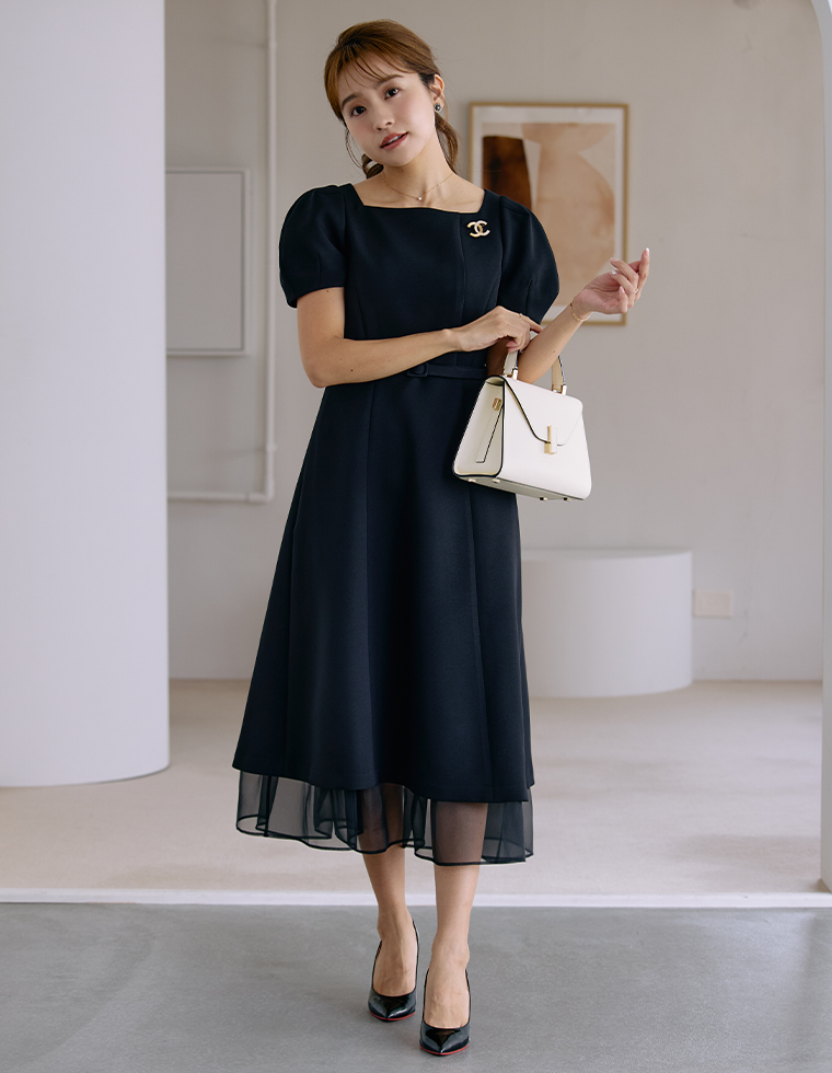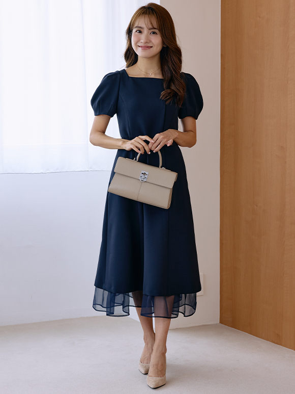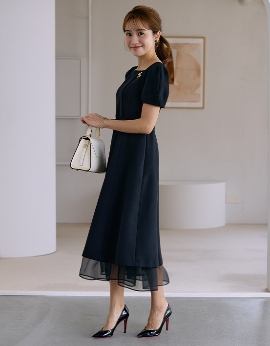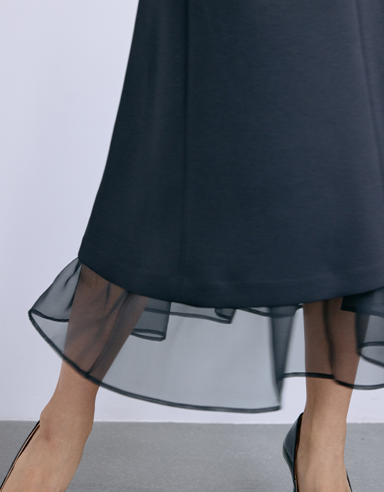 スカートの裾にはトレンドのオーガンジーをあしらい、