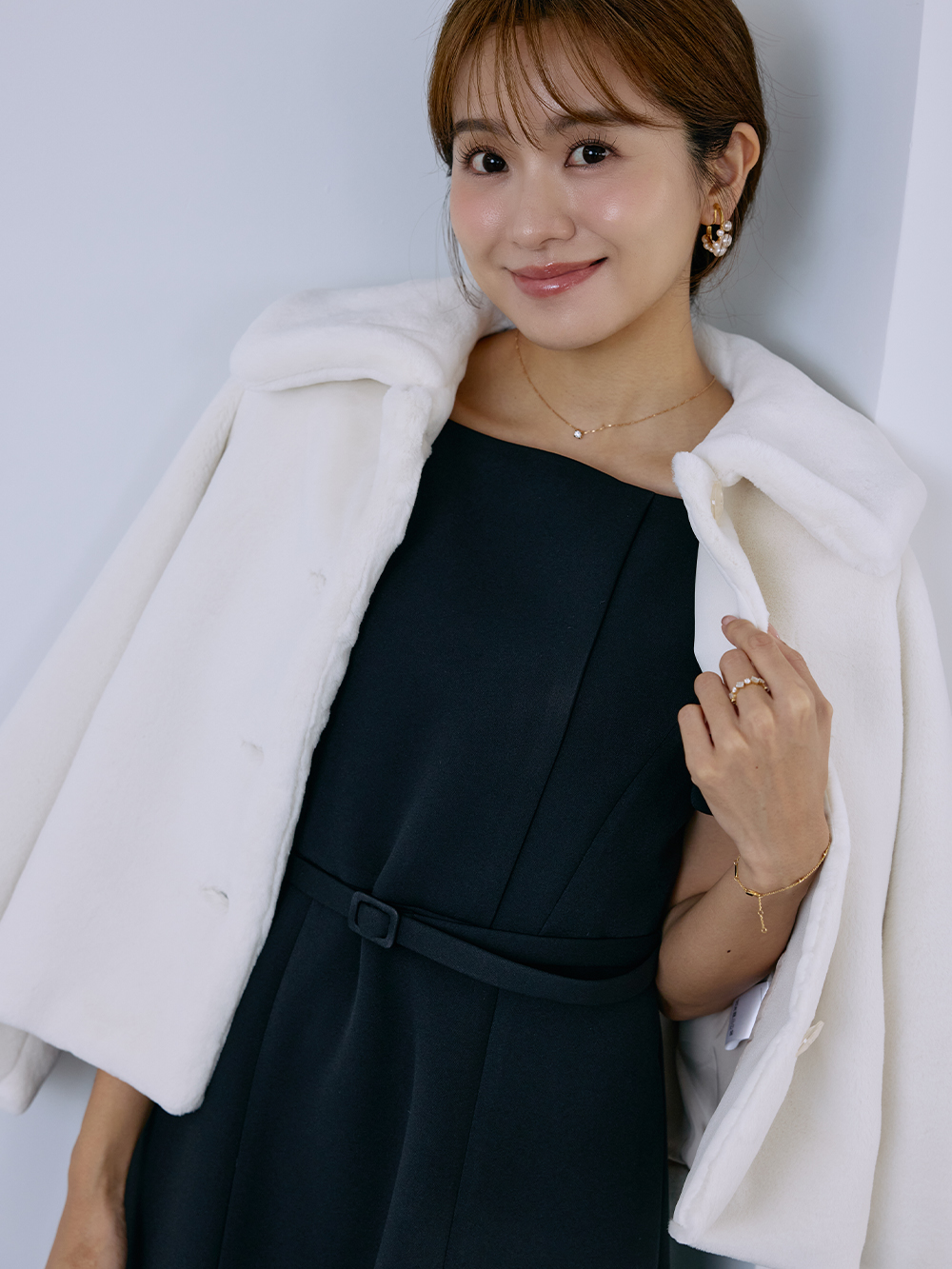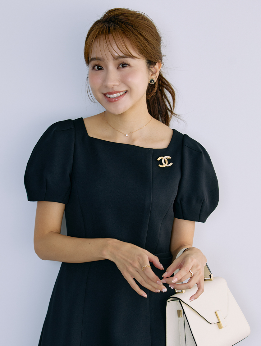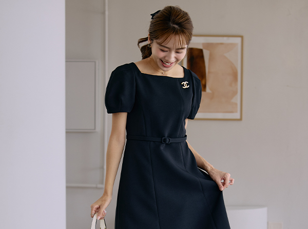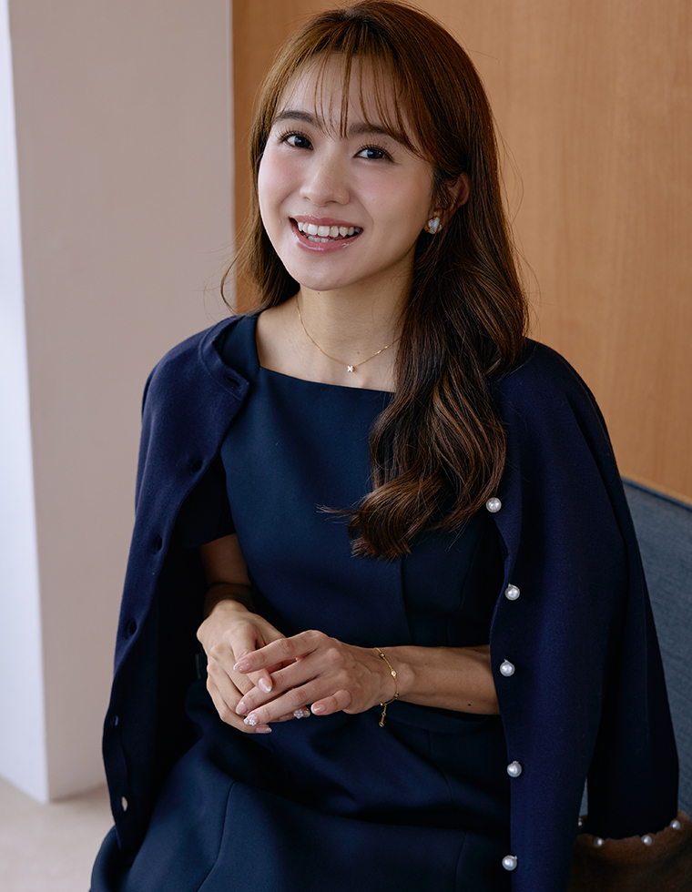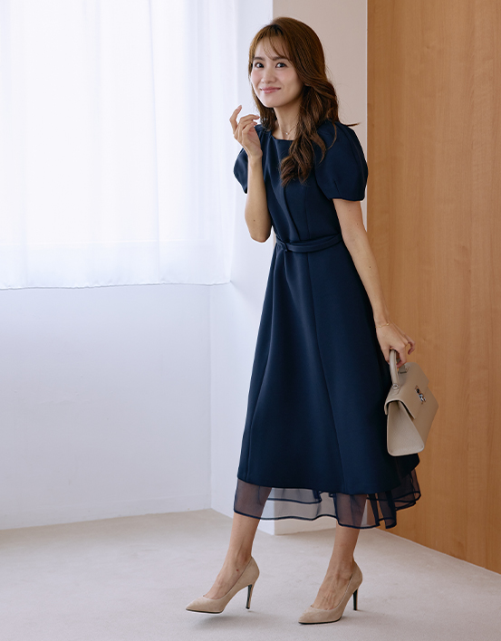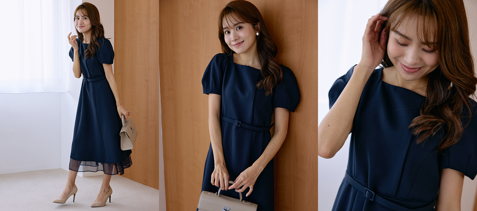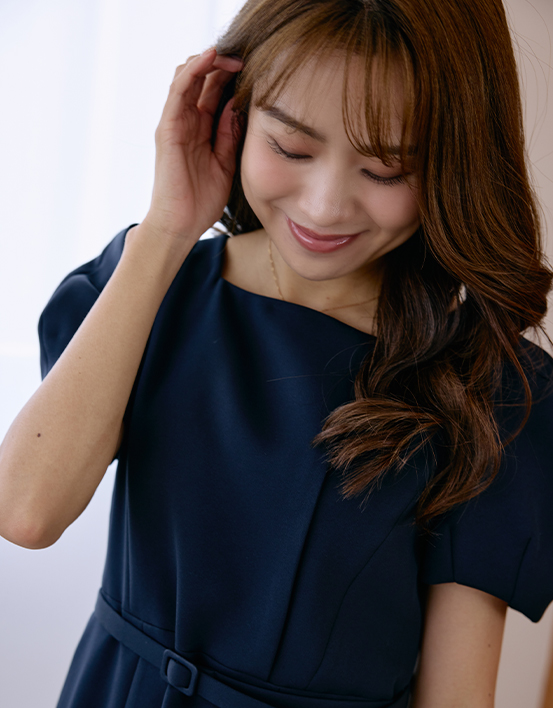 深みのあるネイビーが柔らかな女性らしさを引き立て、