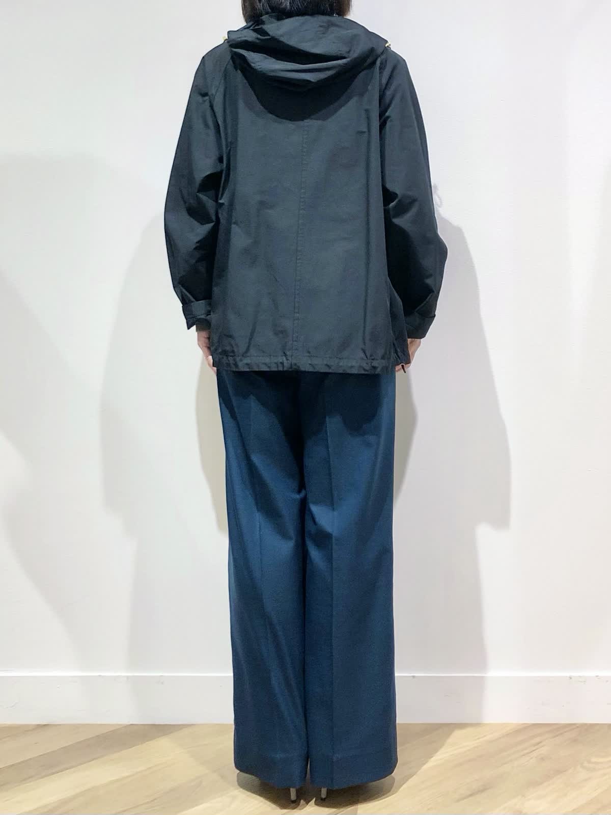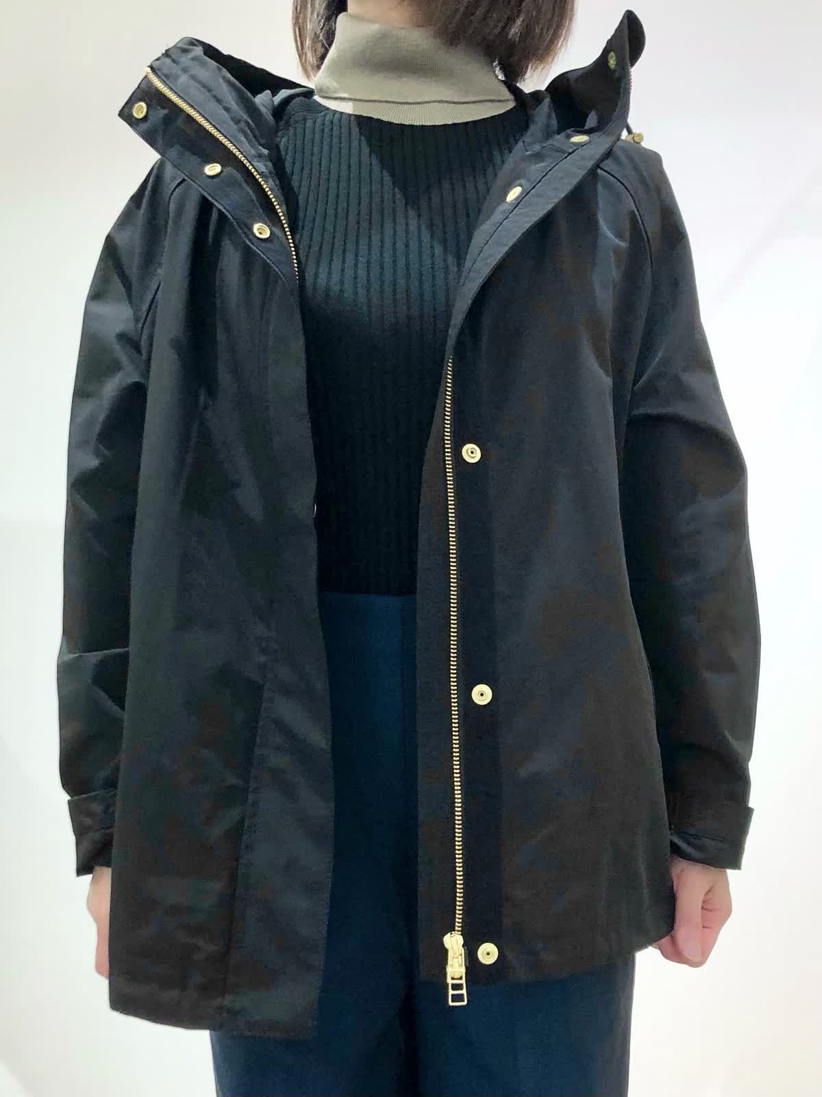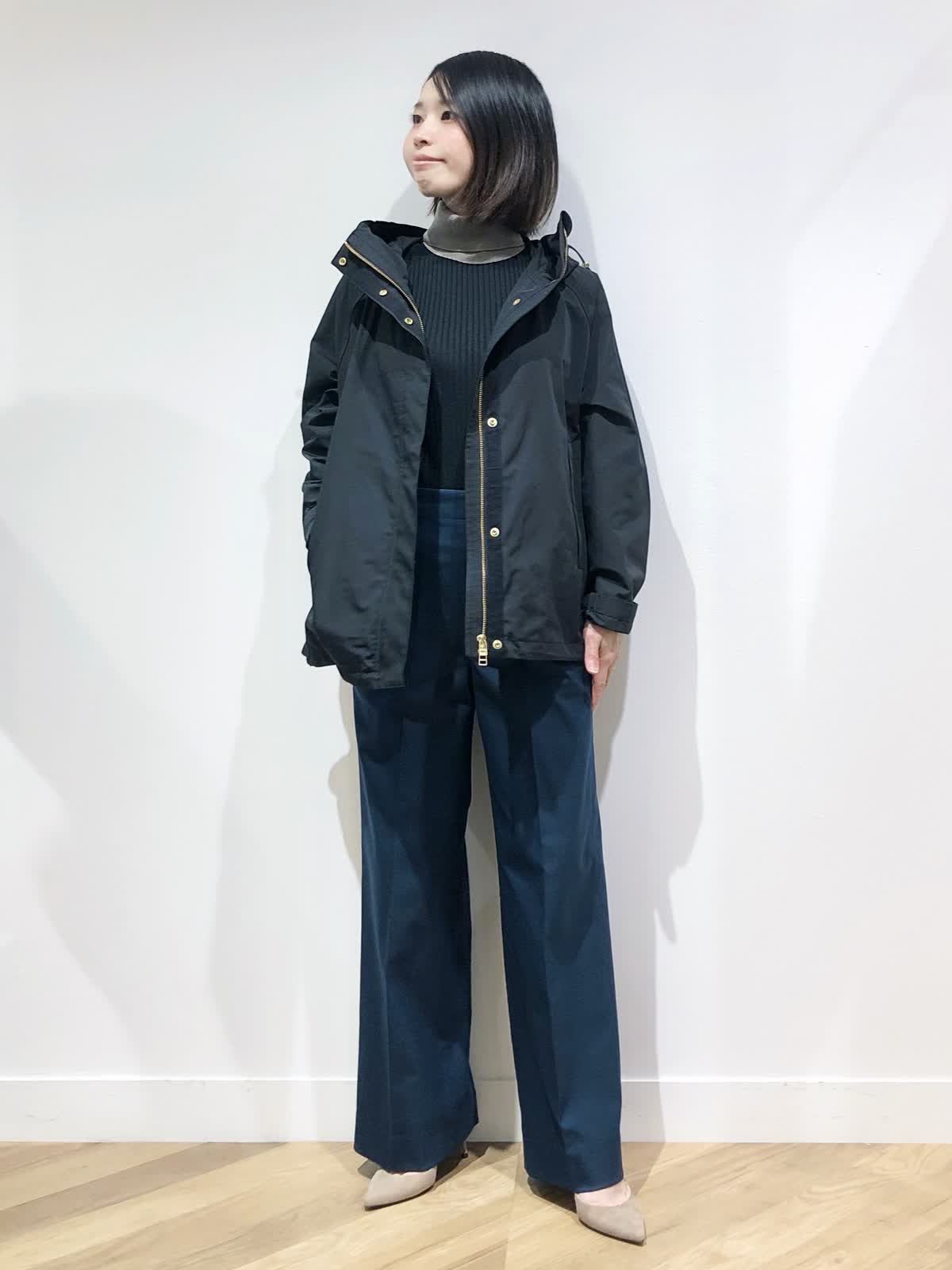 【着用サイズ】ブルゾン:7号、ニット:9号、パンツ:5号【着用カラー】ブルゾン:ブラック、ニット:スミクロ、パンツ:ダークネイビー 肌寒くなる季節におすすめのマウンテンパーカーはブラックにゴールドのジップが大人な印象。軽い着心地で秋のお出掛けからデイリー使いにぴったりです。毎年人気のリブタートルにセミワイドパンツを合わせた大人カジュアルスタイリングに。