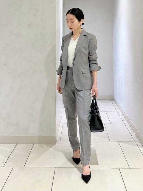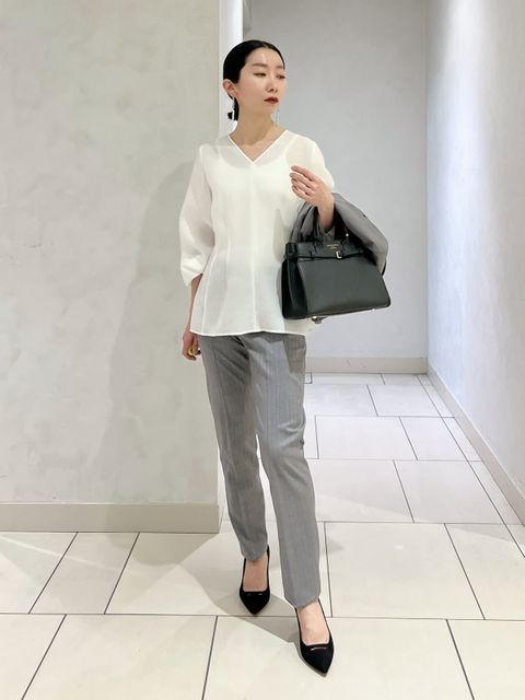 【着用サイズ】 コート:7号 ブラウス:7号 スカート:5号 マーリエ10周年のミドルコートはヒップが隠れる丈感で合わせるボトムを選ばない万能アイテム。 マーリエならではのパール使いもポイントです。