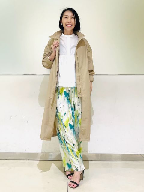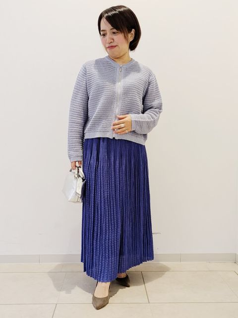 【着用サイズ】コート:フリー ニット:フリー パンツ:9号 カラーニットコーデ。 鮮やかなブルーのニットで顔周りの明るさをプラス。コートの下から少し見えるだけでも印象が華やぎます。柔らかい肌触りのコートは裏地がないのでとても軽いですが、袖口には裏地が付いており、着る際に滑りが良く、さっと羽織れます。