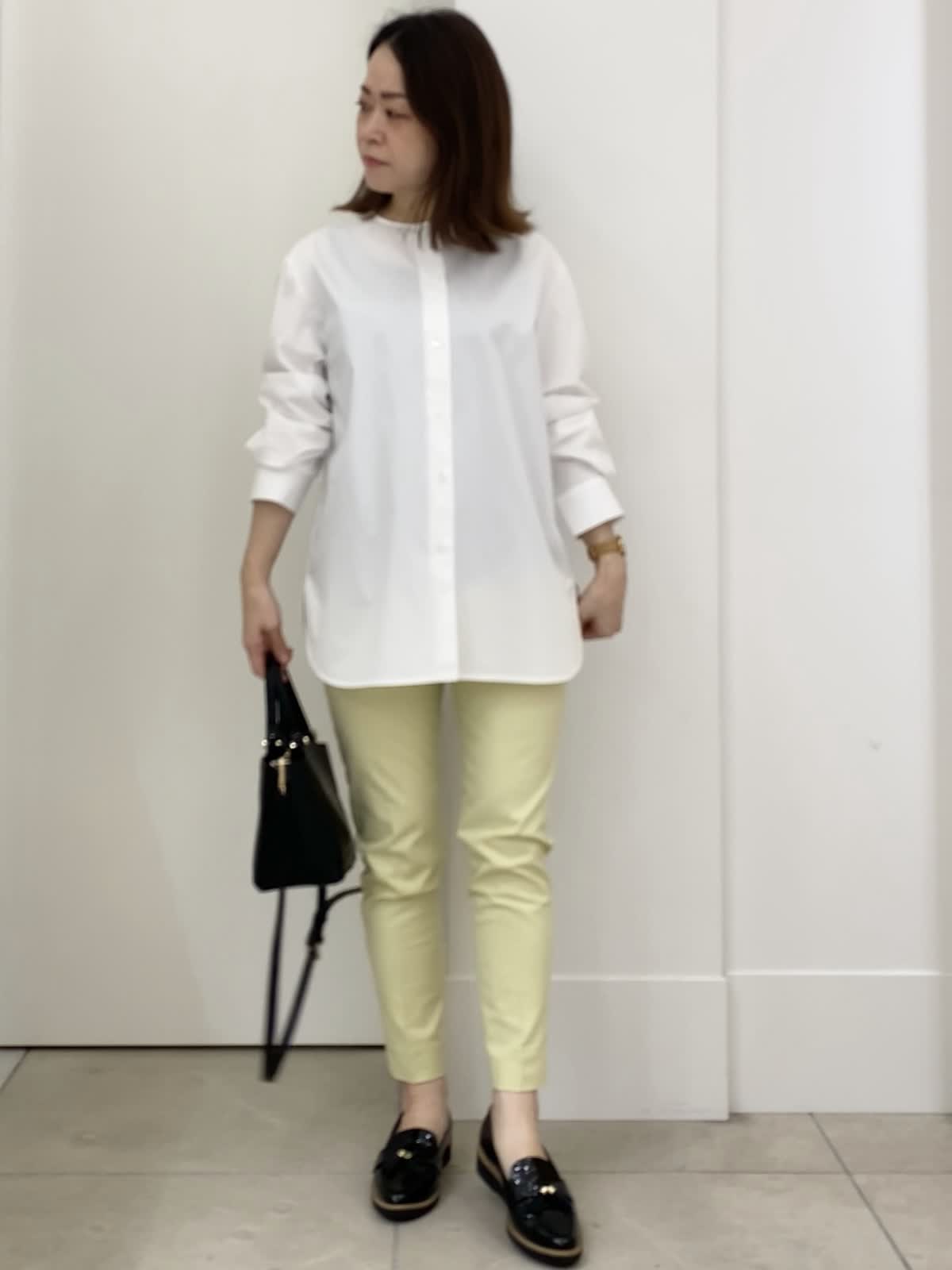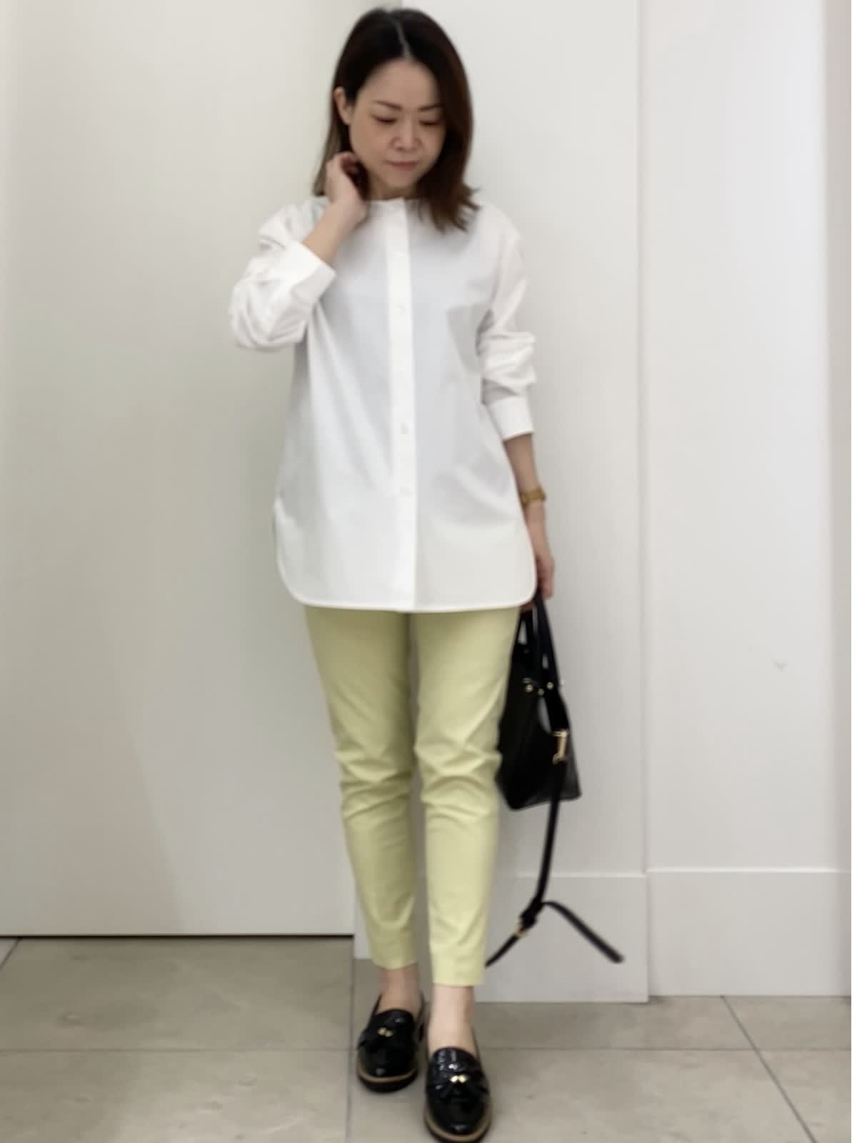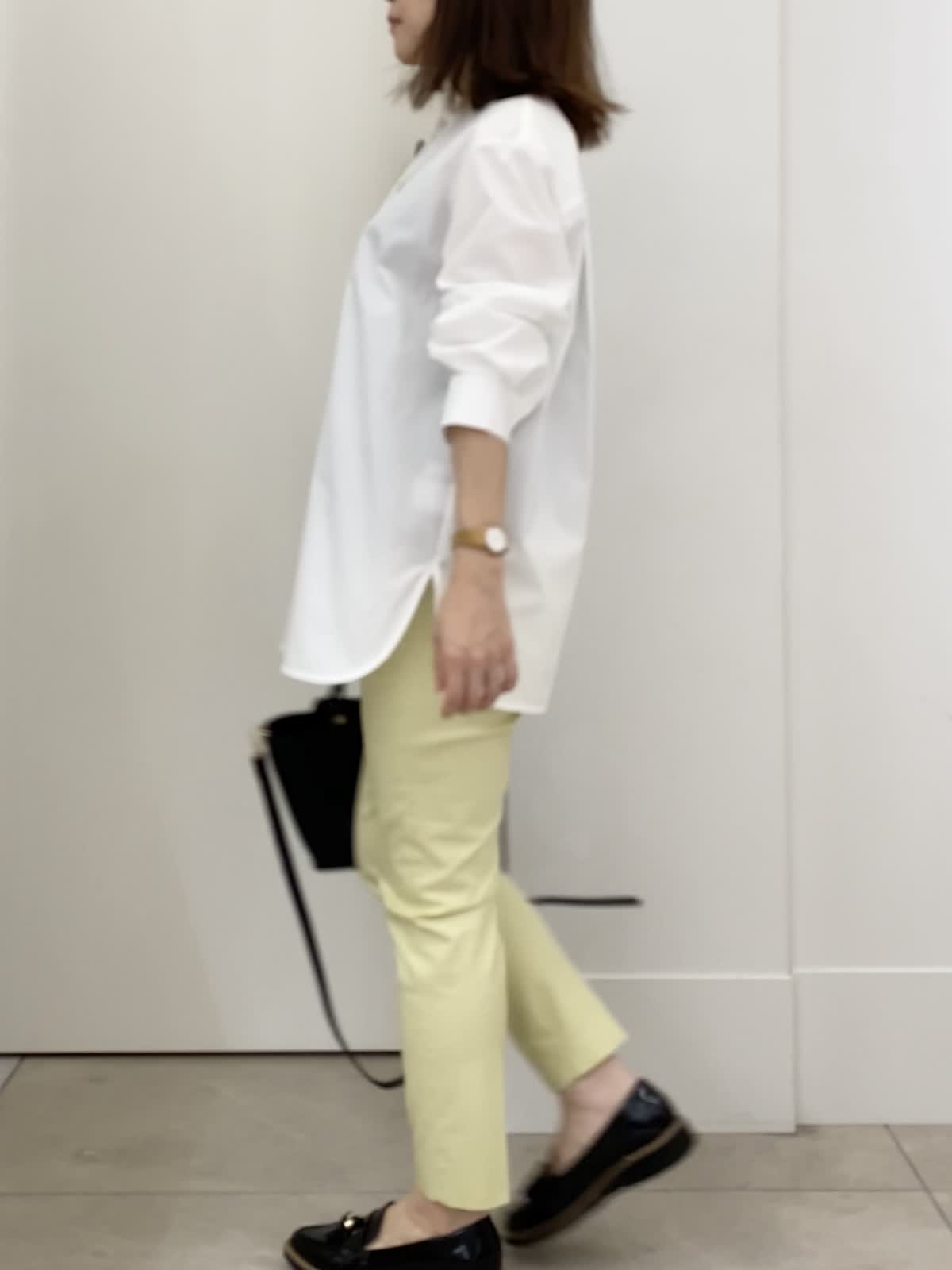 【着用サイズ/カラー】ブラウス:9号/ホワイト パンツ:5号/イエロー 小柄さん向けパンツコーデ イッツの定番パンツは5号サイズからあるので、小柄さんにもオススメ!普段パンツは敬遠しがちですが、イッツの5号サイズなら着丈もピッタリ。ふくらはぎの周りが細めなので、シルエットもすっきり。普段のサイズ感で選んで大丈夫ですが、ピッタリ見えるのが苦手な方はワンサイズUPしても。