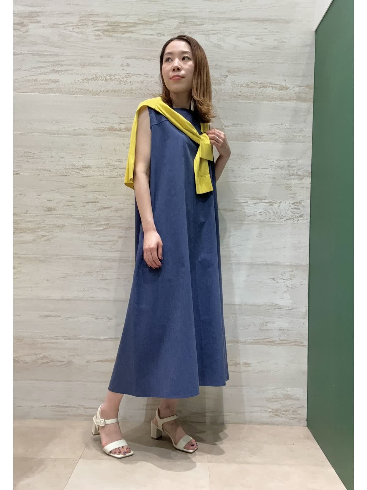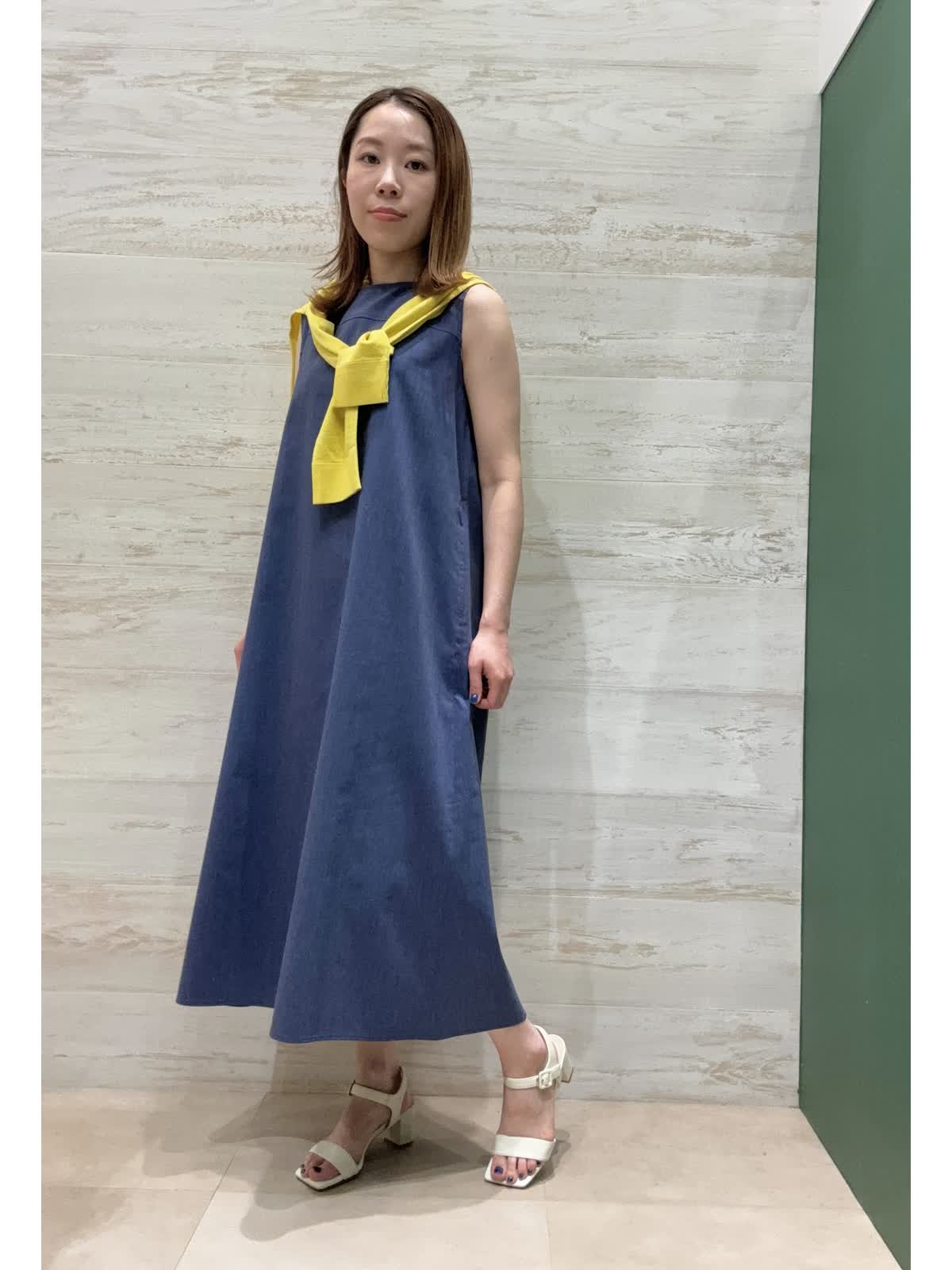 【着用カラー】ワンピース:ブルー カーディガン:イエロー 【着用サイズ】ワンピース:9号 カーディガン:9号 ノースリーブなので涼しく、身体のラインを拾わないシルエットなのでゆったりと着られます。 速乾性がありサラッと着ることができるので夏の旅行などにもオススメです。