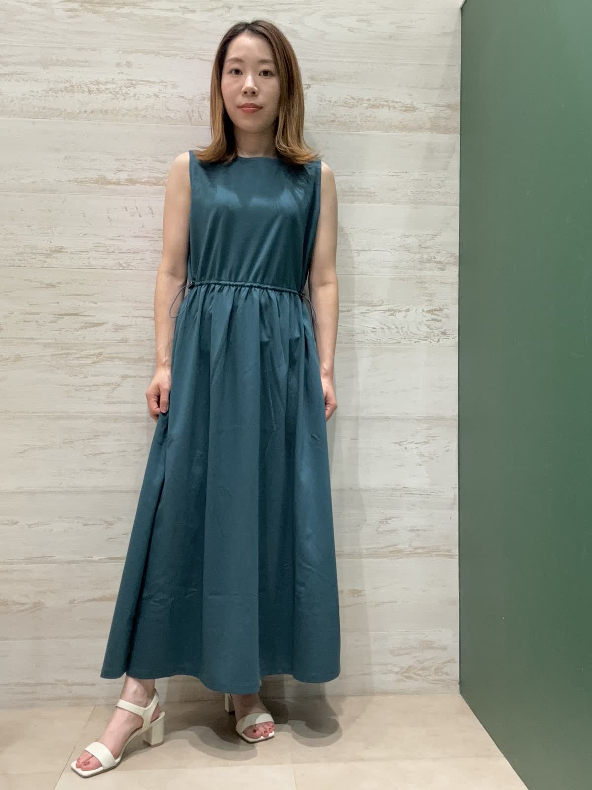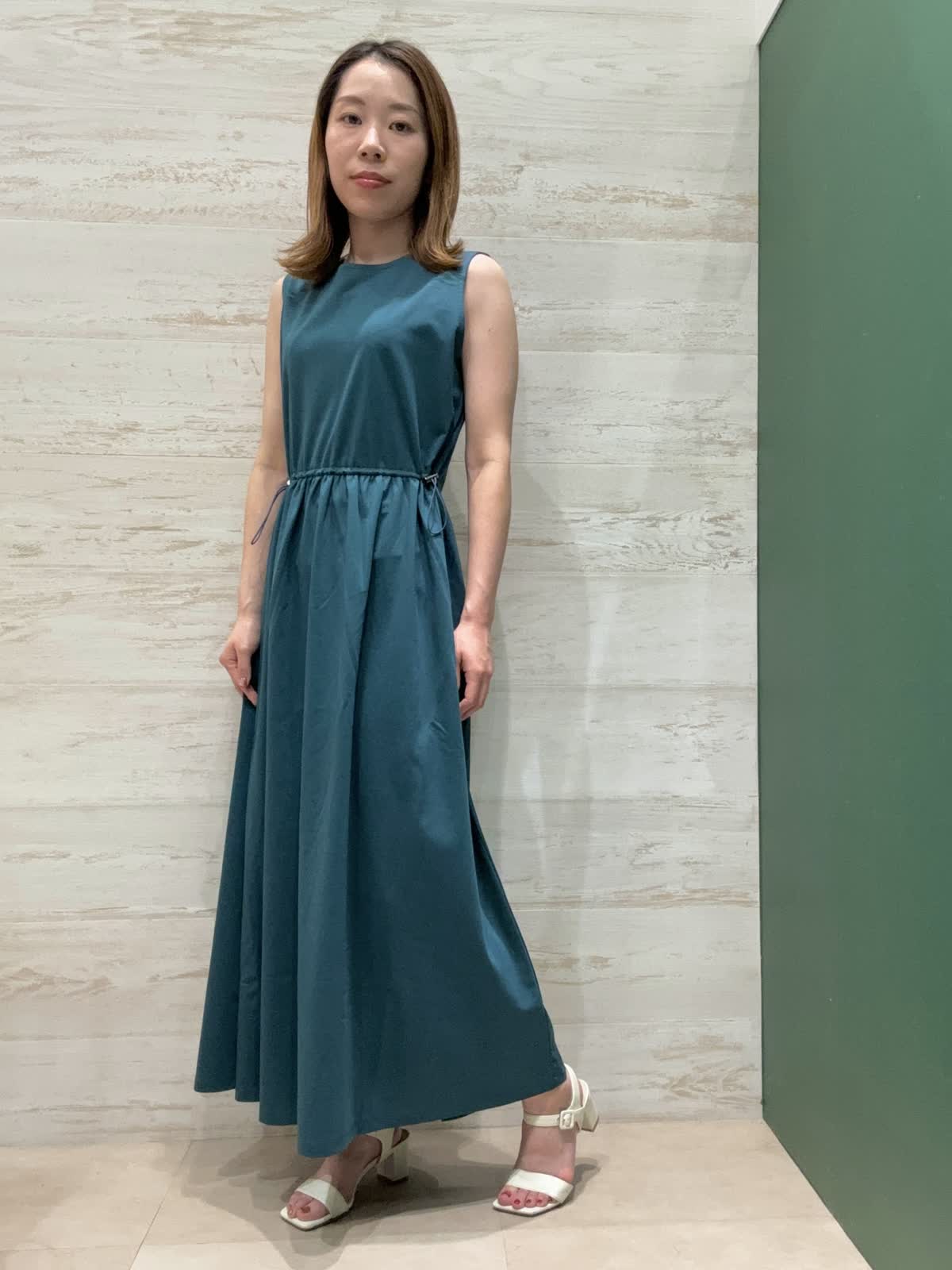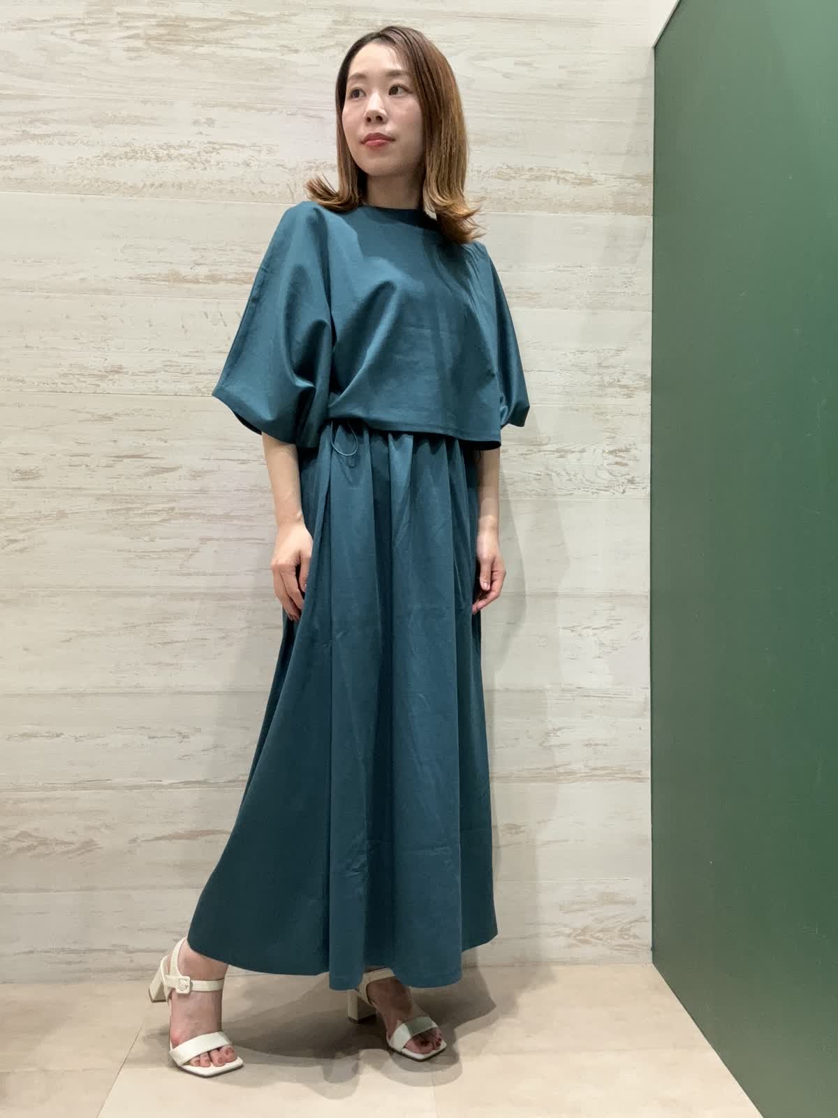 【着用カラー】トップス・ワンピース:ブルーグリーン 【着用サイズ】トップス・ワンピース:ブルーグリーン ワンピースがハイウエスト切替でバランス良く着られます。絞りで調節できるので休日リラックスしたい日は緩めると楽ちんに着れます。 接触冷感なので猛暑にぴったりです。