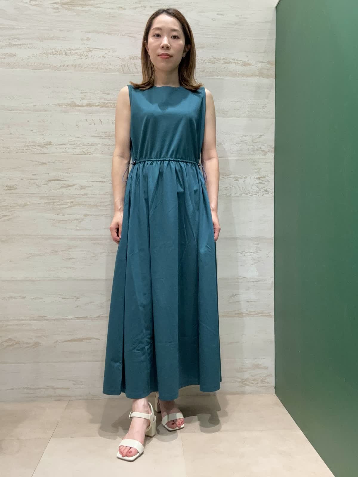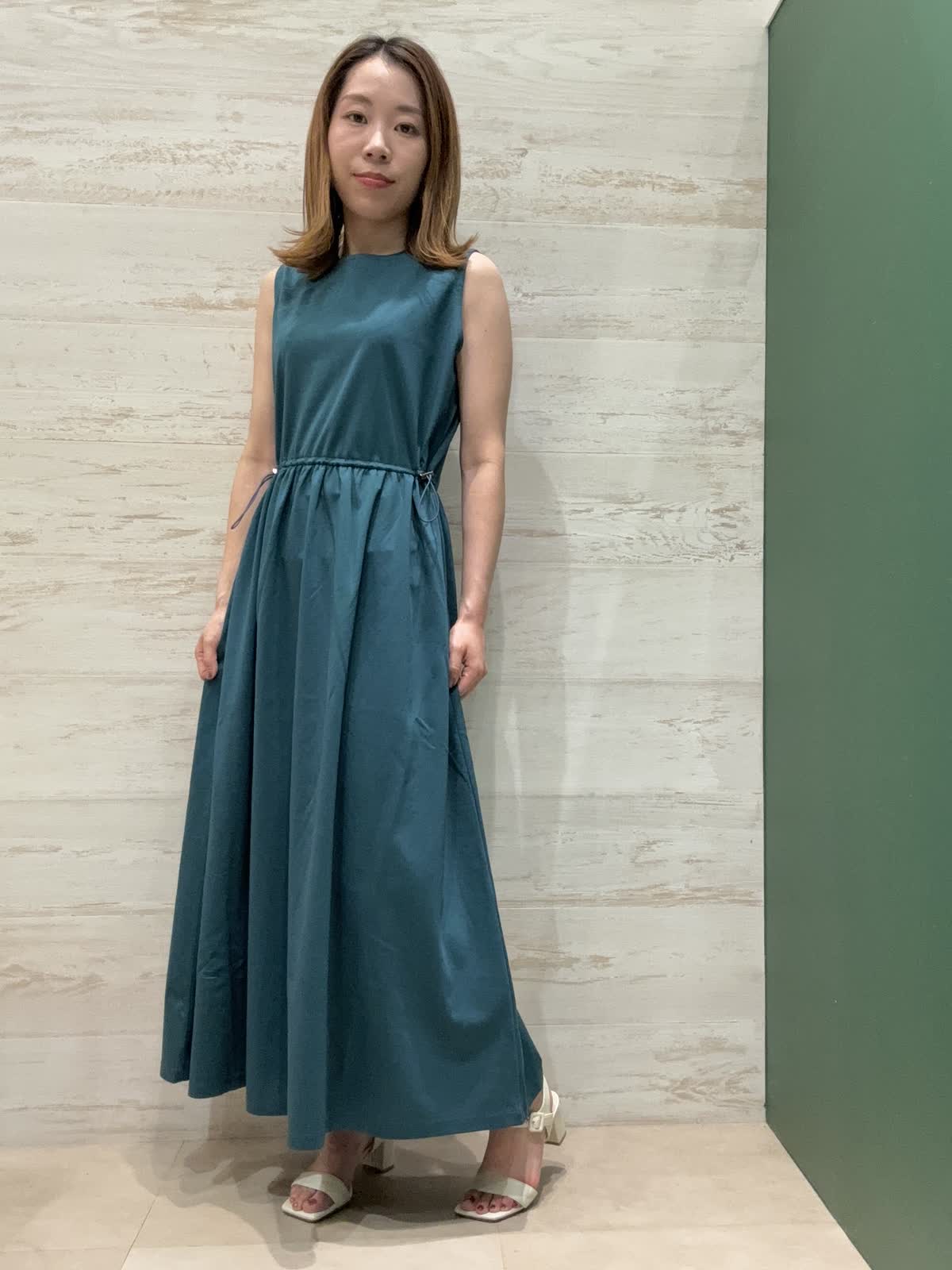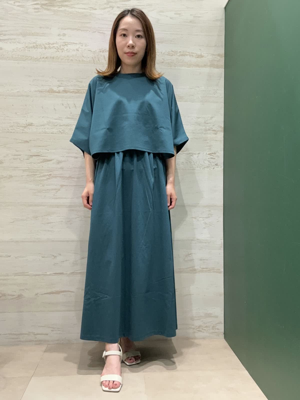 【着用カラー】トップス・ワンピース:ブルーグリーン 【着用サイズ】トップス・ワンピース:ブルーグリーン ワンピースがハイウエスト切替でバランス良く着られます。絞りで調節できるので休日リラックスしたい日は緩めると楽ちんに着れます。 接触冷感なので猛暑にぴったりです。