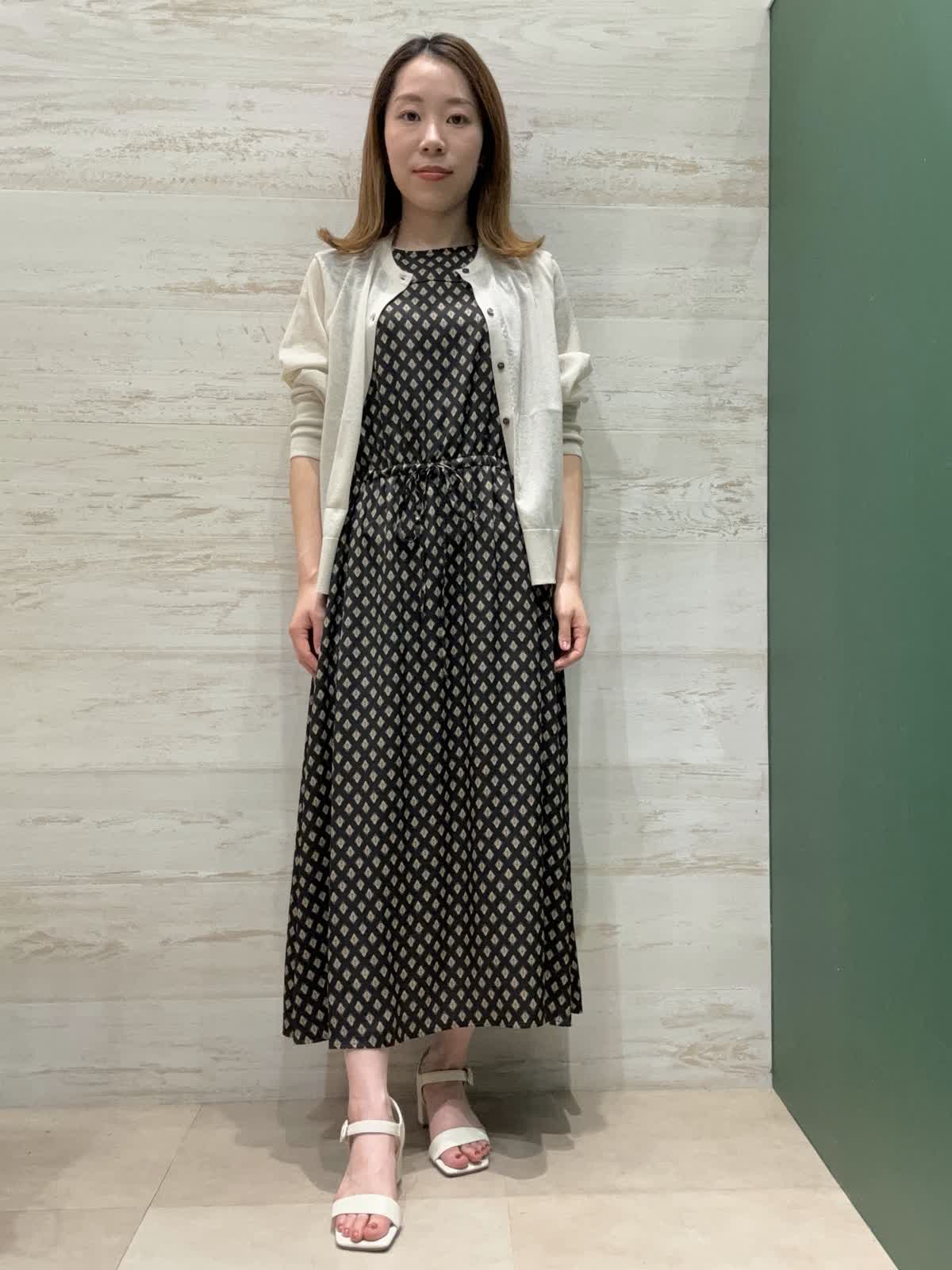 【着用カラー】ワンピース:ブラック カーディガン:ベージュ 【着用サイズ】ワンピース・カーディガン:フリー 素材がとても軽くてシワになりにくく旅行やお出かけにぴったりなワンピースです。 ウエストのドロスト調整でキレイめからゆったりカジュアルまで色々楽しめます。
