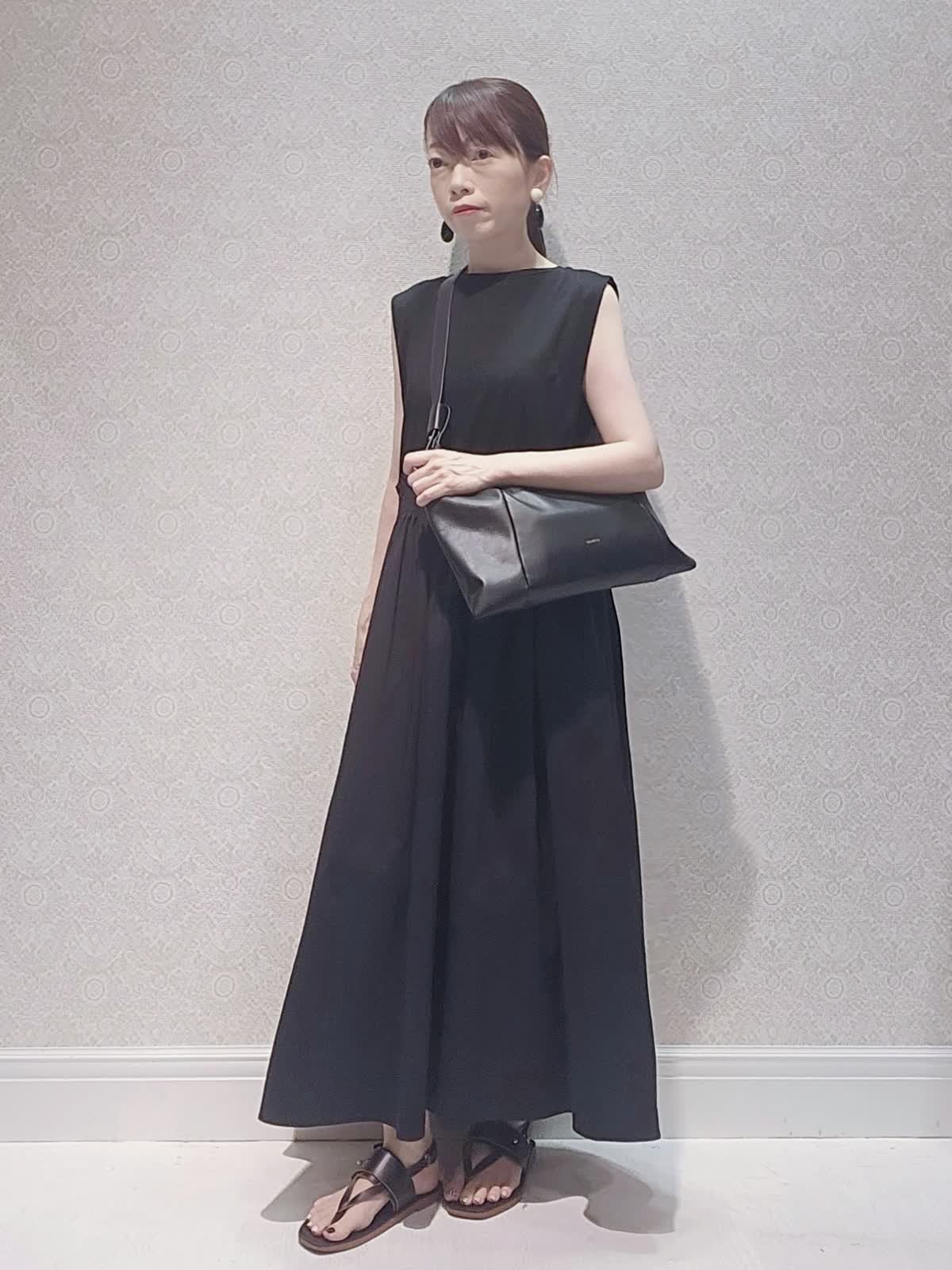 【着用サイズ】ワンピース:9号 【着用カラー】 ワンピース:ブラック トップス部分はカットソーで着心地が良く、スカート部分は自然な光沢感があり、カジュアルになりすぎないのも○ 羽織や小物使いで雰囲気を変えて頂けるお勧めのワンピースです。