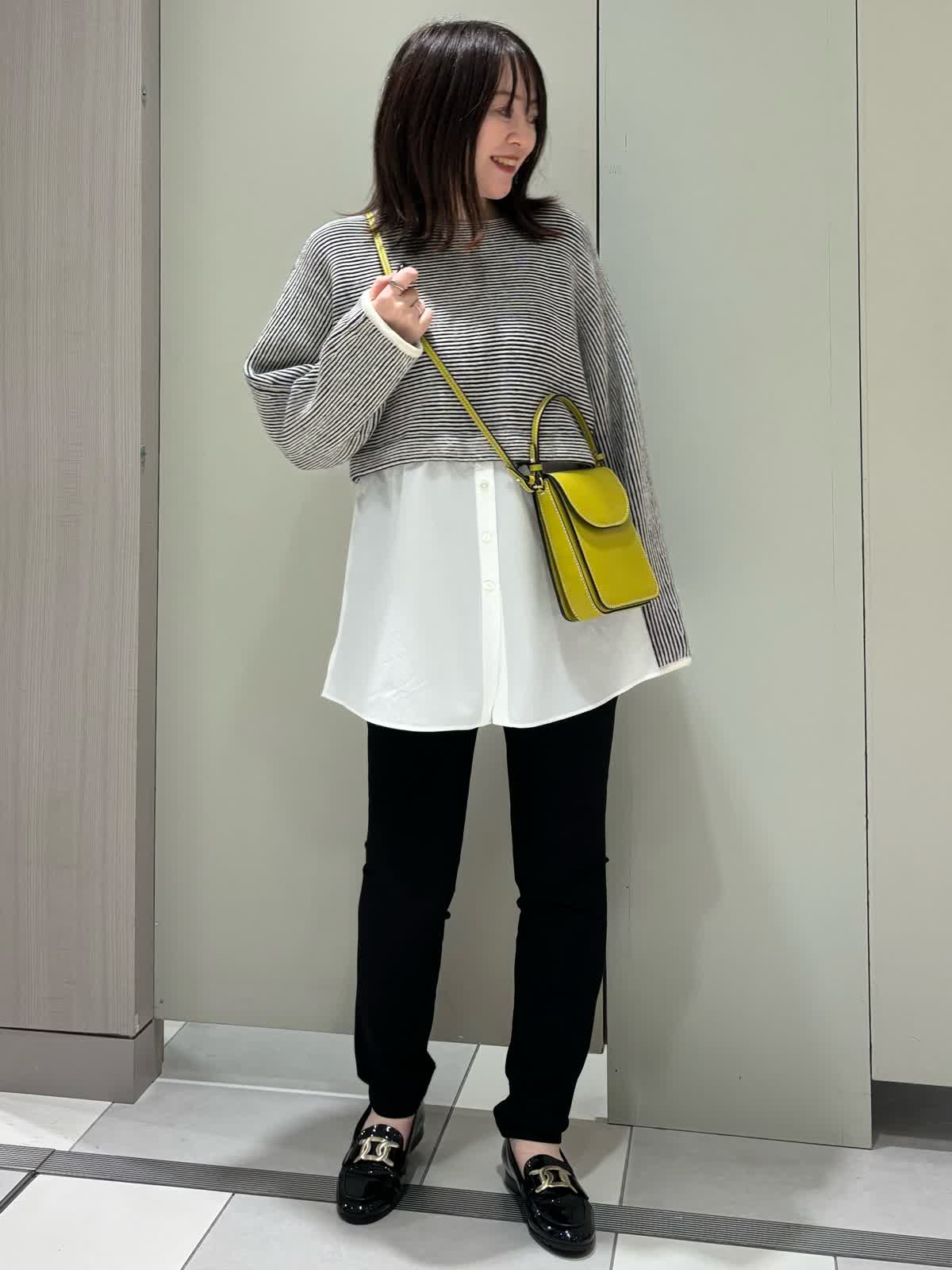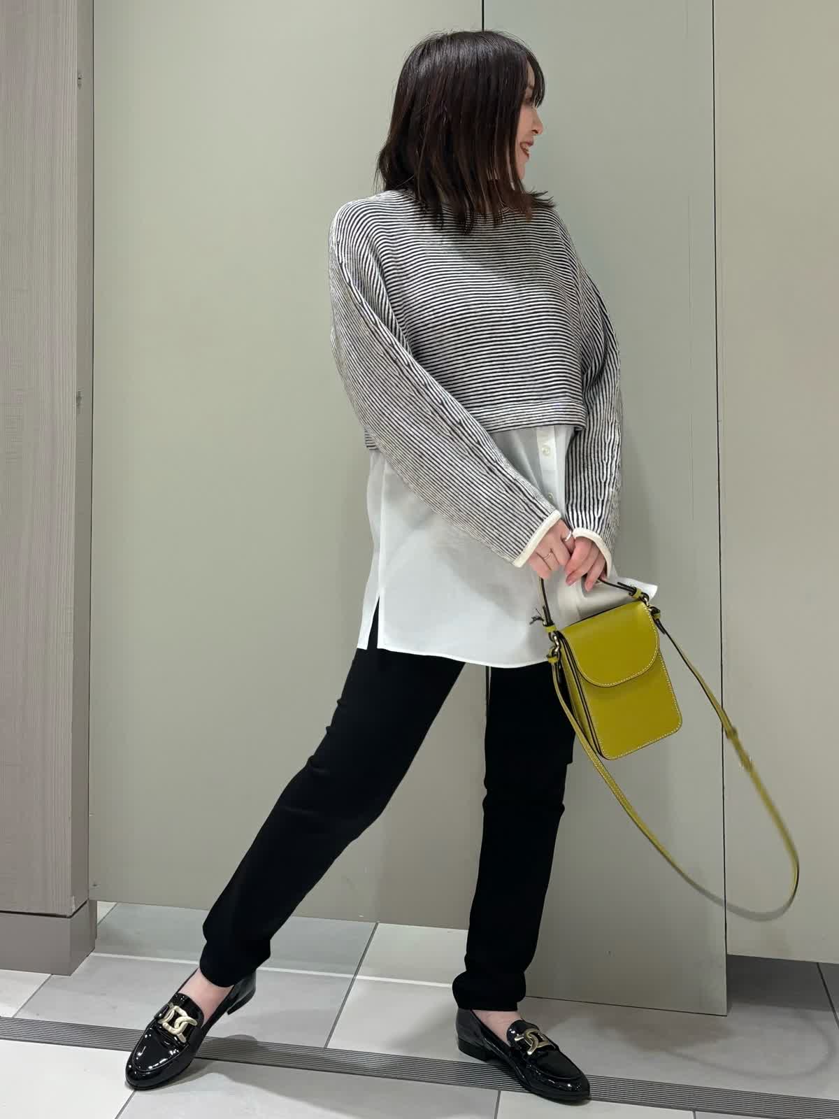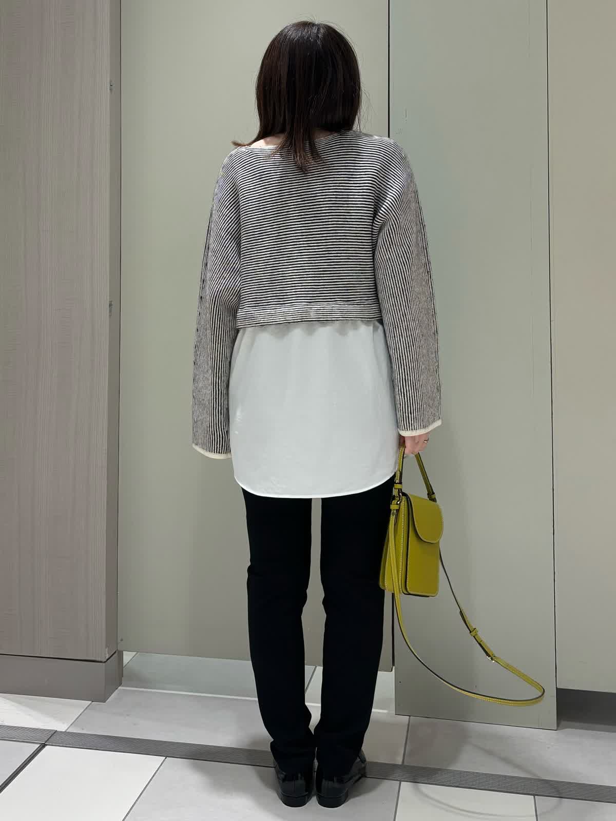 【着用サイズ】 全て9号 【着用カラー】 ニット:オフホワイト パンツ:ブラック オフの日のオススメお出かけコーディネート。 シャツがドッキングしたニットは脚長効果がありスタイルアップを叶えてくれるデザインです。合わせたレギンスパンツはストレッチ性がかなりあり履き心地が抜群。オフの日のお出かけにオススメです!