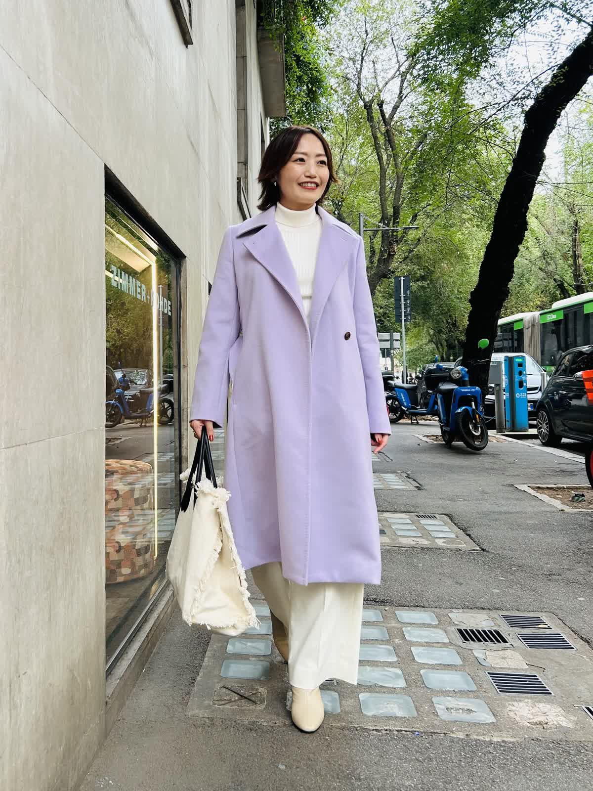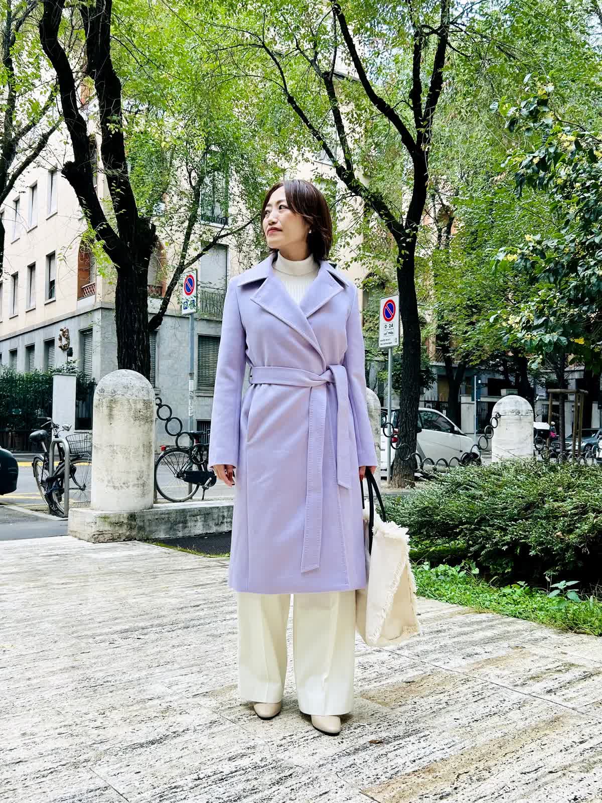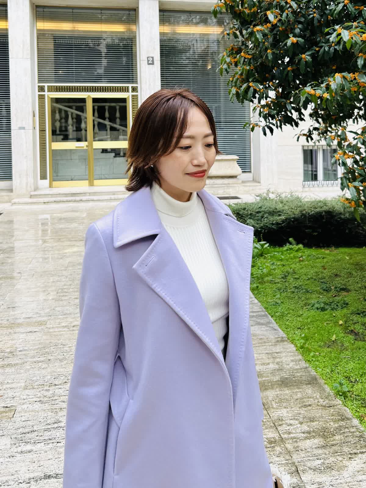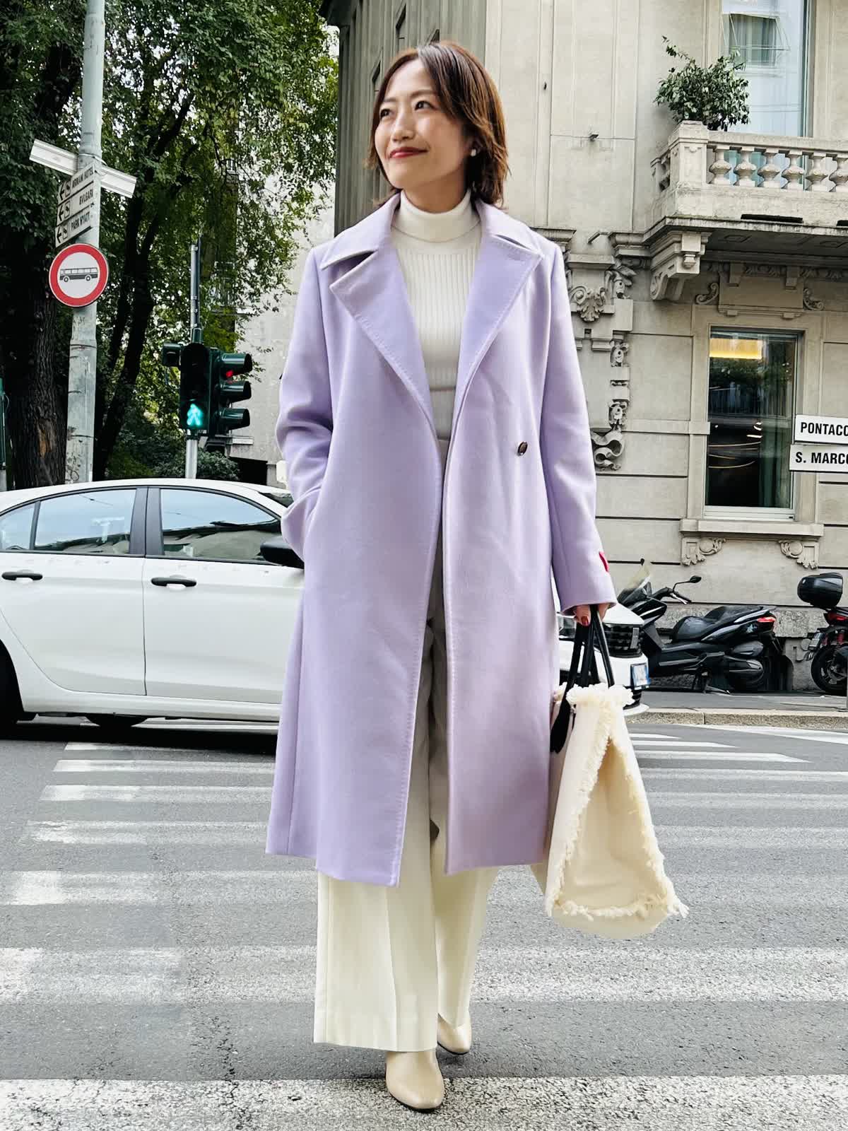 【着用サイズ】全て9号【着用カラー】コート:ラベンダー ニット:アイボリー パンツ:オフホワイト (雑貨は私物) 旅の街歩きコーデ。毎日が思い出になる旅行は、カシミヤコートを纏って大切な一瞬一瞬を贅沢に。最高級のカシミヤ素材、ベーシックで長く愛用できるデザイン、最高の着心地、日本の縫製、全てに拘った1着です。
