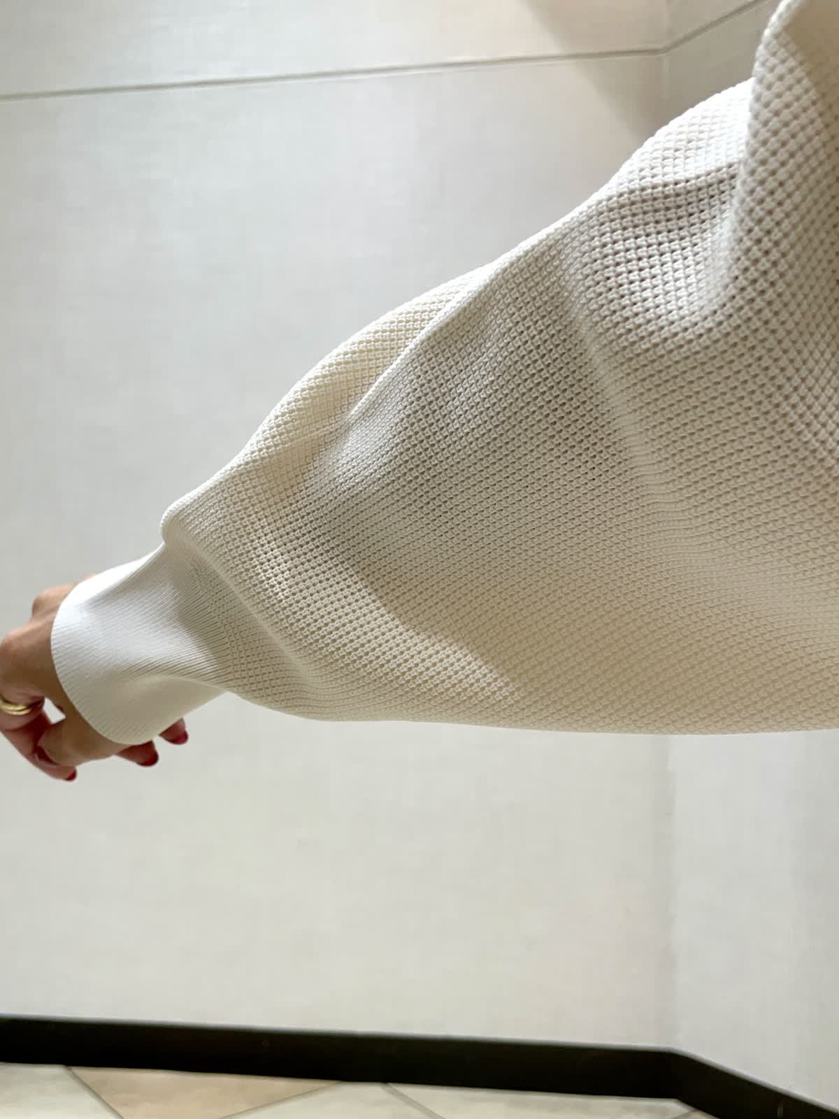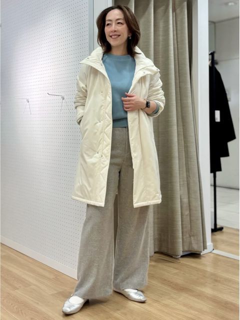 着用サイズ】ジャケット:9号:ニット9号 パンツ:7号 【着用カラー】ジャケット:インディゴ ニットクリーム:パンツ:シロ 秋のお出かけコーディネートです。ブルゾンは程良くゆったりしていてストレッチが効いているので着やすいです。ニットは着丈がスッキリしていてボリューム袖がポイント。 チェックの色合いがかわいいワイドパンツと合わせて着てみました。