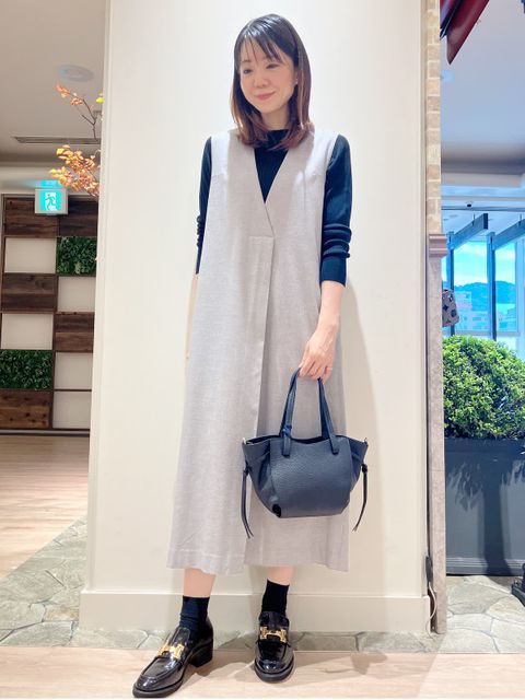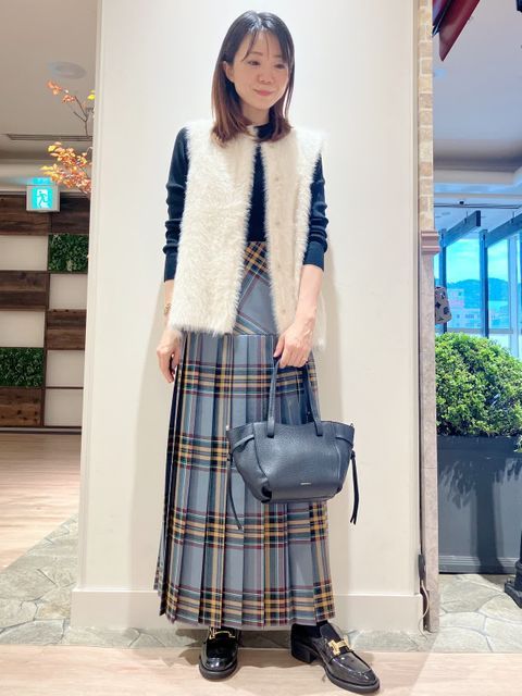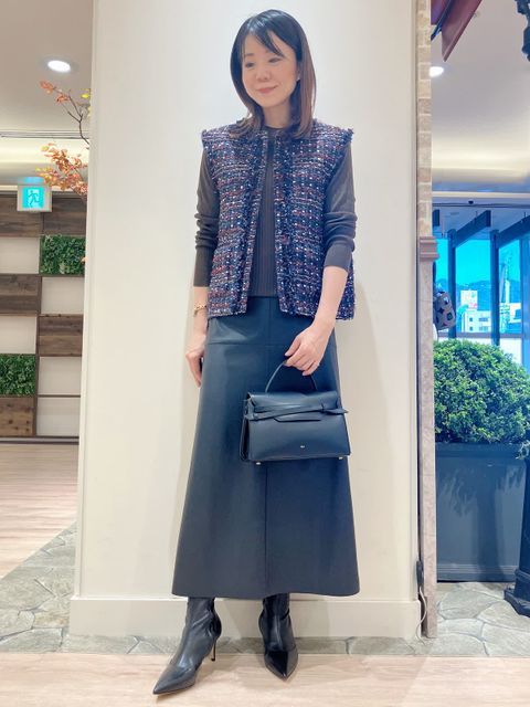 【着用サイズ】コート:9号 ニット:9号 パンツ:7号 【着用カラー】コート:ネイビー ニット:ネイビー パンツ:グレンチェック コーディネートのテーマは寒い日のお出かけスタイリングです。 キルティングコートは、上下切り替えのコンビ素材で、1枚でも着映えするデザイン。暖かく軽くて着心地も抜群。 適度なボリューム感があるので、低身長さんは、細身のパンツと合わせるとよりバランス良くコーディネートできます。