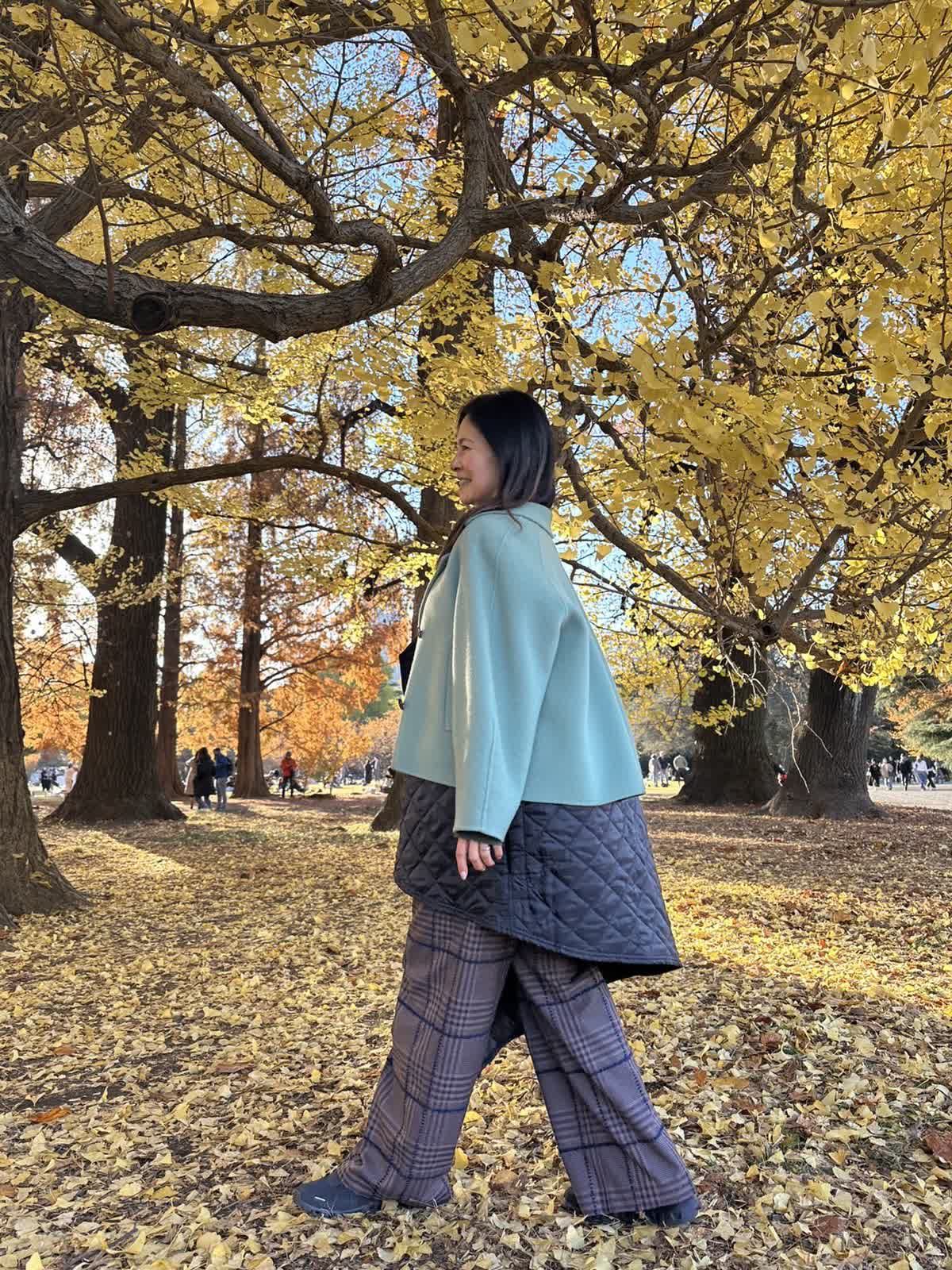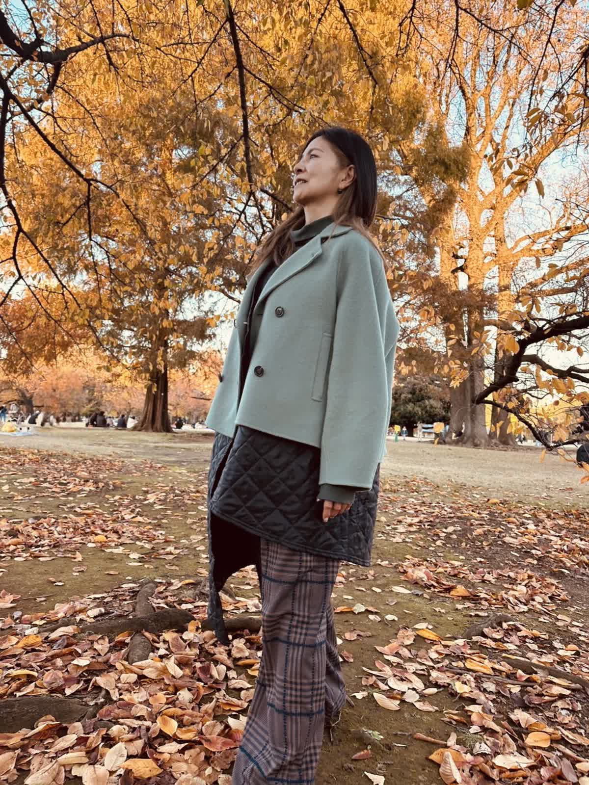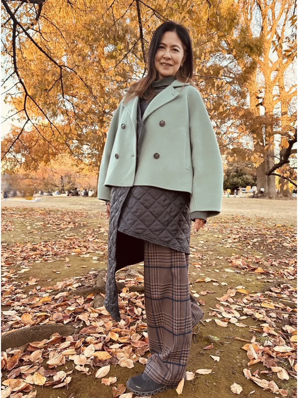【着用サイズ】9号 【着用カラー】ダークブラウン 生地がとても柔らかく穿いていて楽です。 ダボっとしてるのに腰回りはスッキリ、バックスタイル気にいってます。 ラインの青もお洒落な刺繍で素敵です。 ※コート・パンツ他、アンバサダー私物です