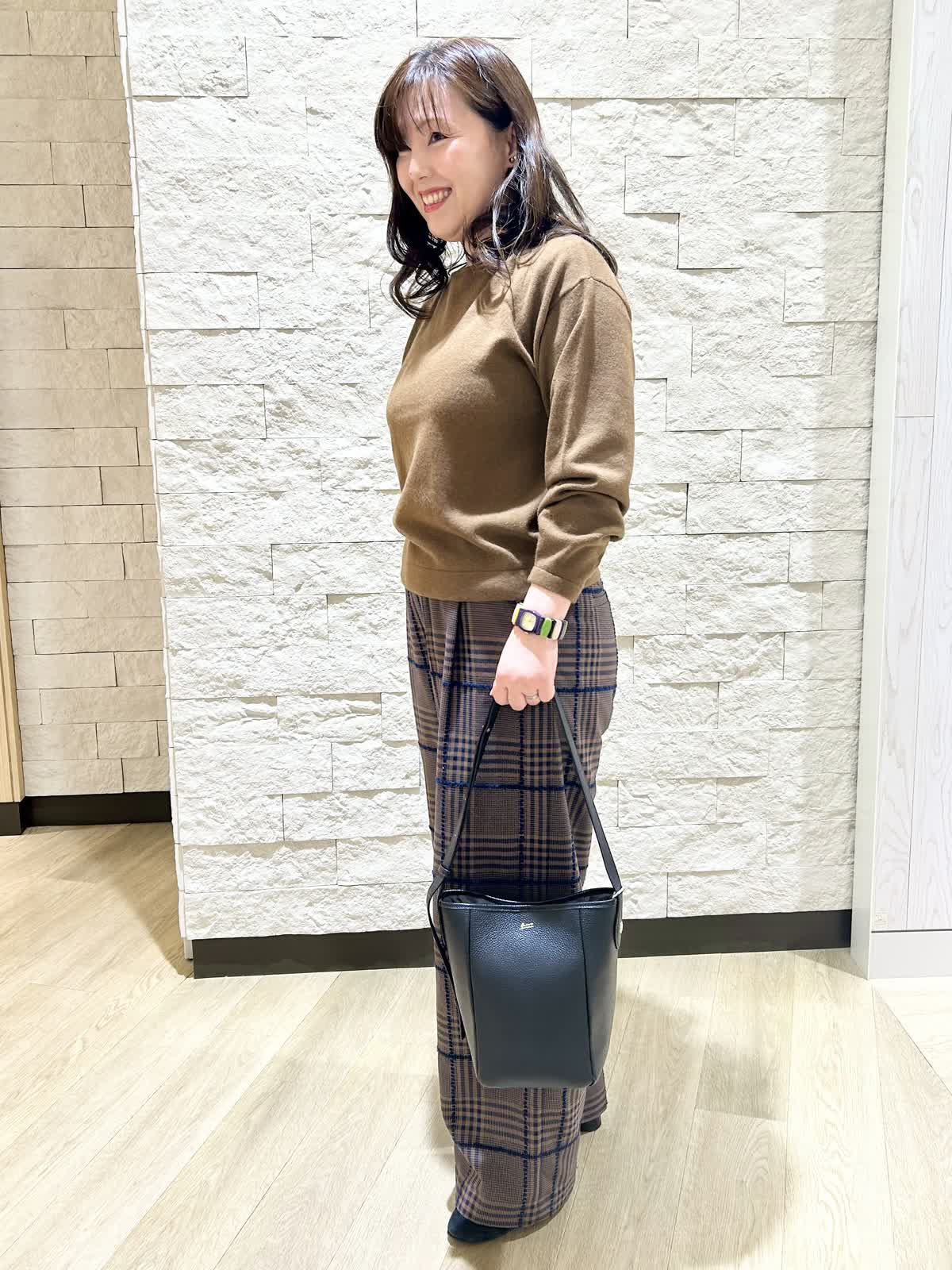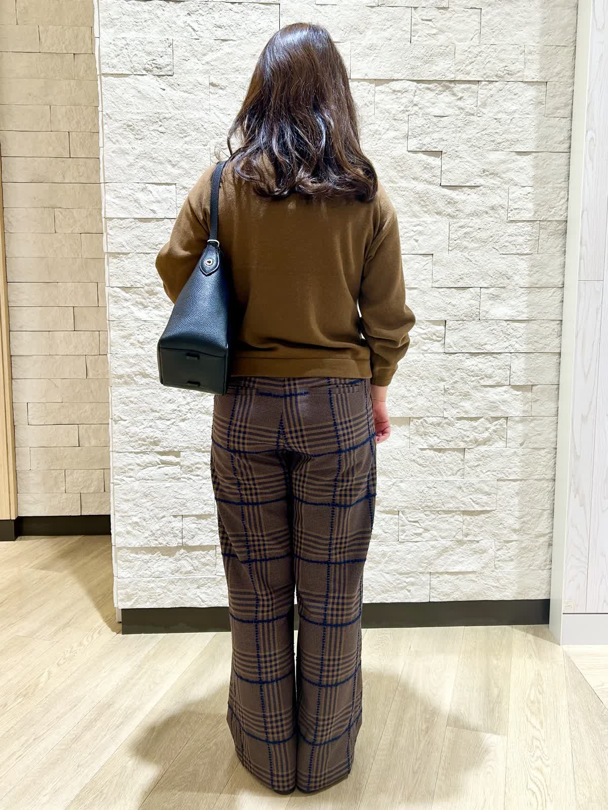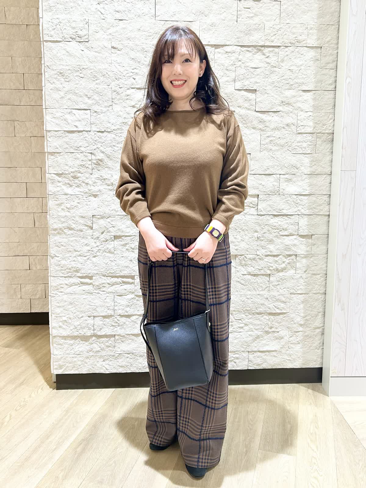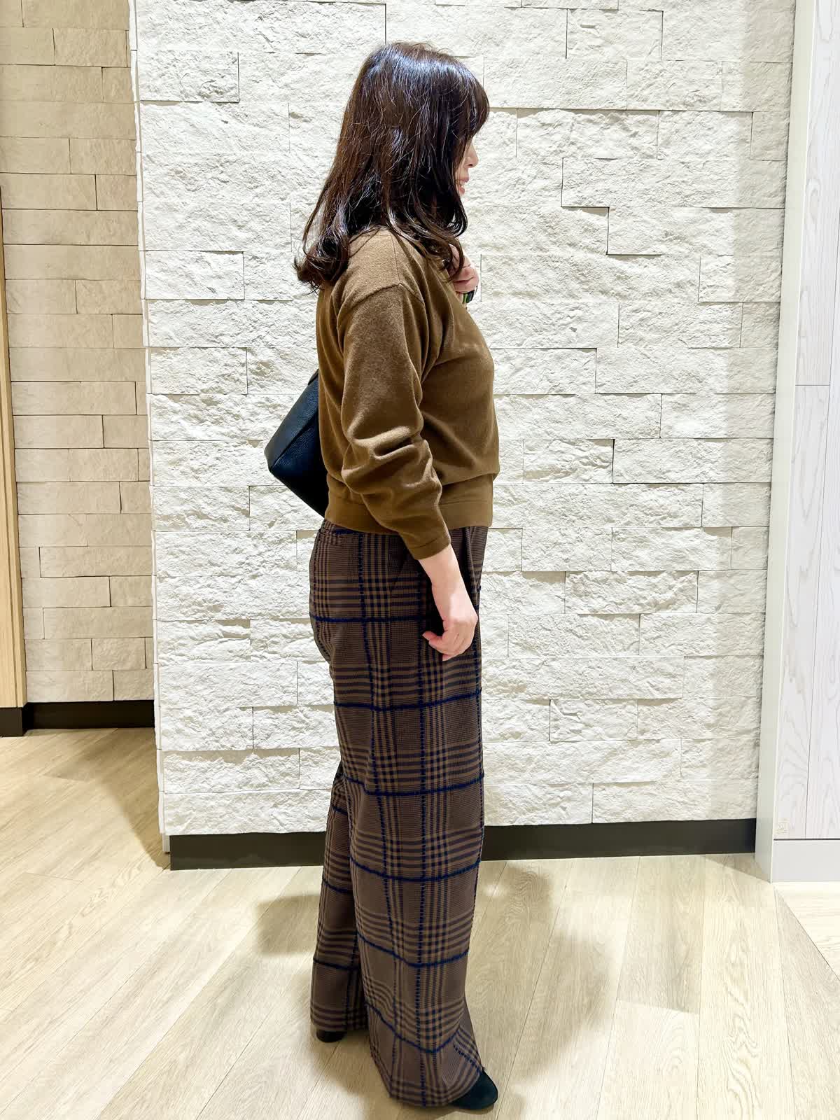 【着用カラー.サイズ】 アイテム:ニット カラー:ブラウン サイズ:フリー アイテム:パンツ カラー:ダークブラウン サイズ:11号 柔らかい色目のブラウンダークブラウンパンツを合わせたブラウンコーディネートです。 同系色でまとめるとアウター選びに困りません。