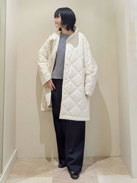 【着用サイズ/カラ−】ブルゾン:フリ−/ネイビー、ブラウス:フリー/ネイビー、パンツ:7号/ブルー 程よいハリ感のあるブラウスはポリエステル素材で、シワになりにくくお手入れしやすいです。ヒップラインもカバーできる着丈なのでテ−パ−ドパンツでスッキリ見えます。今羽織るのにちょうど良いデニムライク素材のブルゾンを合わせてみました。