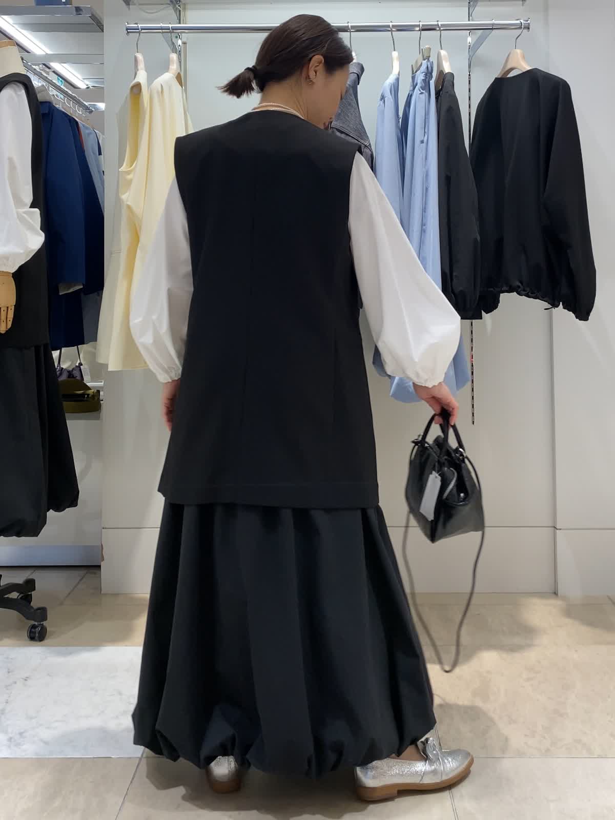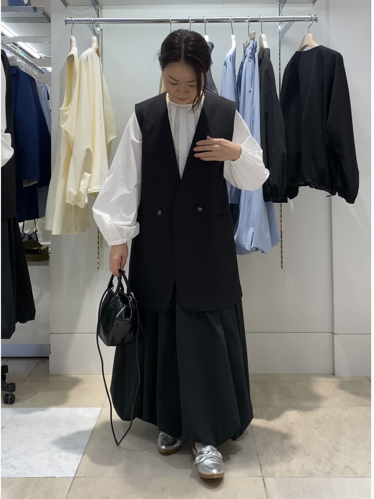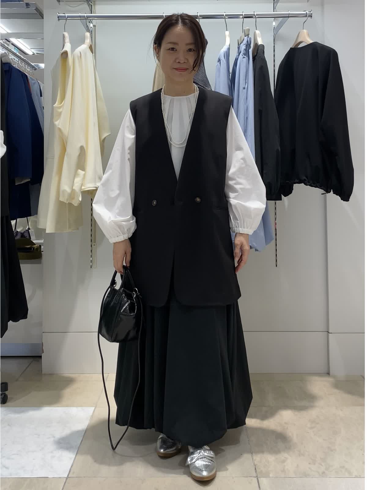 【着用カラー/サイズ】ジレ:ブラック/9号 ブラウス:ホワイト/フリー スカート:ブラック/フリー 晴れの日にも使えるカジュアルフォーマル 入園入学などの晴れの日にも使えるジレを使ったコーディネート。今人気のバルーンスカートで、きちんと感がありながらもストレスなく気軽に着られます。ちょっとおしゃれしたい時やきちんと感が欲しい時に大活躍間違いなしです。ブラウスはパンツ合わせもかわいいのでオススメ!