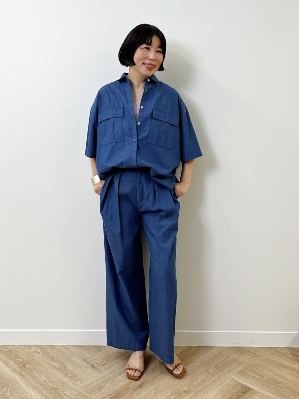 軽やかな着心地が特徴のデニムシャツ。 一般的なデニムシャツに比べて軽く春や秋の気候にも最適です。 柔らかな質感と、リラックスしたシルエットが特徴で、カジュアルにも少しきれいめにも着こなせます。