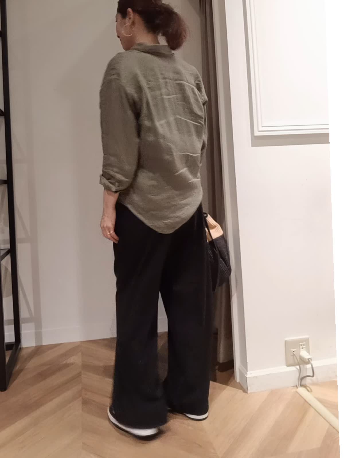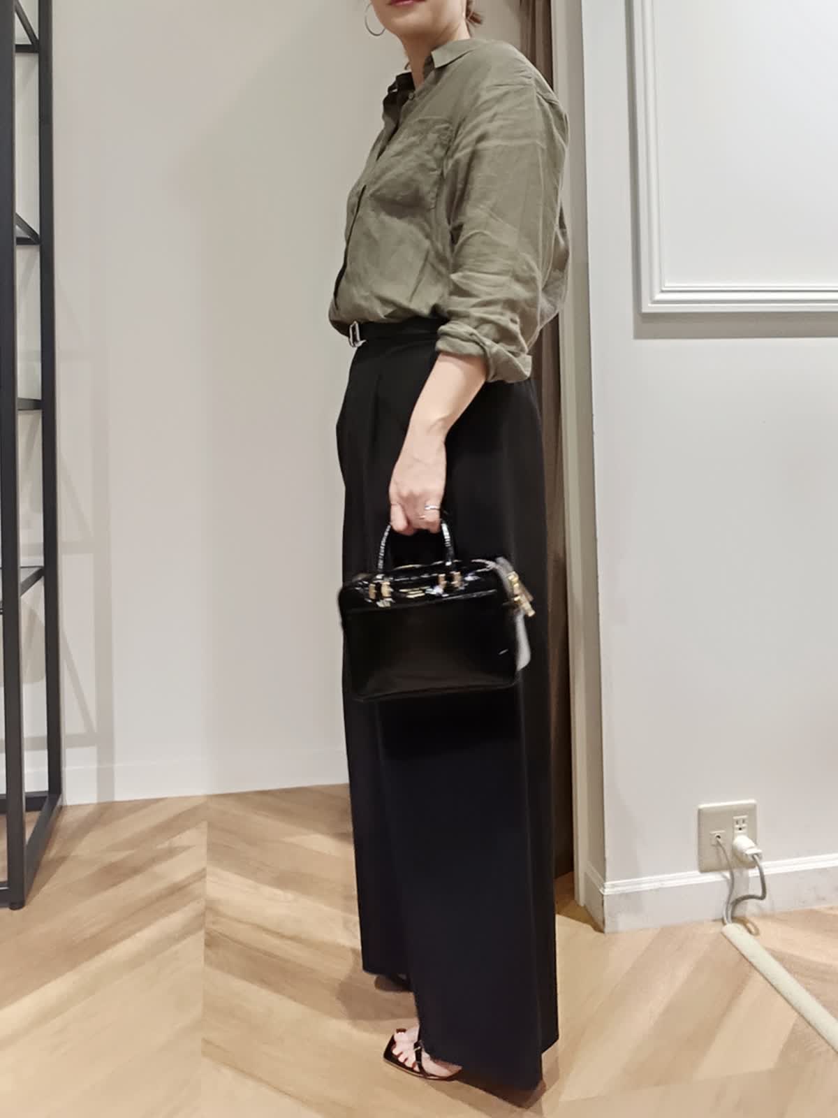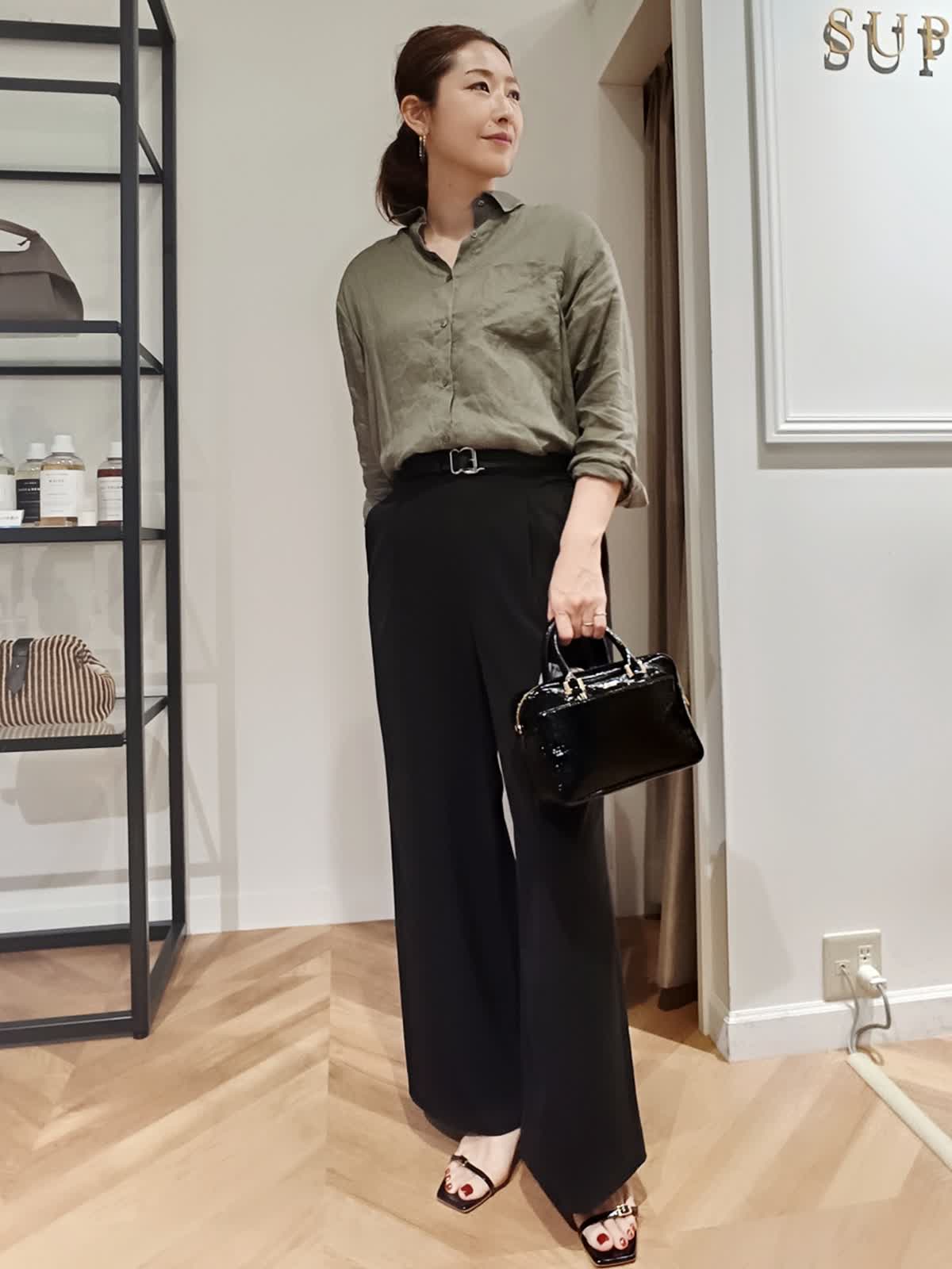 【着用サイズ:カラー】シャツ:9号:カーキ パンツ:11号:ブラック イージーワイドパンツは落ち感が良くはき心地も抜群でぜひ着て欲しいパンツです。夏まで涼しくはけて、キレイめカジュアルどちらでも使えます。シワも気にならないので旅行にもぴったりです。毎年人気の麻シャツもこれから夏まで活躍すること間違いなしです。