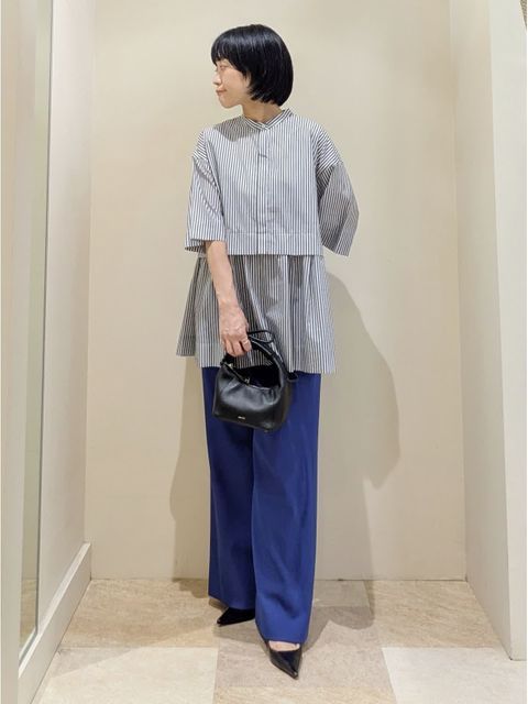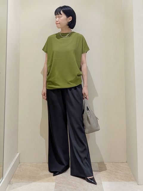 【着用サイズ】カーディガン/フリー、スカート/9号、バッグ/フリー 【着用カラー】カーディガン/ベージュ、スカート/ブラック、バッグ/ブラック 『初夏のスカートスタイル』ブロックチェックが目を引く、麻混フレアースカート。コンパクトな着丈がポイントのカーディガンをプルオーバーで着て、バランス良く軽やかな印象に。
