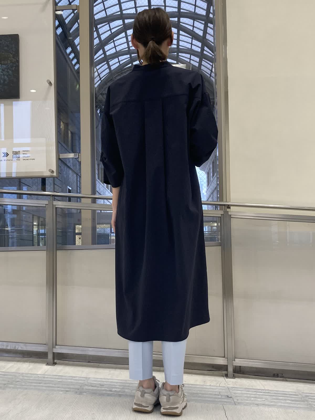 【着用サイズ】ワンピース:フリーサイズ カットソー:フリーサイズ パンツ:7号 【着用カラー】ワンピース:ネイビー カットソー:オフホワイト パンツ:サックス ツイストスリーブのワンピースでシンプルなコーディネートもオシャレに。シワになりにくい素材とポケットが付いているのも嬉しいポイントです。ブルー系統で合わせたパンツは足を綺麗に見せてくれます。