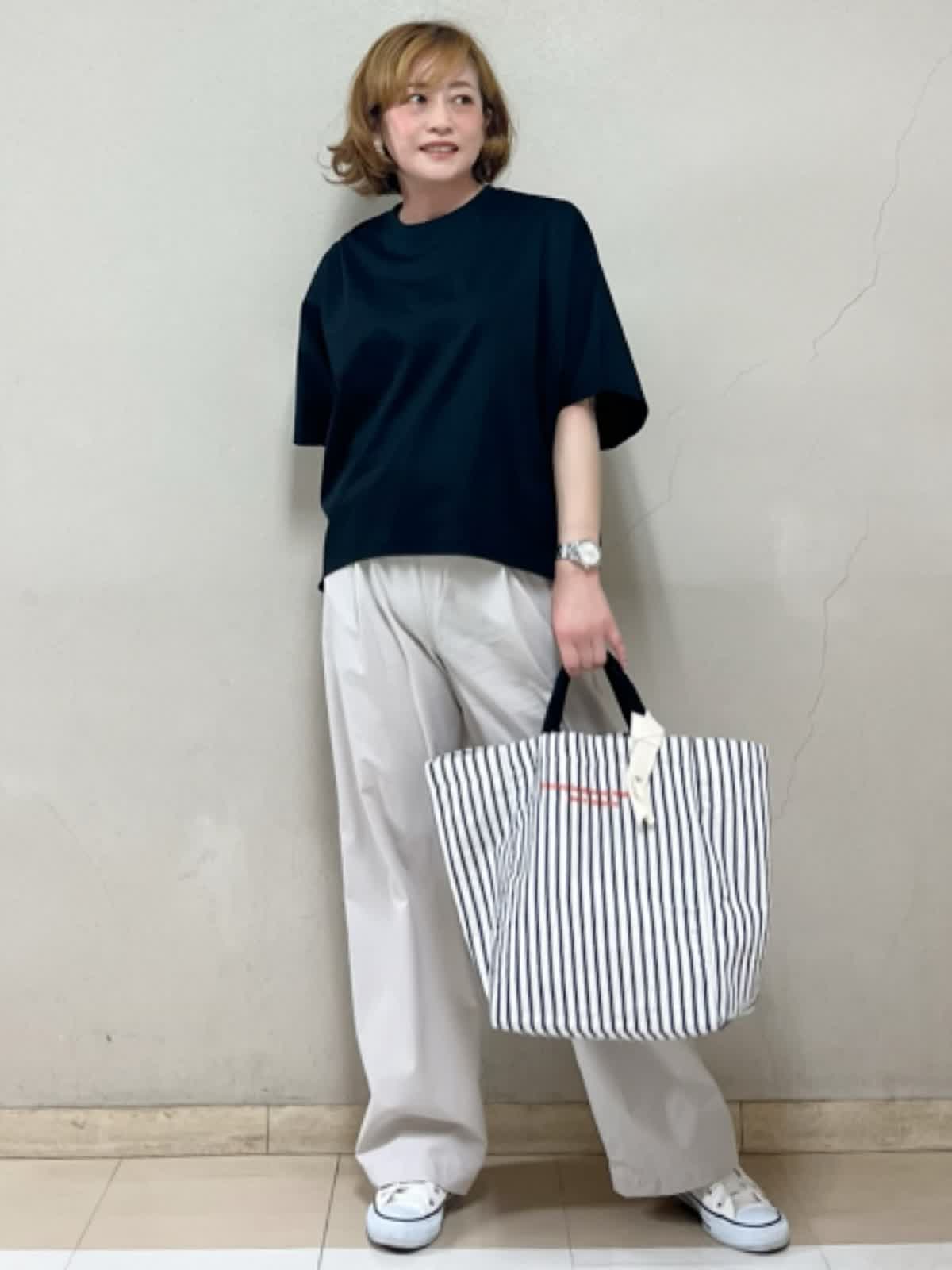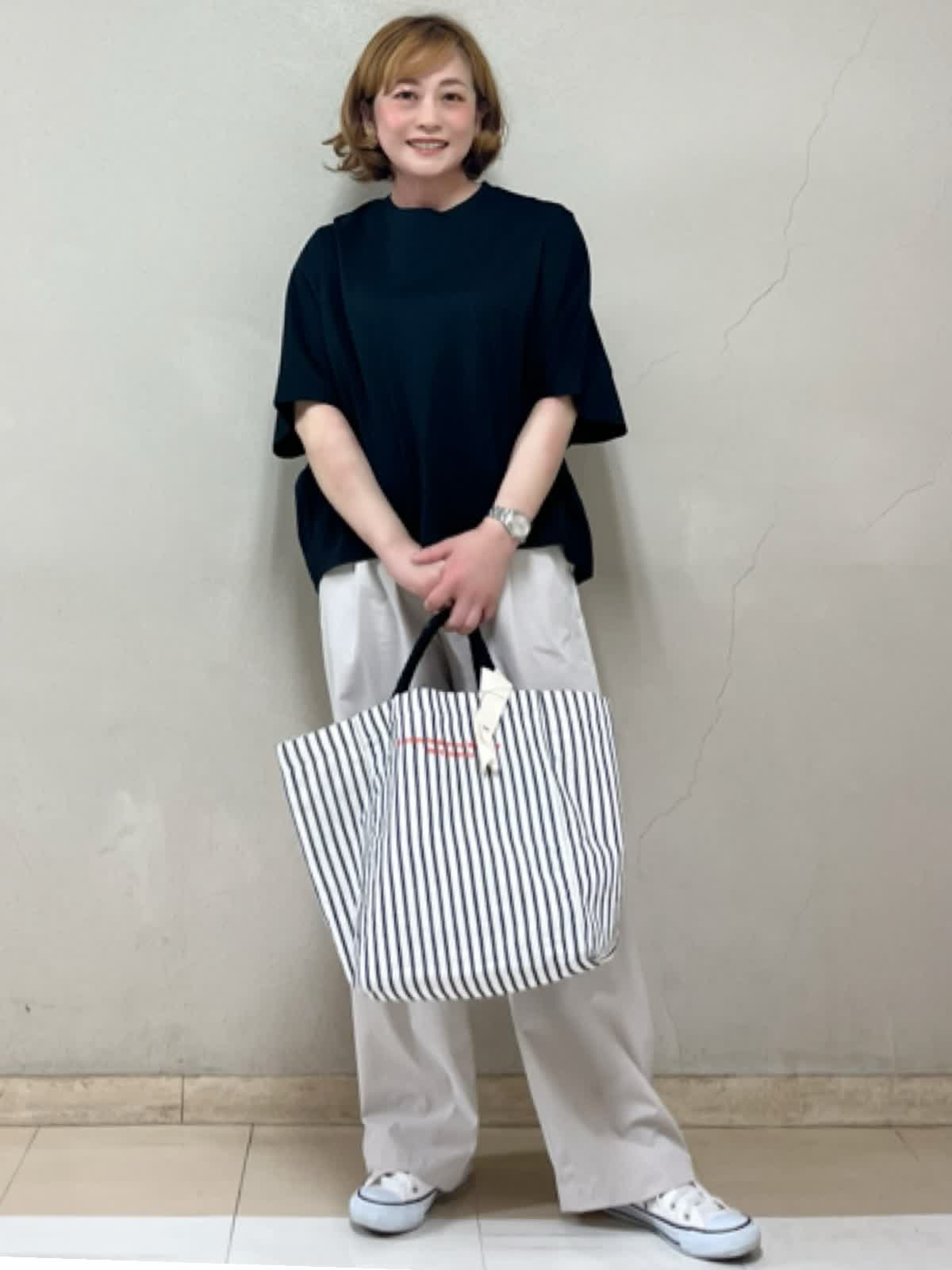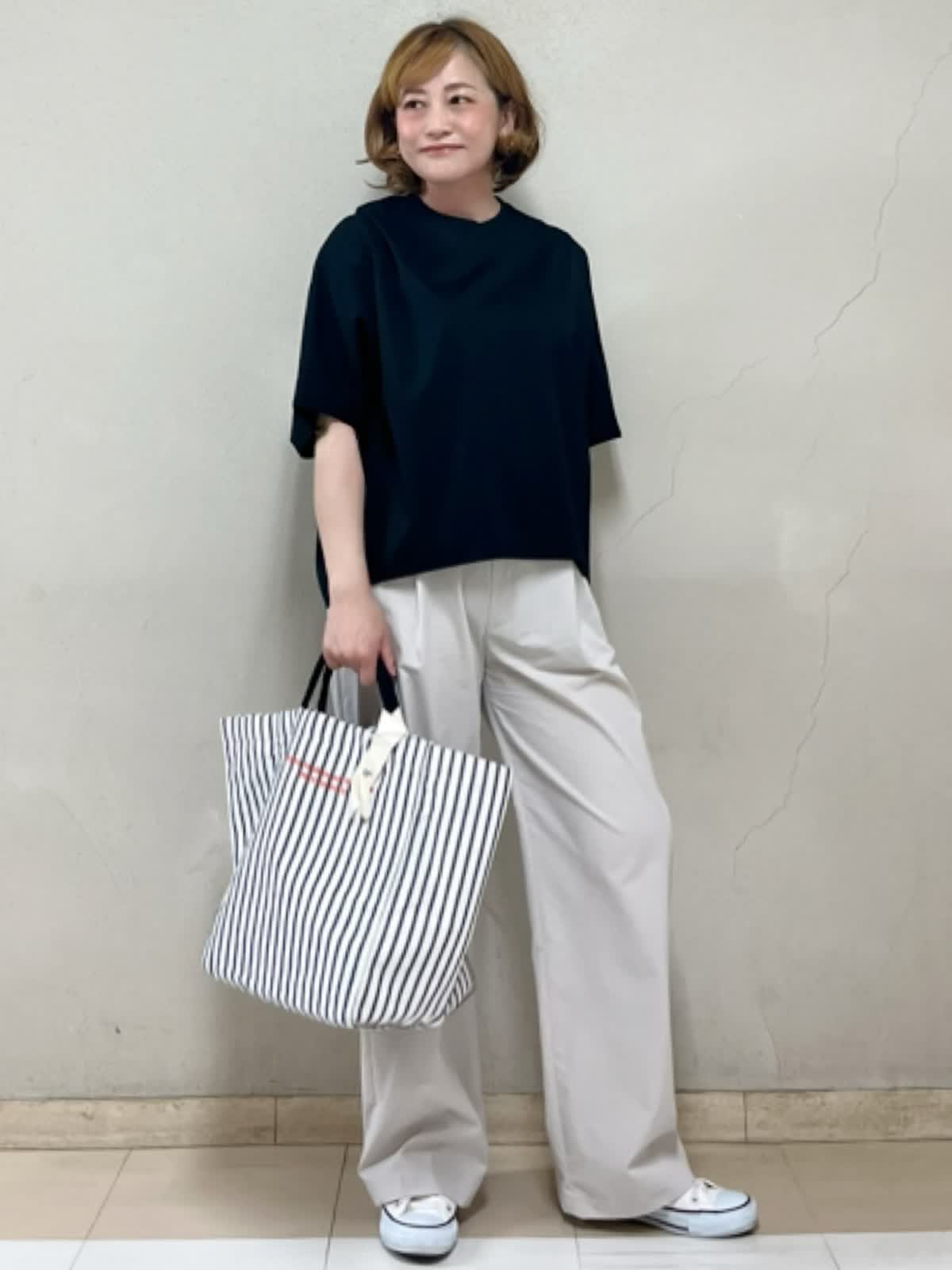 【着用カラー】カットソー:ブラック パンツ:ベージュ