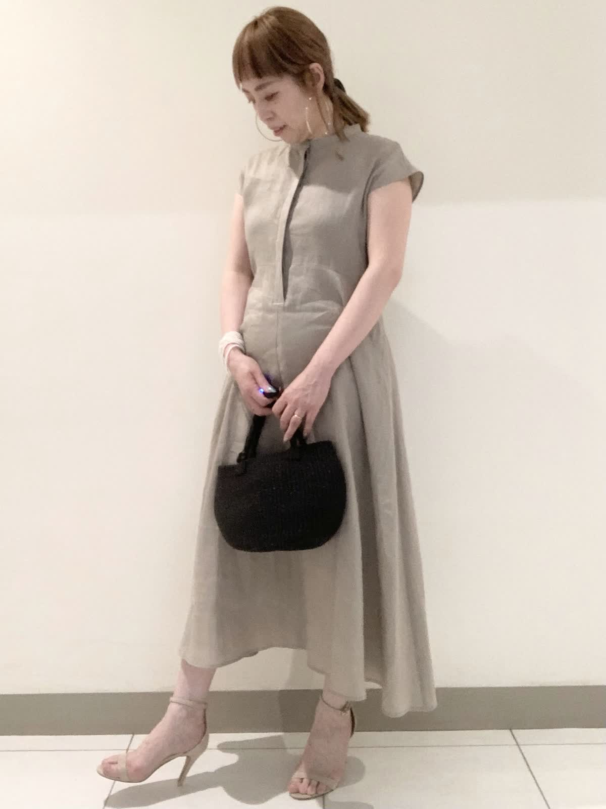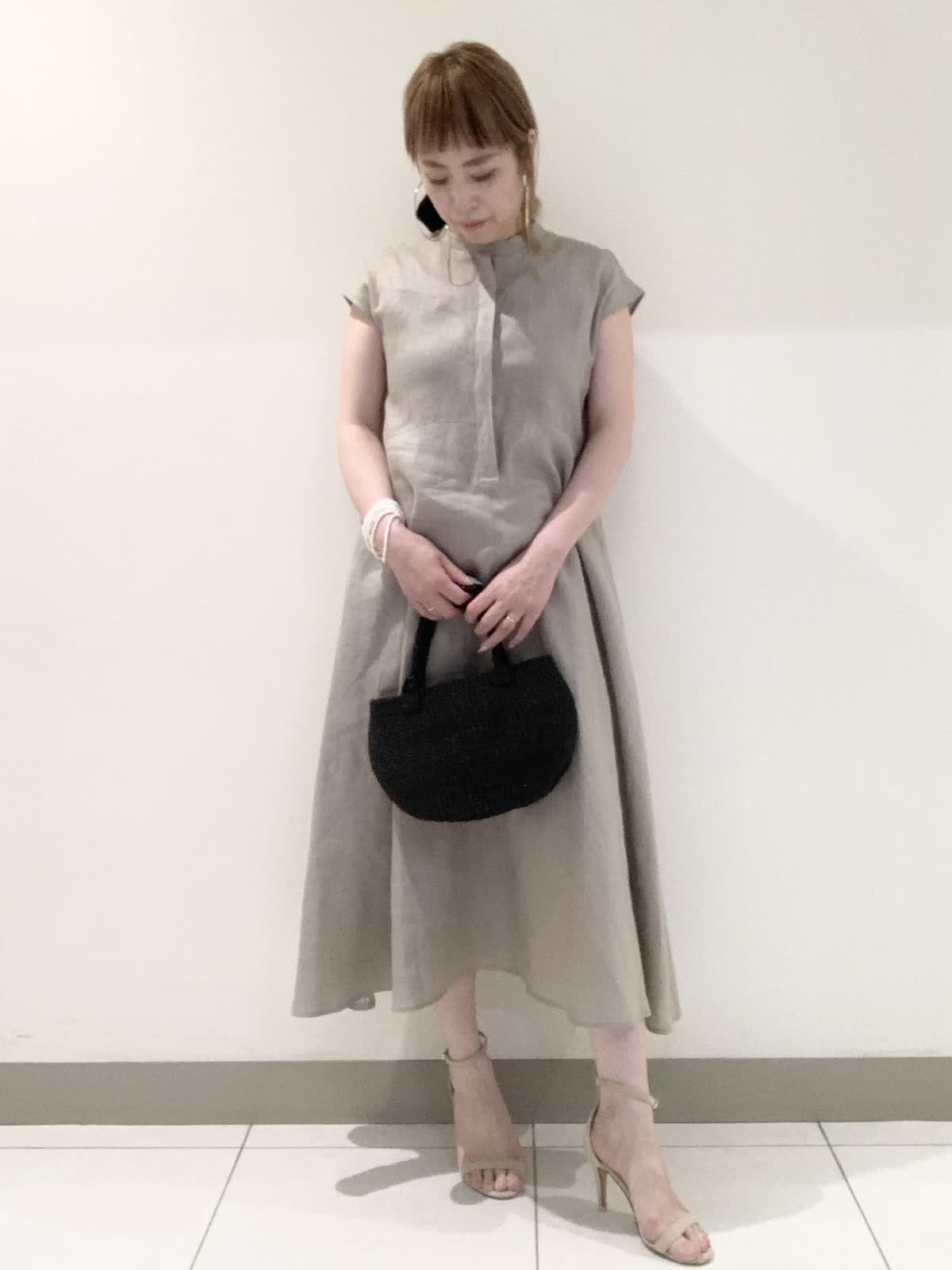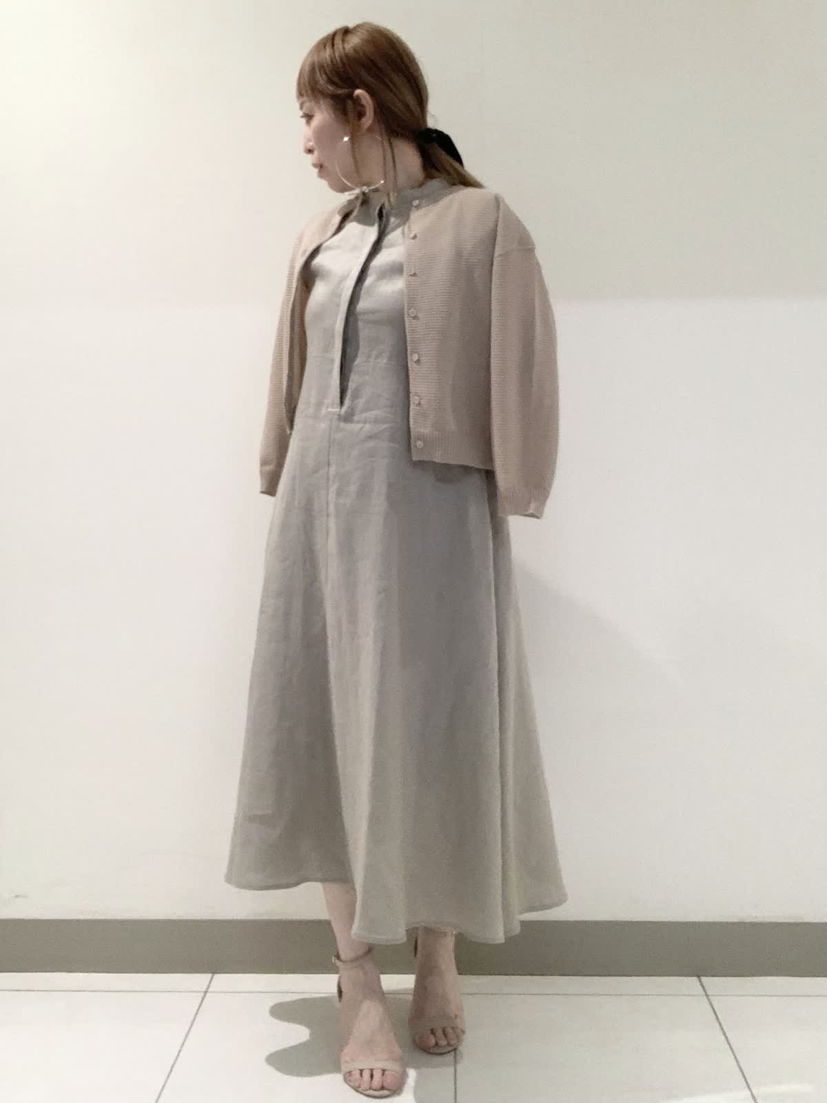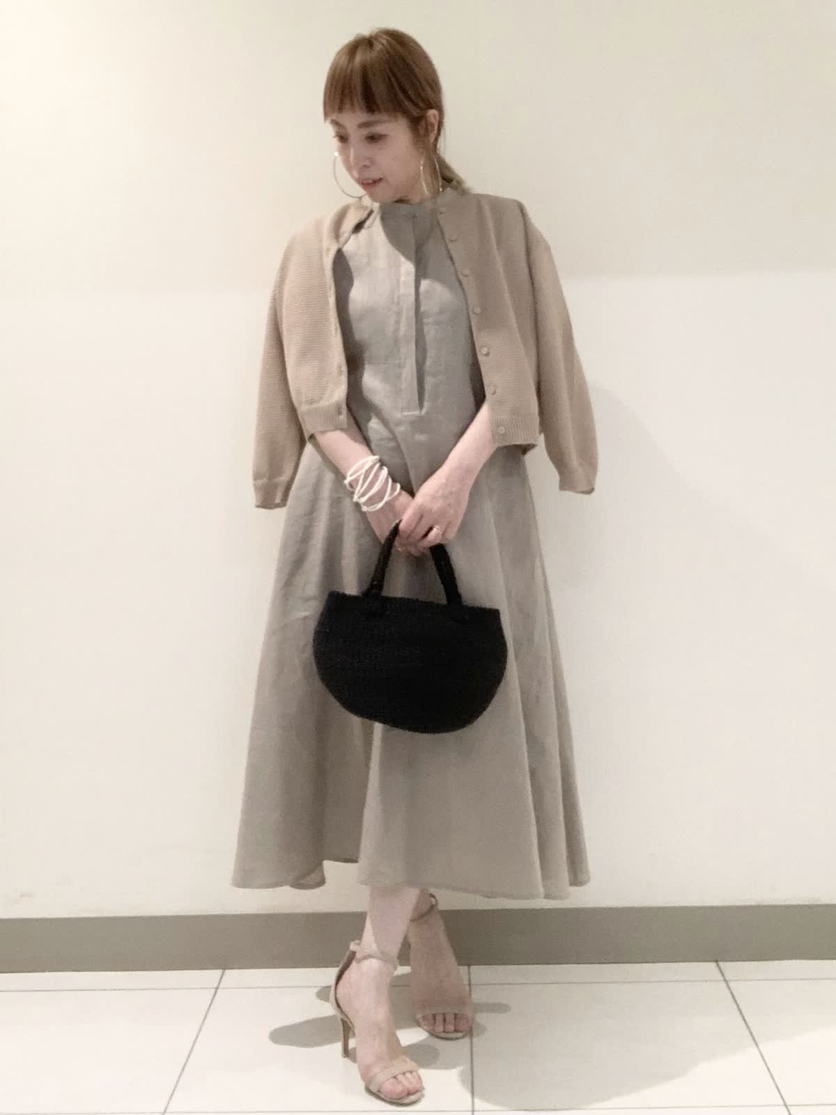 【着用サイズ】ワンピース:フリーサイズ カーディガン:フリーサイズ バック 揺れるヘムラインが女性らしいフレアシルエットのワンピース。すっきりとしながらも締め付けすぎない程よいサイズ感がポイントです! 透かし柄ミニケーブル編みで清涼感あるニットカーディガン。さらっとしたドライタッチの素材でこの時期着回しやすいアイテムです!羽織としては勿論、ボタンをとめてプルオーバーとして着るのもおすすめです◎ フィリピンが原産の天然素材アバカを使用したバッグ。比較的水にも強く、梅雨の時期にも扱いやすくお出かけにぴったりです!