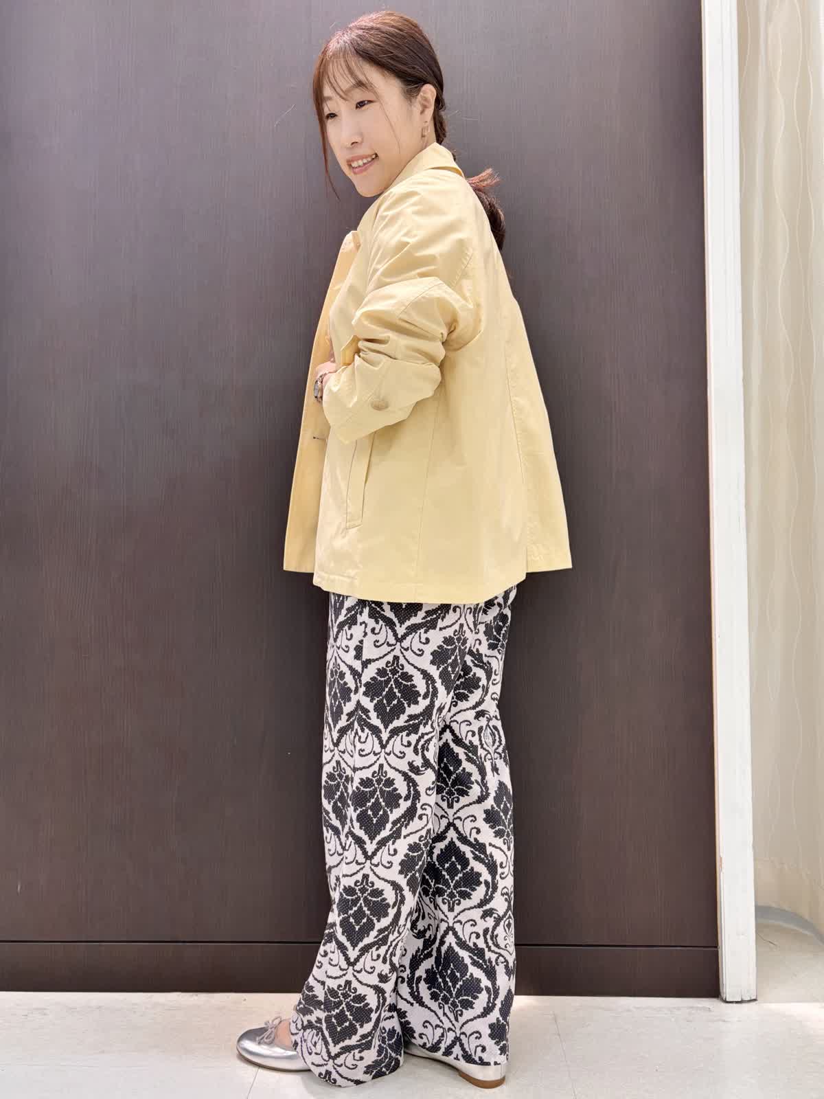 【着用カラー】コート:イエロー カットソー: オフホワイト パンツ:ベージュ