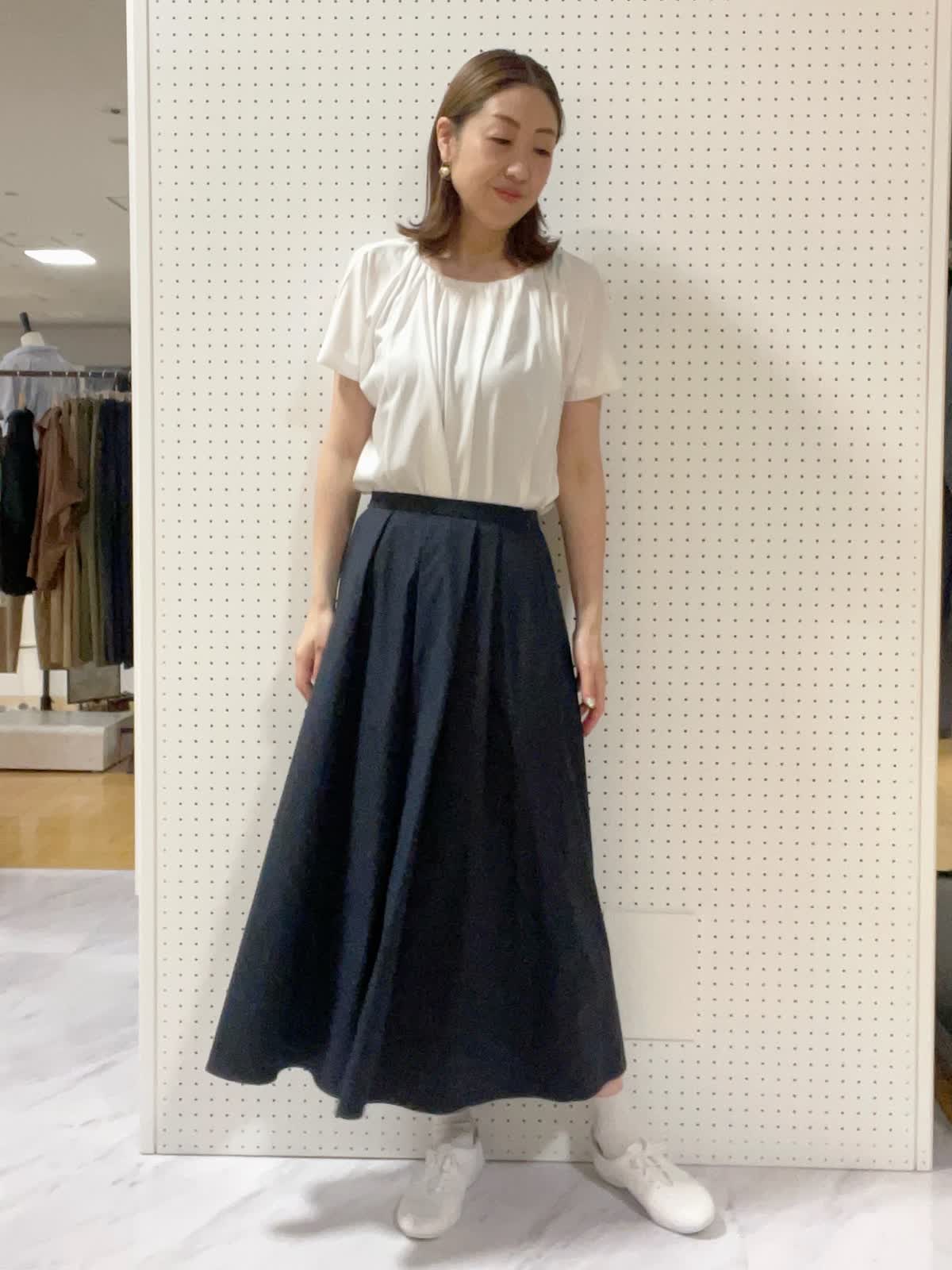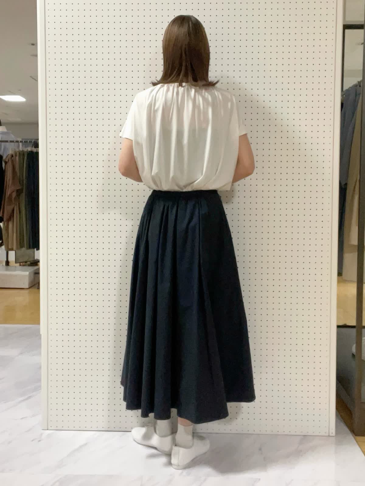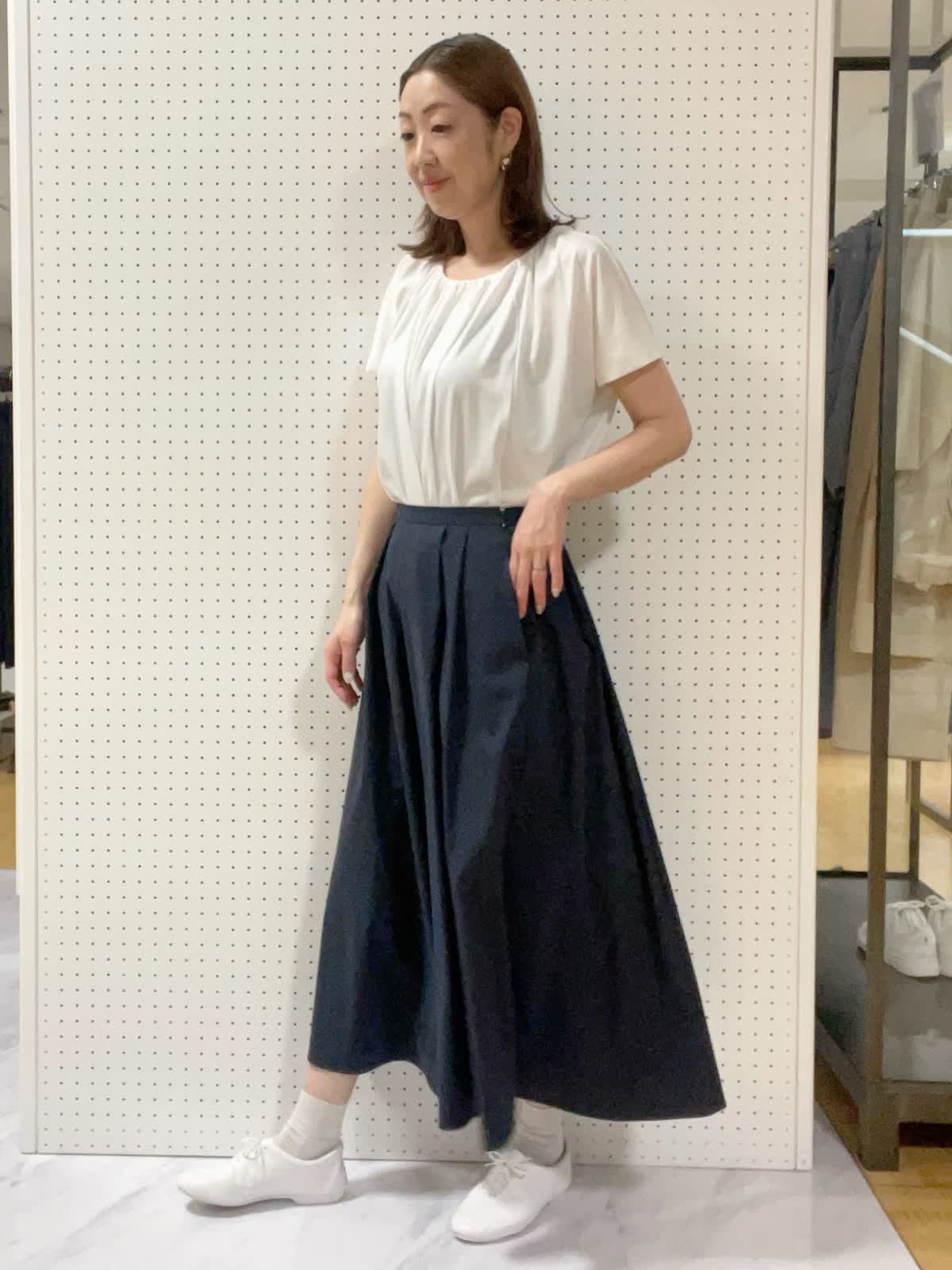 【着用サイズ】カットソー:フリー スカート:9号【着用カラー】カットソー:オフホワイト スカート:ネイビー初夏の休日お出かけスタイル オフホワイト×ネイビーで爽やかな印象に。たっぷりと胸元にギャザーが入り1枚でも様になるカットソーです。