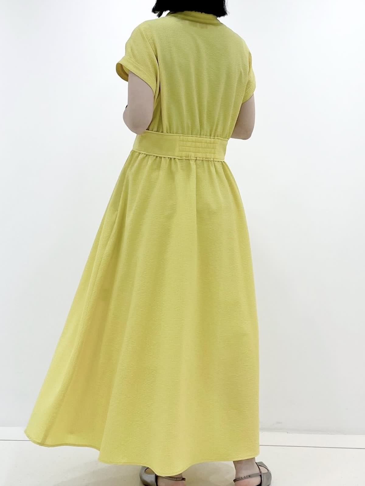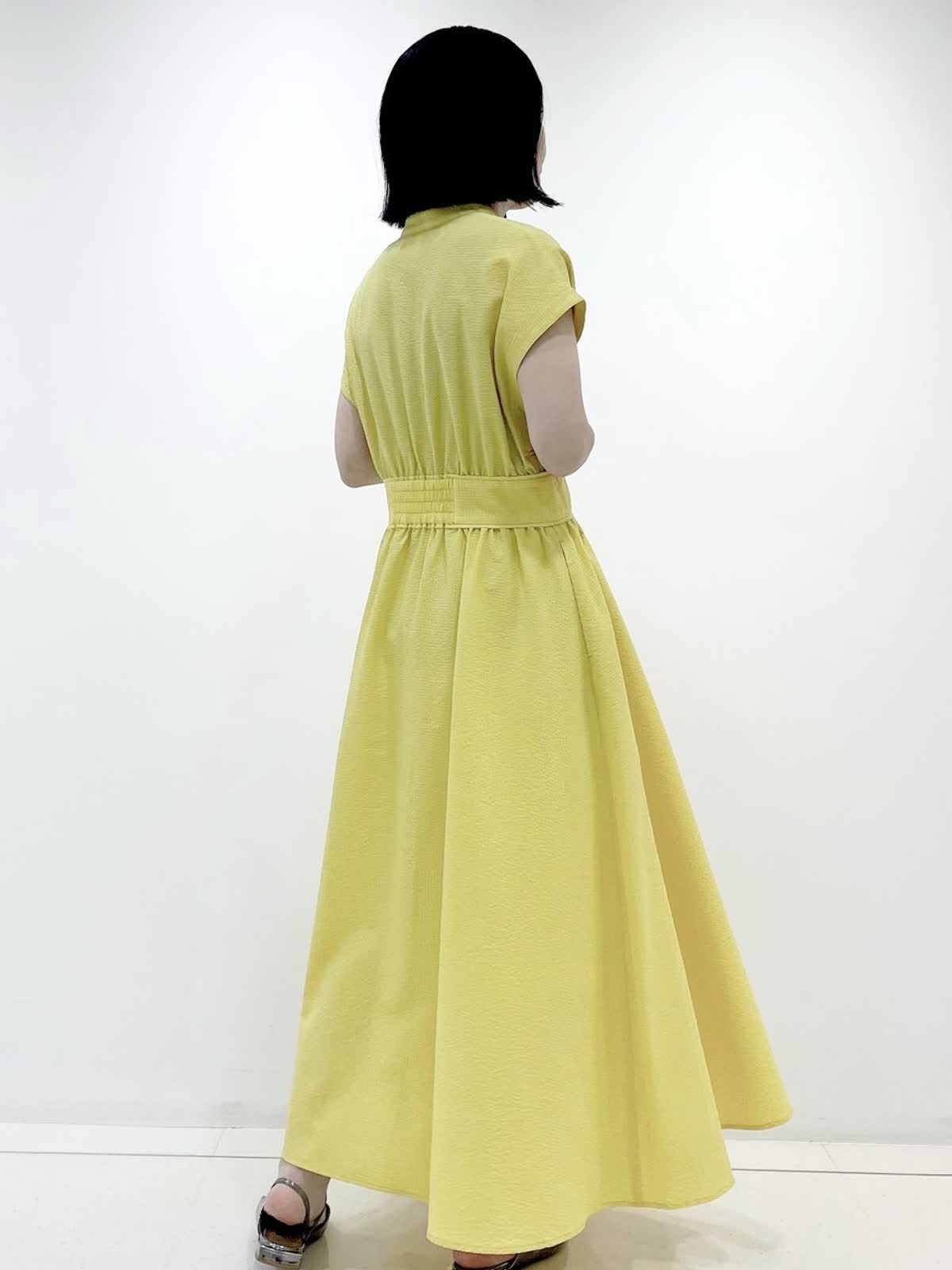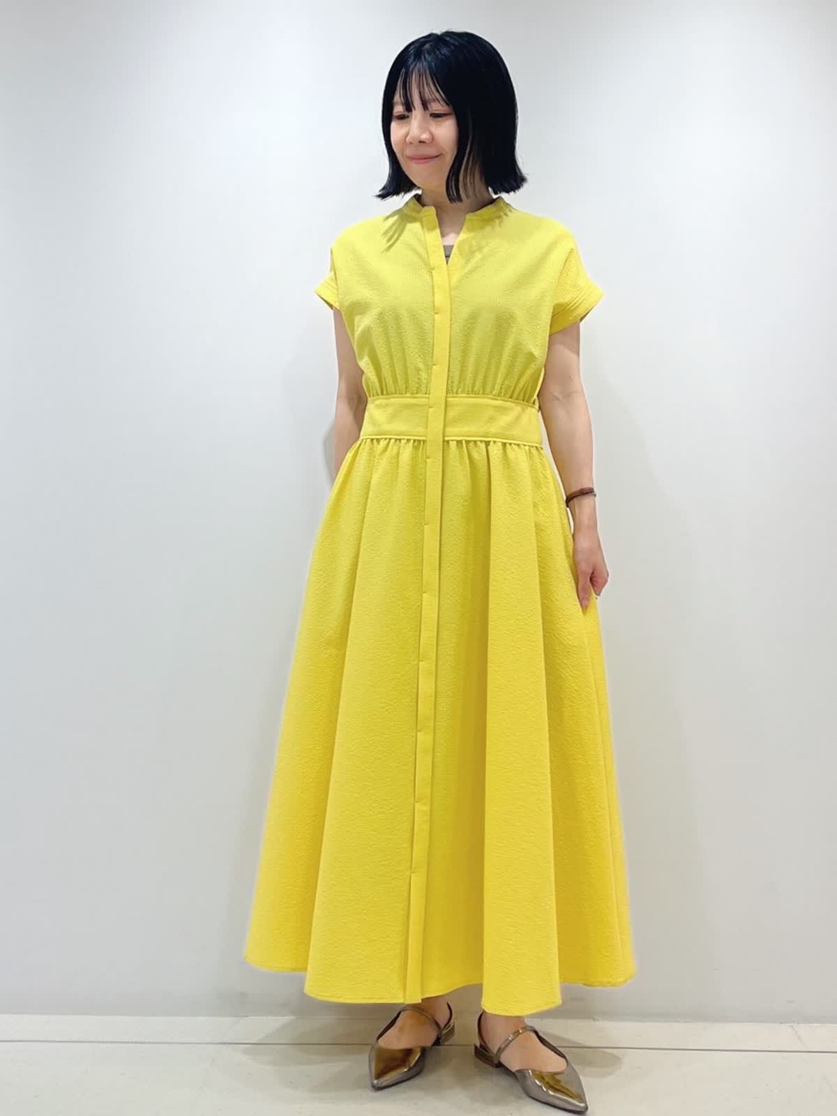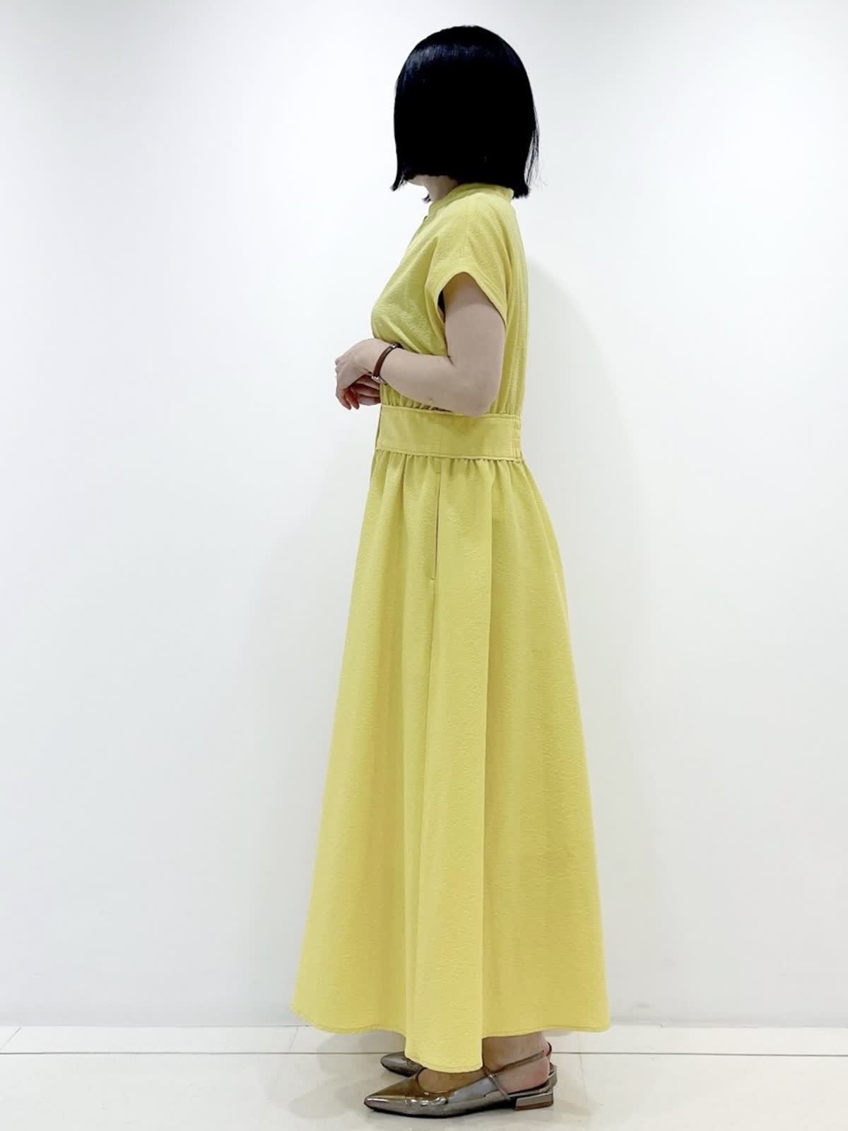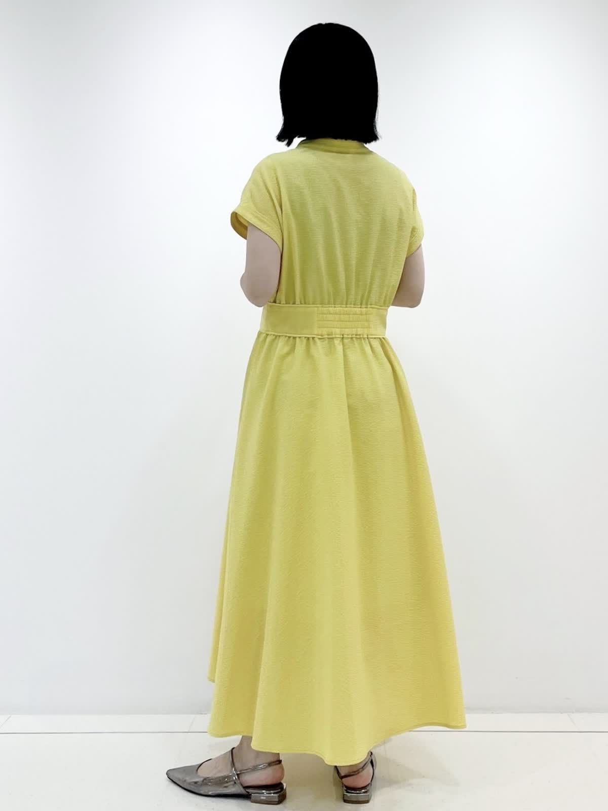 【着用サイズ】ワンピース:9号/ イエロー 華やかさとスタイルアップの両方を叶えてくれるワンピース。 凹凸感のある素材は肌離れも良く、これからの季節にピッタリの1枚です。