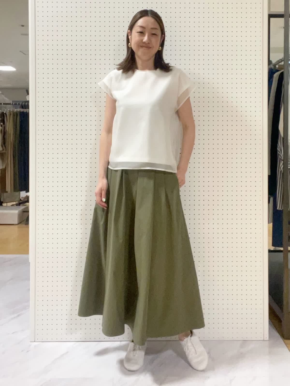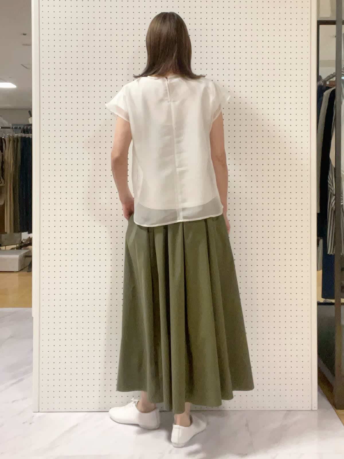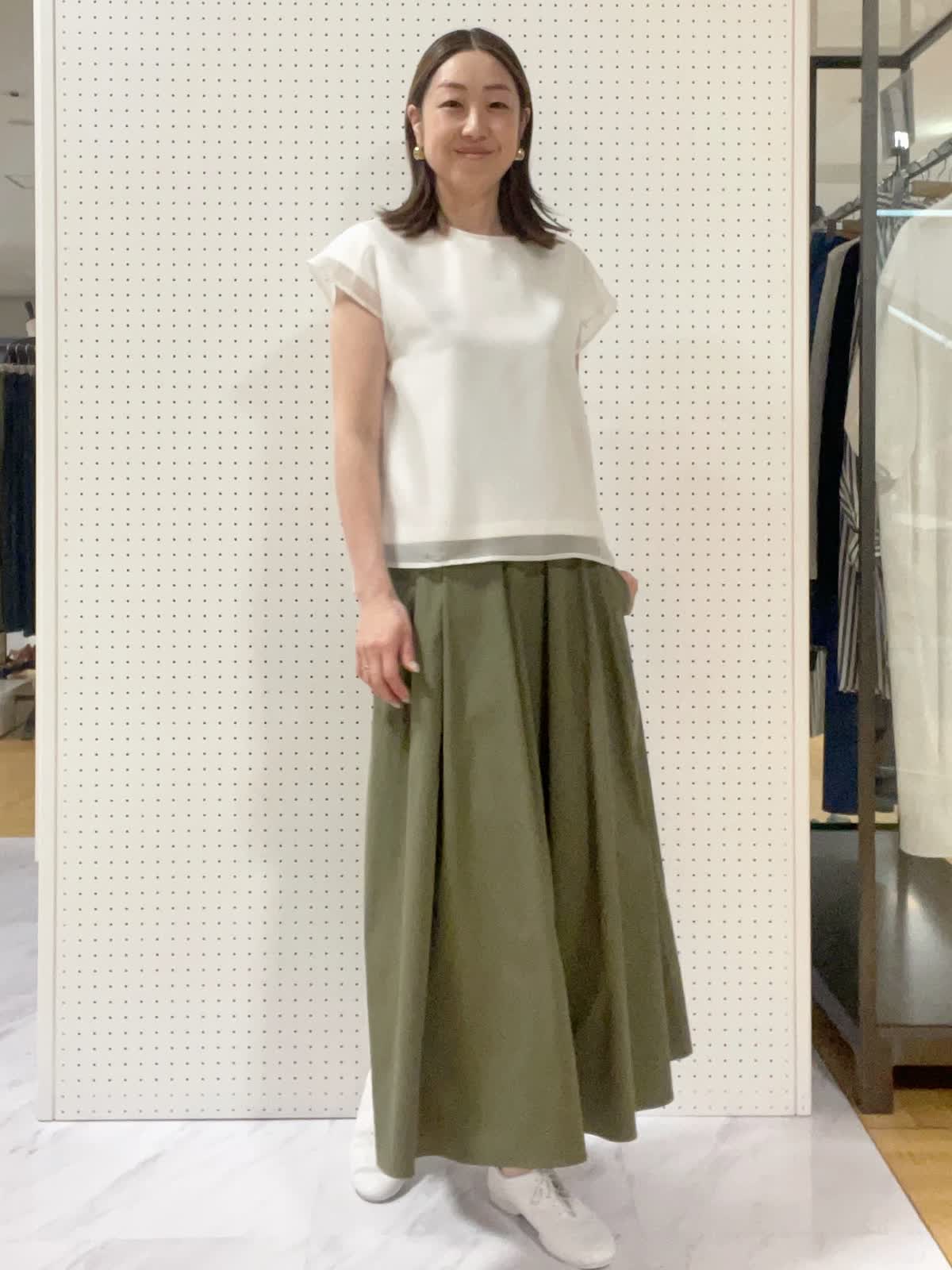 【着用サイズ】カットソー:フリー スカート:9号【着用カラー】カットソー:ホワイト スカート:カーキ 初夏の休日お出かけスタイル 。シフォンオーガンジーとのレイヤードカットソー。 1枚でも様になるアイテムでおすすめです!