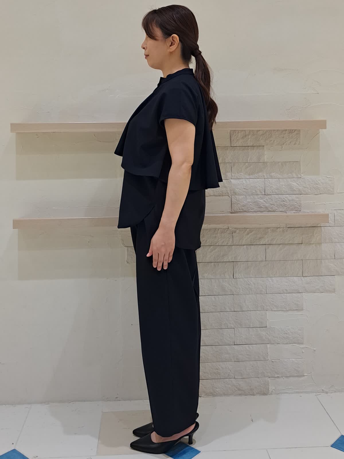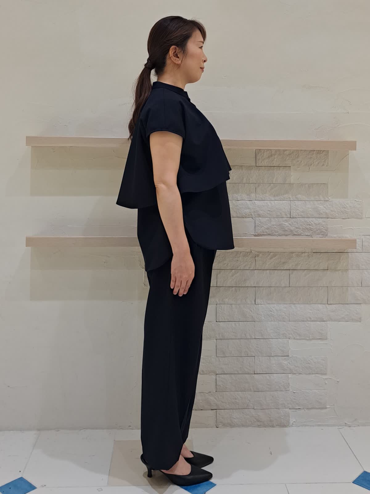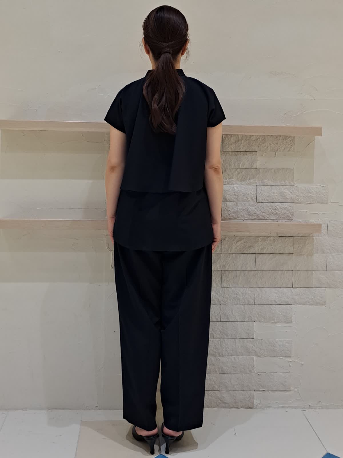 【着用サイズ】ブラウス:フリー パンツ:9号 【着用カラー】ブラウス:ネイビー パンツ:ネイビー STORYコラボのブラウス&パンツ。 単品でも着回しが出来る、フレンチスリーブのレイヤード風ブラウス。セットで着用すれば、きちんと感がありお仕事でも◎パンツは前タック入りで太ももラインが目立ちにくいデザインになっております。