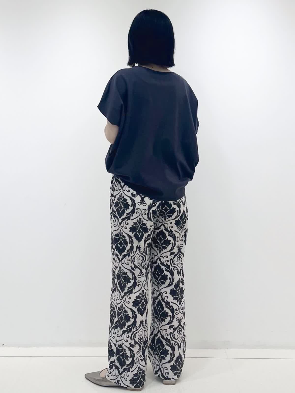 【着用サイズ】カットソー:フリー/ チャコールグレー パンツ:9号/ベージュ オリジナルのプリントがオシャレ感をアップしてくれるパンツ。程よいワイドシルエットで下半身をスッキリ見せてくれます。 軽やかでこれからの季節 大活躍のアイテムです!