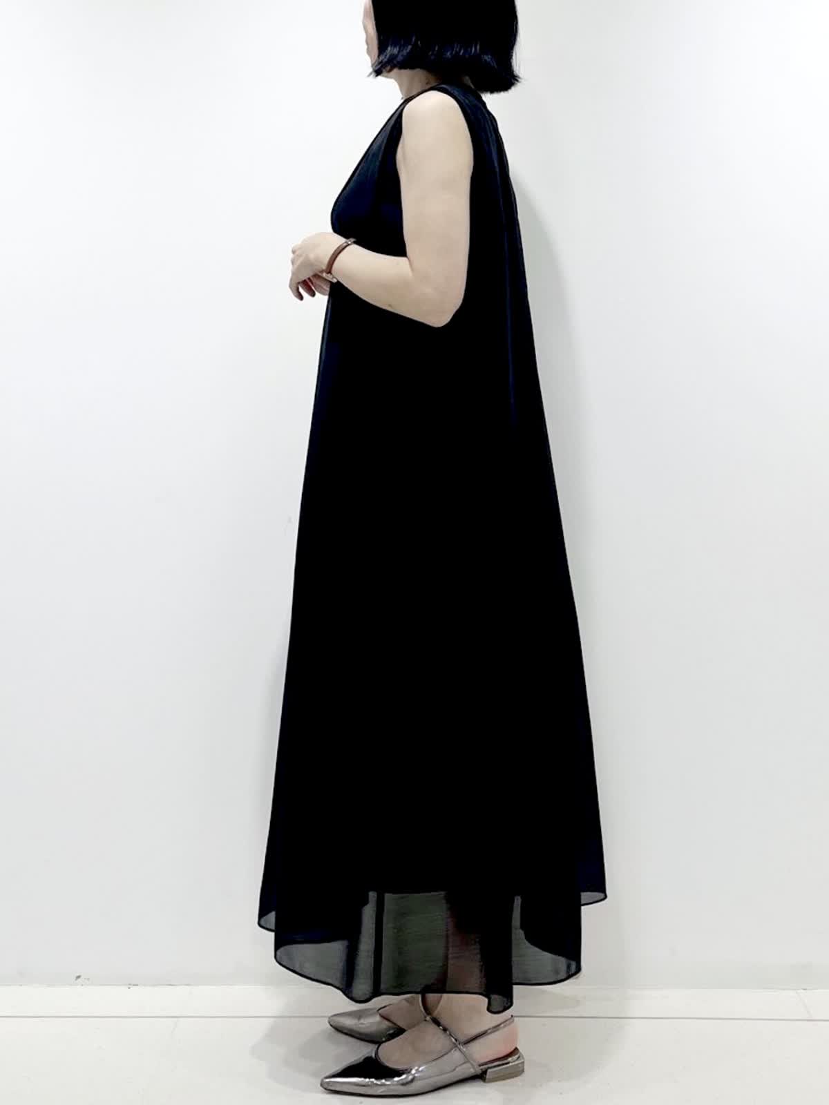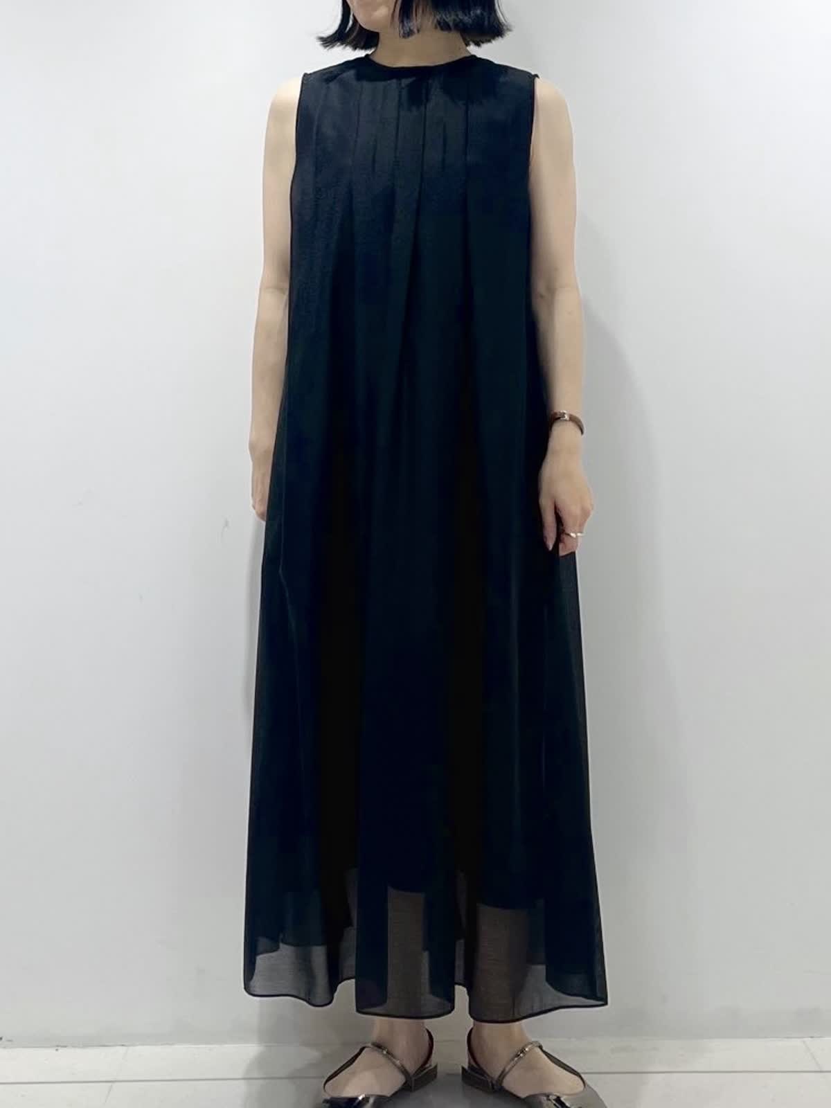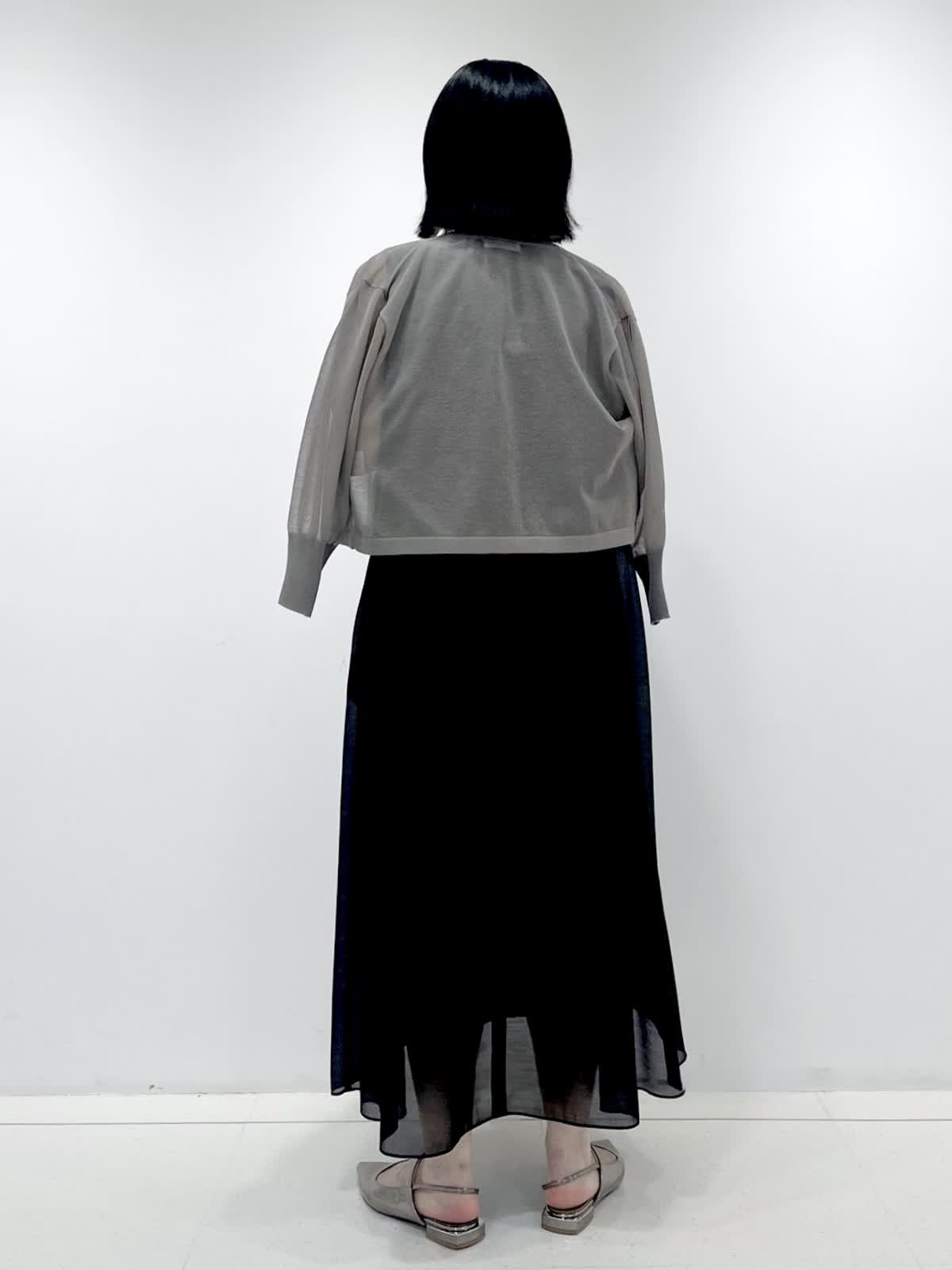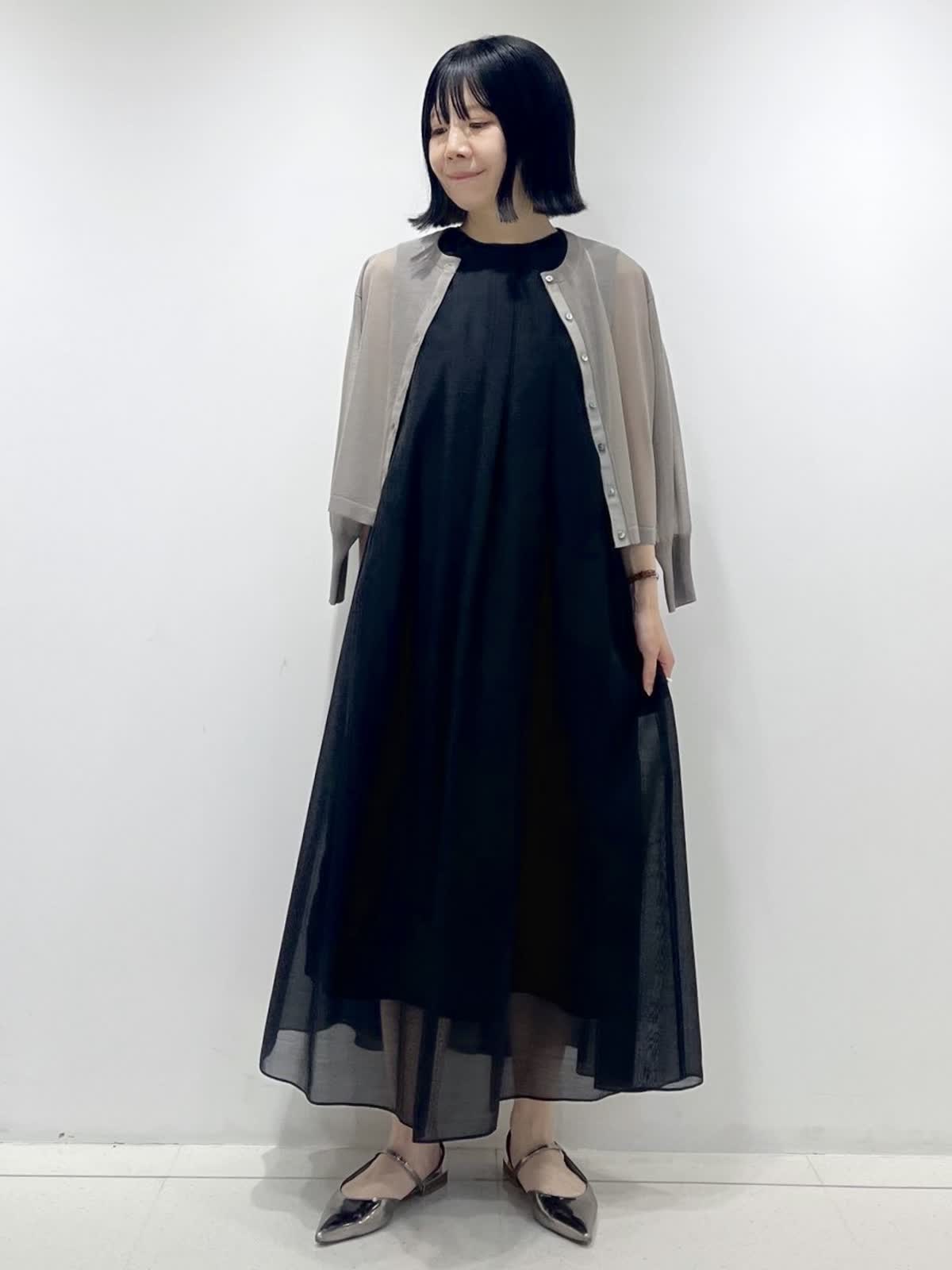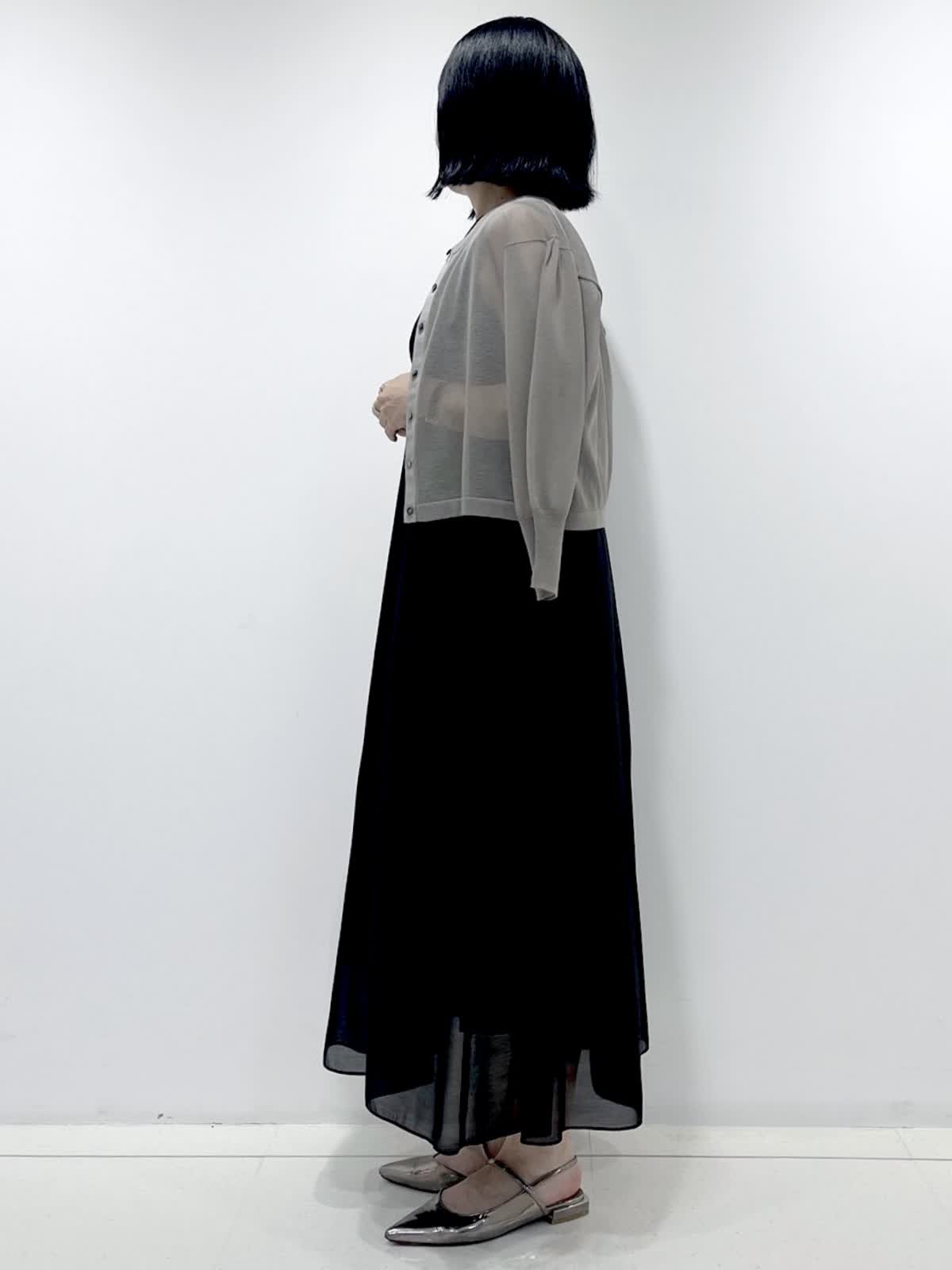 【着用サイズ】ワンピース:9号/ ブラック カーディガン:9号/ミディアムグレー 裾にかけて分量をたっぷりとったフレアシルエットのワンピースは、体型カバーもでき暑い夏でも涼しく着ていただける1枚です。 合わせたシアーカーディガンは、見た目にも着心地にも清涼感があり、真夏の冷房対策やUV対策にも大活躍です!