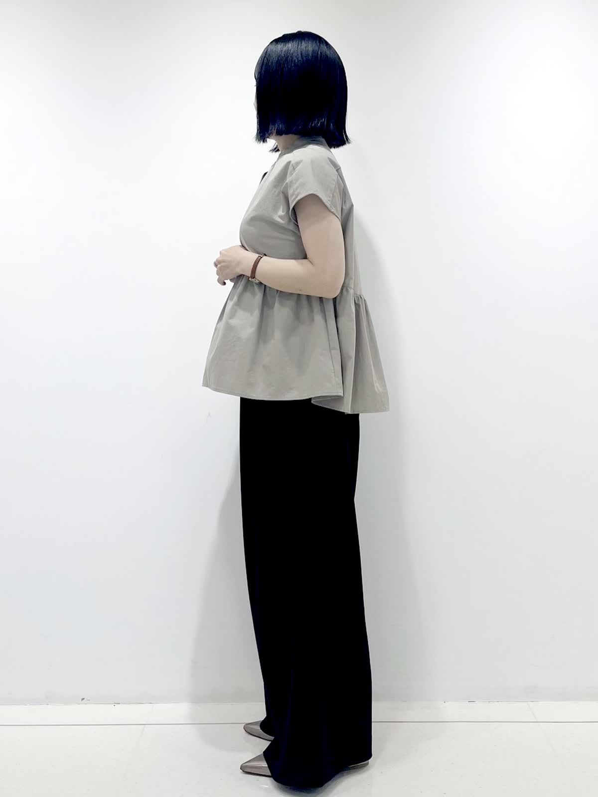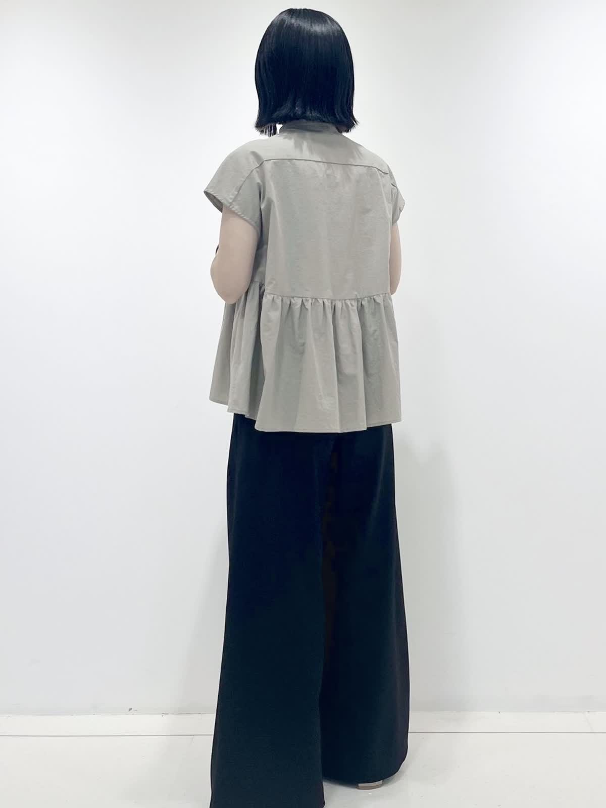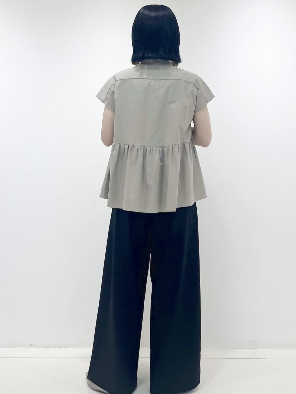 【着用サイズ】ブラウス:フリー/ ベージュ パンツ:7号/ブラック 立体感のあるゆったりとしたペプラムブラウスは、気になる腰まわりもカバー。切り替えにより脚長効果もあり、スッキリ着ていただけます。合わせるボトムを選ばず、スタイリングの幅が広がるアイテムです!