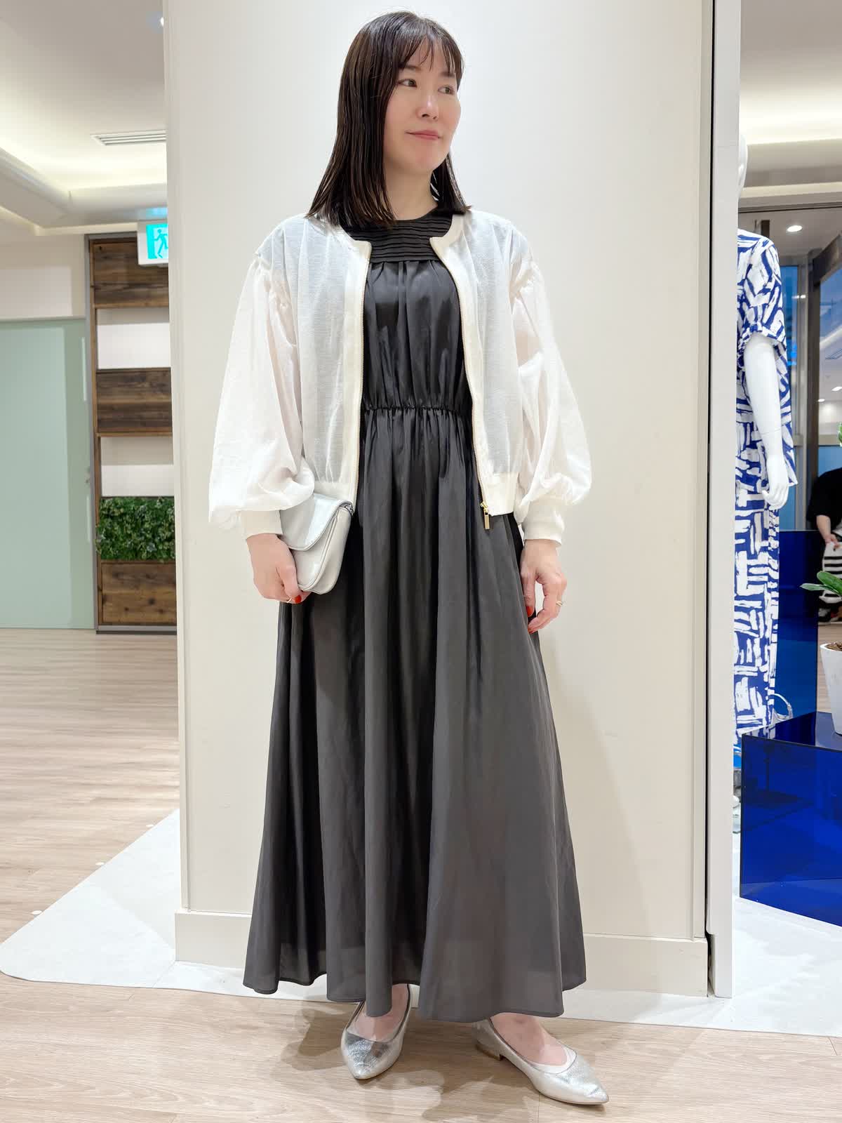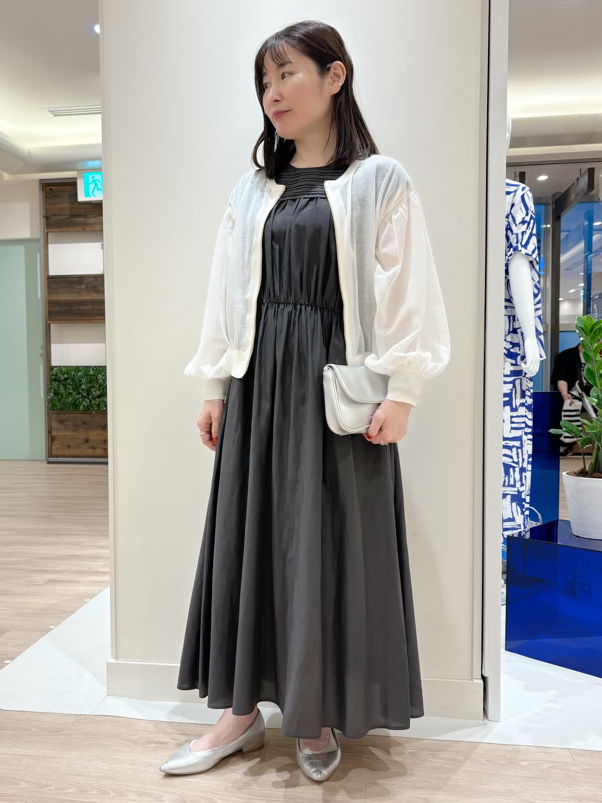 【着用サイズ】カーディガン:9号ワンピース:9号【着用カラー】カーディガン:オフホワイト ワンピース:モカチャ 夏のお散歩スタイリング キュプラ地のワンピースはサラサラとしており接触冷感になっているので涼しいです。 ウエストはゴムになっておりスッキリとしたシルエットでお使い頂けます。 シアーカーディガンもしわにならず夏のちょっとした羽織に最適です。