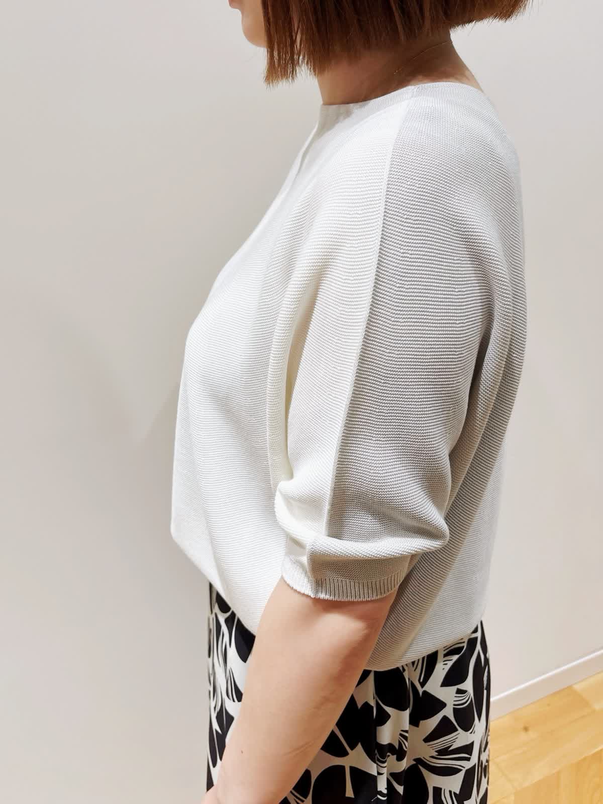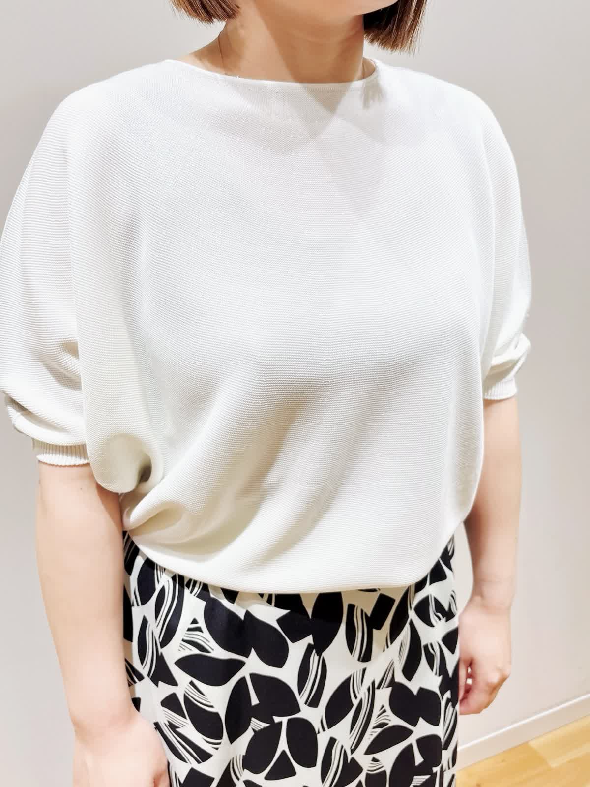 【着用サイズ】ニット:9号 スカート:9号 【着用カラー】ニット:オフホワイト スカート:オフホワイト INED大人気のCuooニットです。前後のカラーが2wayで着用できます。肘が隠れる袖なので安心感があります。吸水性に優れ、べたつき感もなく快適に過ごせます。スカートはすっきりとしたウエストラインにヒップ下から広がるフレアシルエットです。ウエストのゴムがサイドにあるのでインしても目立ちにくくなっております。