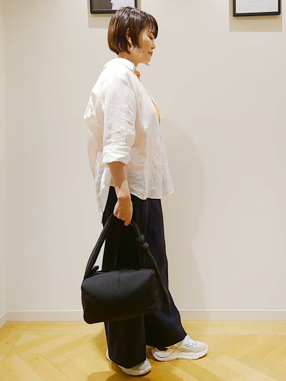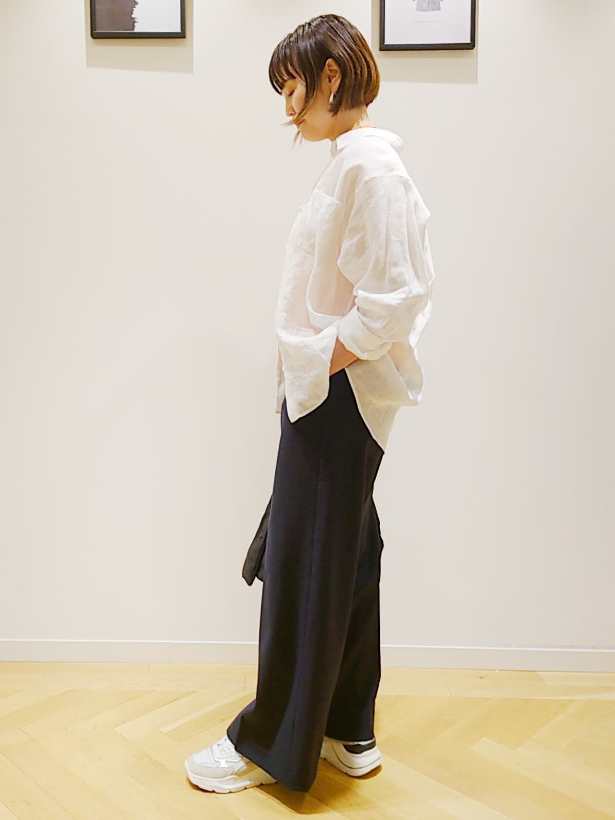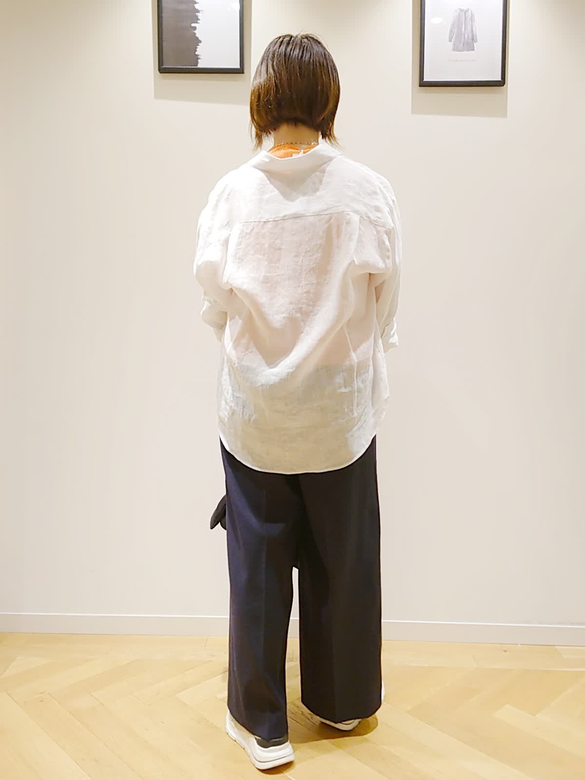 【着用サイズ】ブラウス:9号 ニット:9号 パンツ:9号【着用カラー】ブラウス:オフホワイトニット:オレンジパンツ:ネイビー ナチュラルで程よくシアー感のある大人っぽいリネンシャツは、一枚で着るにも羽織としても大活躍。お尻も隠れる丈感でパンツにもスカートにも合わせやすい使い勝手抜群のアイテムです。ニットはリブで柔らかく着心地がいいです。パンツは人気の美脚ワイドパンツで、ストレッチがきいており動きやすい快適な穿き心地です。