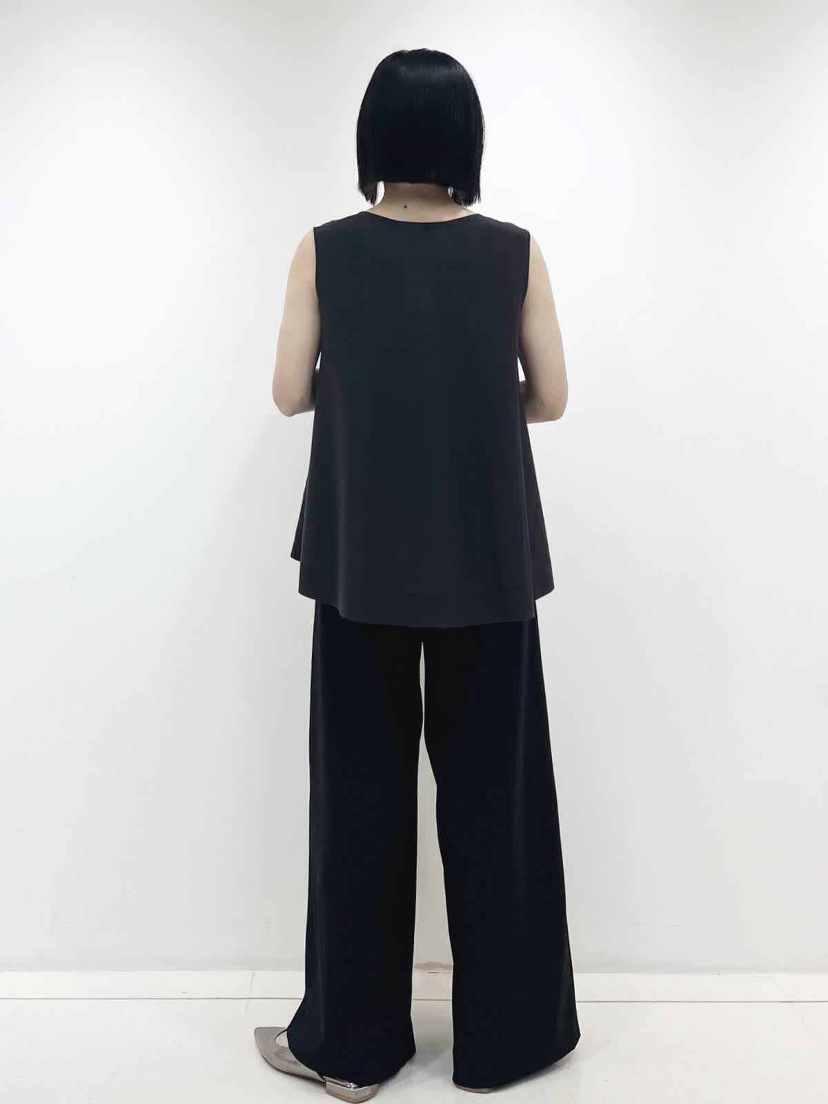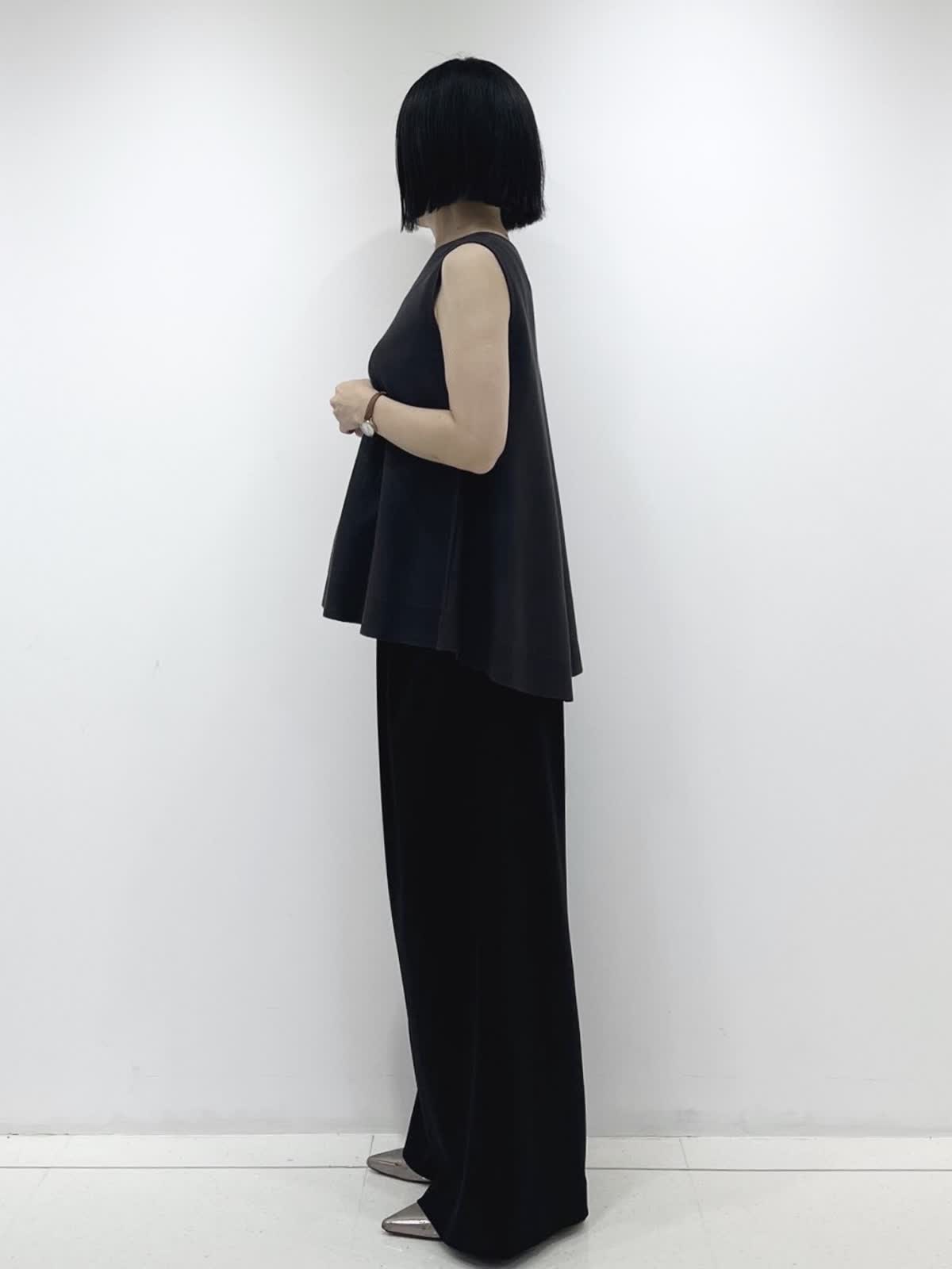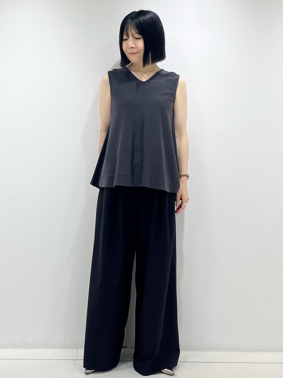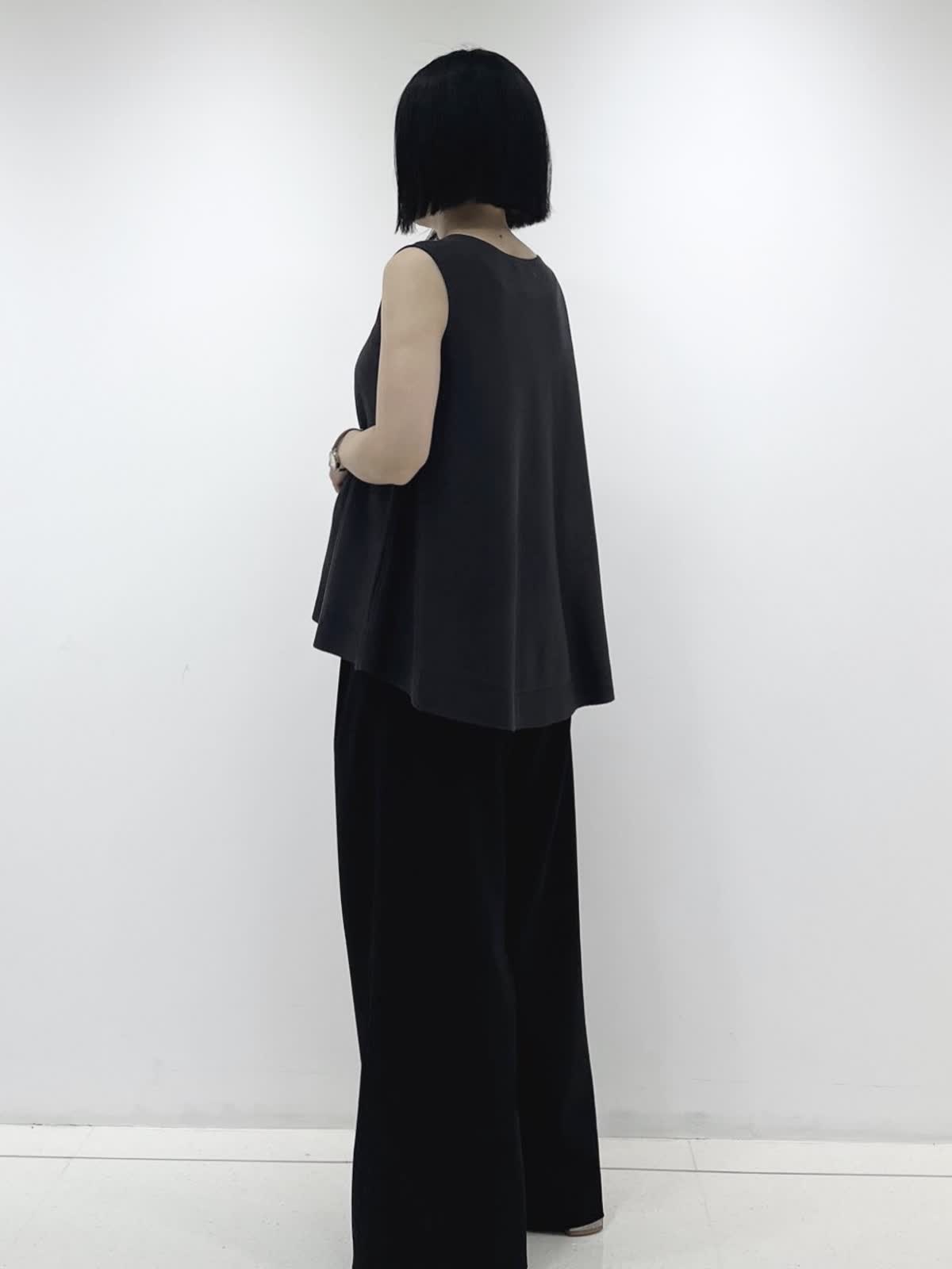 【着用サイズ】ニット:9号/チャコールグレー パンツ:7号/ブラック 程よい光沢感、たっぷり生地を使用したAラインシルエットがポイントのプルオーバーニット。柔らかく軽い着心地で1枚でもインナーとしても着回しのできるアイテムです!